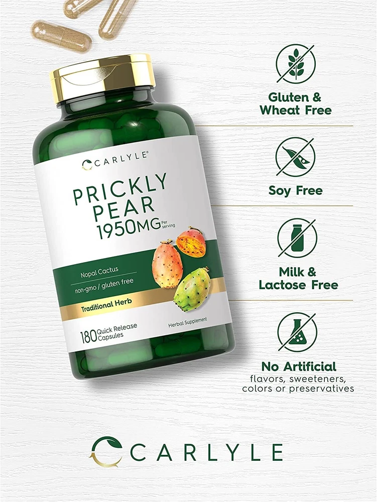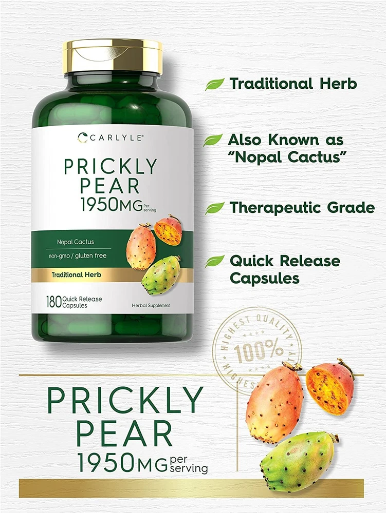 What is Prickly Pear? Commonly known as Nopal Cactus, Prickly Pear is a traditional herb originating in South America. This exotic plant produces blossoming pink flowers and a sweet tasting fruit that is often used to make syrup, juice, jelly, and jam. Prickly pear is also an excellent source of nutrients, offering a wide-variety of plant compounds and antioxidants. Carlyle Prickly Pear: Carlyle Prickly Pear is the finest source of this traditional herb nature can provide. Our gluten-free and non-GMO supplement delivers 1,950 mg of prickly pear per serving in convenient quick-release capsules, making it an easy add to any routine. We put our herbs to the test for purity and potency, always providing the highest quality ingredients you rely on to support your nutritional needs. Rooted in Wellness: Our expertise in sourcing the purest ingredients combined with advanced technologies makes us proud to deliver premium, honest supplements at the best value. Carlyle Prickly Pear is a testament to our commitment to excellence, made with superior ingredients rooted in wellness. Thanks for choosing us in your pursuit of living healthy.