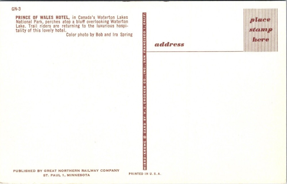 Prince Wales Hotel Canada Waterton Lakes National Park Riders Horses Postcard You will receive the exact postcard in the picture. We use a high quality scanner to capture pictures of the front and back for every postcard we have listed. Postcards will be in the condition as shown in the pictures. We ship Mon-Fri. We also offer combined shipping discounts or free shipping. If we have shipping on your listing you can buy as many additional postcards as you want and they will ship for free after the fist postage is paid. If you select first class shipping and pay the extra your postcard will be shipping as a package with extra protection. If you choose free shipping or $1.50 shipping your postcard will be shipped in a standard envelope with soft plastic sleeve and do not bend written on the envelope. Orders of 15 or more cards or with single cards over $20 in them will automatically be upgraded to first class and at least a photo mailer. If you have any questions feel free to ask. We are willing to consider reasonable offers and we offer discounts on orders of more than one card. Thank You _gsrx_vers_1436 (GS 9.0.5 (1436)) _gsrx_vers_1436 (GS 9.0.5 (1436)) _gsrx_vers_1653 (GS 9.7.5 (1653))