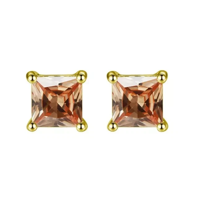 Princess Cut Simulated BrownDiamond Women's Christmas Stud 14KYellow Gold Plated