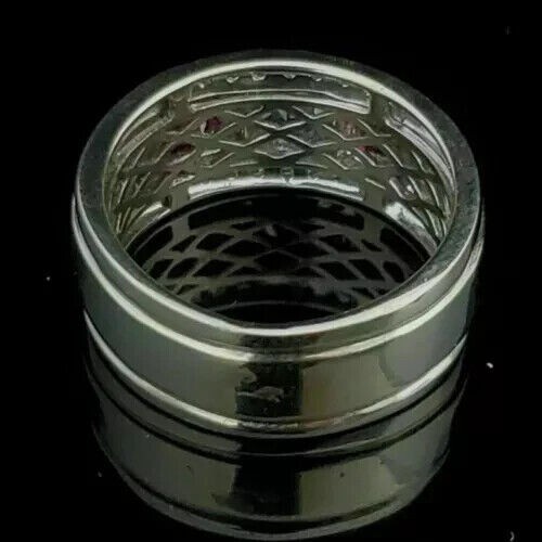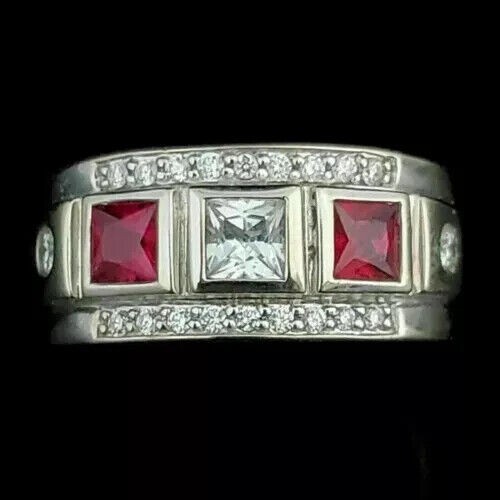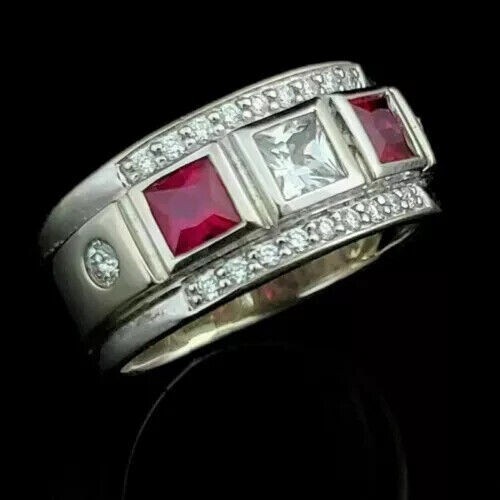 Princess Cut Simulated Red Ruby Men's Stunning Band Ring 14k White Gold Plated