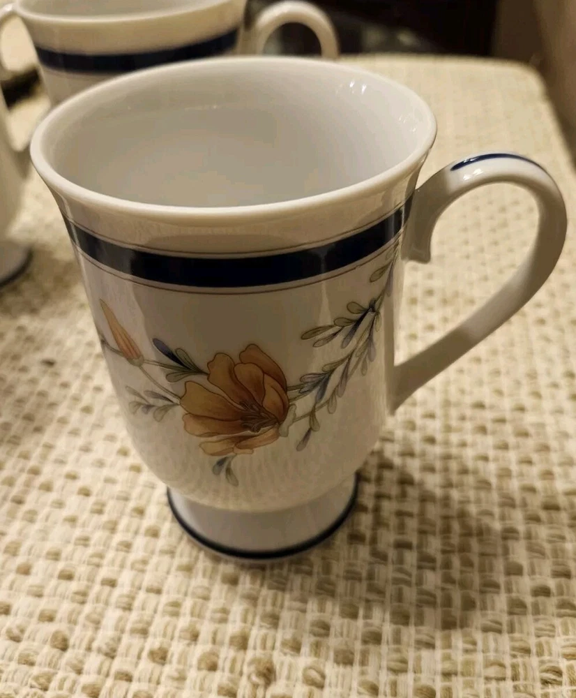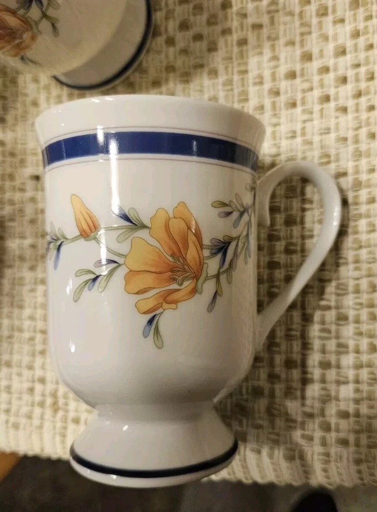 Add a touch of elegance to your mornings with this set of 4 Princess House porcelain mugs featuring the beautiful California Poppies pattern. Made in Japan, these mugs are of the highest quality and are sure to impress. Perfect for your daily coffee or tea, these coffee cups are a must-have for any collector of fine porcelain. The brand, Princess House, is known for their exquisite designs and attention to detail, making these mugs a true gem. Bring a piece of California into your home with these stunning mugs. Each cup measures approximately 4 1/2" tall x 3" wide. No cracks or chips. Follow me for more items for sale.