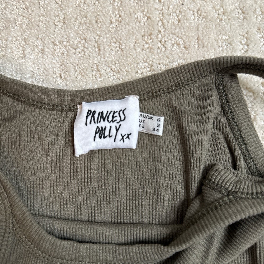 Princess Polly Ribbed Bodycon Tank Dress Minimalist and chic Princess Polly bodycon dress in a flattering ribbed fabric. Perfect for layering or wearing on its own. Size 2