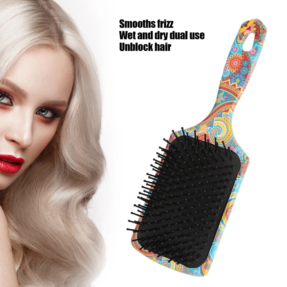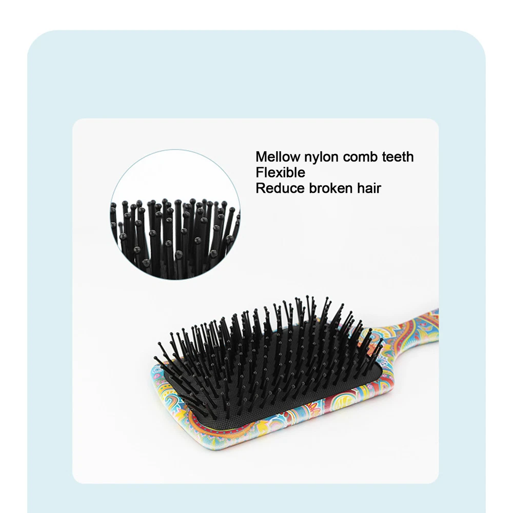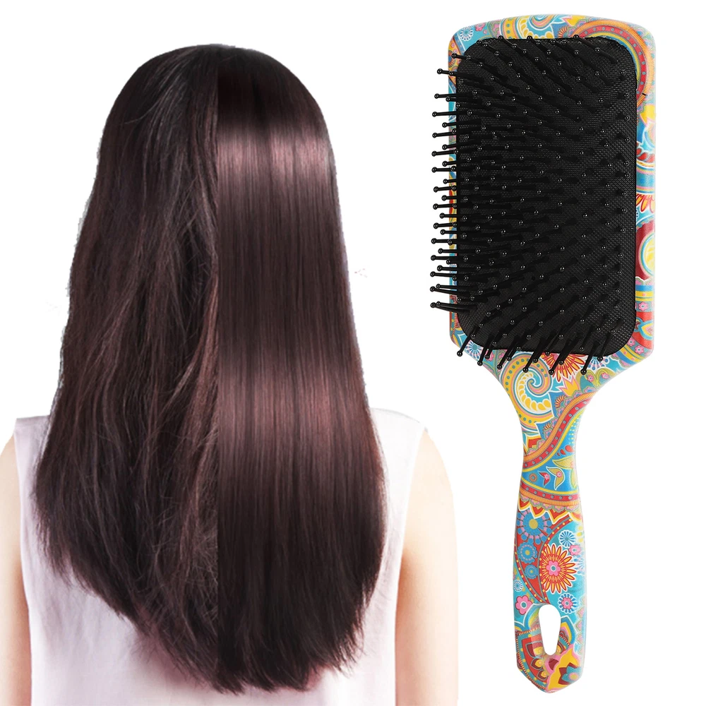 Feature: 1. Mellow nylon comb teeth, soft to touch, flexible and not easy to fall off, help detangle hair, practical. 2. Elastic gasbag design, can cushion the force acting on the scalp. Curved handle design, easy to hold and use. 3. Wide comb tooth spacing, reducing hair pulling, combing knots, smooth out frizz, make hair tidy and slick. 4. Hanging hole design, convenient storage, can be hung up when not in use, saving space, considerate design. 5. Colorful and unique pattern on the comb body, overall looks beautiful. It can be a meaningful gift for your friends. Specification: Condition: Brand New Item Type: Hair Brush Material: ABS, Nylon Product Size: Approx. 24.5 x 8.2cm / 9.6 x 3.2in Package List: 1 x Hair Brush Note: Please allow slight error due to manual measurement. Thanks for your understanding. 1. Our listing price includes the value of goods,packaging cost,and export taxes,not including international duties. 2. duties,taxes,and charges are not included in the item price or shipping fee. 3. T he duties are buyers' responsibility .Please check with your country's customs office determine what these additional costs will be prior to your purchase. 4. All disputes arising from the duties will be submitted to ebay for solution. 1. Any questions, pls. contact us via ebay message or email us. We will reply your message within 48 hours. If you do not receive our reply within 48 hours, pls. post a message again because sometimes our message system may block some emails. 2. If you are satisfied with our service, pls. kindly leave us a positive feedback and give us the Detailed Seller Rating with all " 5 " in very area 3. Our aim is to provide Level Customer Service, your recognition will encourage us greatly and serve you better. We strive to keep all our customers satisfy. We will do our up most to exceed your expectations in customer service, communication and dispatching of your orders. On Sep 4, 2024 at 10:31:57 PDT, seller added the following information: