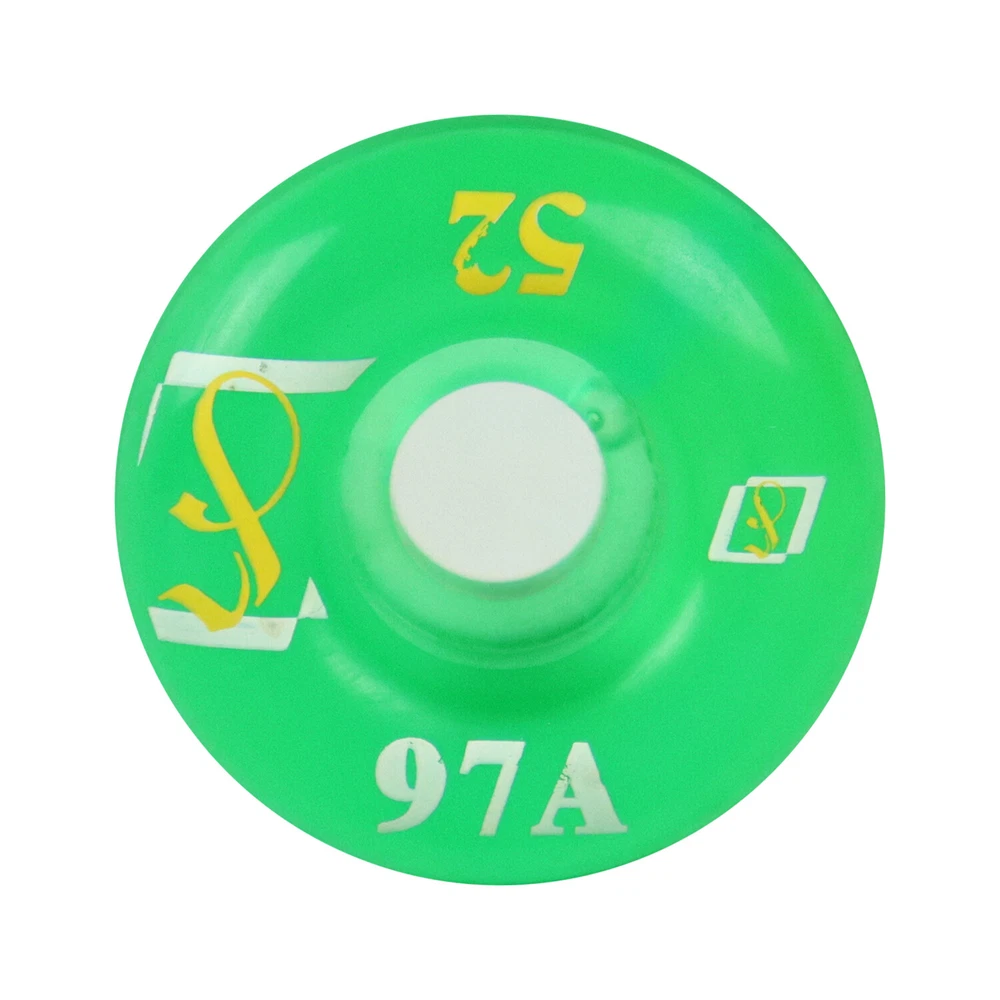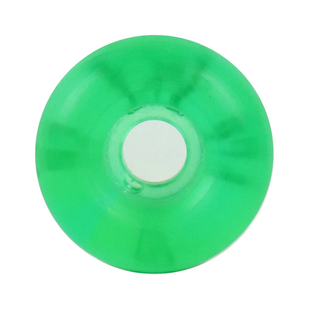 Product Description Printed Skateboard Wheels Soft Gel 97A Clear Green 52mm x 36mm + Abec 7 Bearings Get transparent urethane on a wheel slightly softer than standard. Includes a set of 4 wheels. 97A Duromter, measures 52mm x 36mm. The soft durometer and wide footprint makes these a great option for beginners, or those looking for a smooth ride which requires a little less effort. Also includes a set of Bullseye Abec 7 Bearings. BRAND TGM Skateboards MODEL Gel 97A Print SIZE 52mm x 36mm COLOR Green CONDITION Brand New The feeling of a new set of wheels is second to none. Well, maybe it’s second to saving a bunch of money. Get the best wheels at the best price from TGM Skateboards. We have hundreds of wheels available, no matter what you are looking for. Traditional skate wheels, cruiser wheels, longboard wheels…we’ve got them all at the absolute best prices available! Wheels are measured by Diameter (Width) and Durometer (Hardness). 50mm to 54mm with a hardness of 99A – 101A is the most common size wheel for street and park skaters, while 55mm to 64mm is typical for bowl and old school skaters. The larger the wheel, the longer the roll. The softer the wheel, the smoother the roll. Softer wheels are great for rough terrain and are also quieter (which is why filmers prefer large, soft wheels). Ultimately, it comes down to personal preference and the type of terrain the skateboard will be ridden on. 17 years being eBay's premier skateboard retailer with 350,000 positive feedback! With over 20,000 items in stock, we are experts on all aspects of skateboarding, longboarding, customer services, shipping speed and bang for your buck. Copyright ©2018 TGM Skateboards | All Rights Reserved