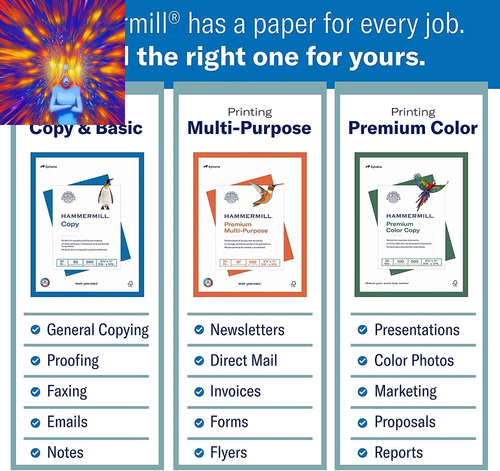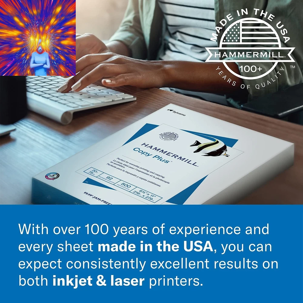 Store New Arrivals Add to Favorite View Feedback Contact Printer Paper, 20 Lb Copy Paper, 8.5 X 11 - 3 Ream (1,500 Sheets) - 92 Bright, Made in the USA, 500 Count (Pack of 3) Description Item model number 113620C Brightness Rating 92 Sheet Size 8.5 x 11 Number of Items 3 Color White Material Type paper Manufacturer Part Number 113620 Style Letter (8.5x11) Item Weight 15 Pounds Pattern Name Paper Paper Weight 20 Paper Finish Smooth Is Discontinued By Manufacturer No Product Dimensions 11.25 x 8.75 x 6.25 inches Size 500 Count (pack of 3) HAMMERMILL’S BEST SELLING PRINTER PAPER: You will receive one carton of copy paper, which includes 3 individual reams of paper inside. Each ream of paper has 500 sheets of 20 pounds, 92 bright, 8.5" x 11" white copy paper 99.99% JAM-FREE PRINTER PAPER: Everyone hates paper jams. You can trust Hammermill paper quality to keep your printer running smoothly. Scroll down to view the product description for details COLORLOK TECHNOLOGY INCLUDED: Colors on Hammermill copy paper are 30% brighter; Blacks are up to 60% bolder and inks dry 3 times faster for less smearing. Acid-free Hammermill paper ensures long-lasting archival quality MADE IN USA: Hammermill copying and printing papers are 100% made in the USA, helping to support 2.4 million sustainable forestry jobs in America, including family tree farmers. Hammermill is more than just paper MAKE SURE IT’S ORIGINAL HAMMERMILL QUALITY: Look for “Ships from and sold by” at the top of the page, under the product title OTHER PAPER OPTIONS: Scroll down to compare Hammermill print and copy paper for every purpose, including premium presentation-quality color copy paper, cover-weight paper stock, and glossy paper for photo printing The Hammermill Paper 99.99% Jam-Free: You will not experience more than one jam in 10,000 sheets using Hammermill copy paper on your high-speed digital printer or we will replace your Hammermill paper purchase. We test more than 13.5 million sheets of paper every year to make sure that each sheet is consistent. Then we test our papers on all kinds of printer and copier equipment to ensure that our paper will work well for you, every time, on every machine. Make sure it's original Hammermill quality: look for “Ships from and sold by” at the top of the page, under the product title. “It’s More Than Just Paper” to us and millions of sustainable forestry workers across America, including American family tree farmers. Hammermill papers are made with renewable resources from certified sustainably managed forests. We want our business to last for generations and that means taking good care of our environment. This Hammermill copy paper is an economical paper for multipurpose print and copy use. It is available in 8.5 x 11 letter size paper and 8.5 x 14 legal size paper. Hammermill Copy Paper is available in a single ream (500 sheets of paper) and in cases of paper-wrapped 3 reams (1,500 sheets), 5 reams (2,500 sheets), 6 packs of 400 sheets (2,400 sheets), 8 reams (4,000 sheets), 10 reams (5,000 sheets), in a bulk pack of 750 sheets, and a single pack of 400 sheets. Also available in full pallets and truckloads. Choose from items listed at top of page in Size and style name. ABOUT US We offer the best prices around on high quality products. Our E-store includes media such as books, movies, music and games while offering electronics, toys, sporting apparel, clothing, tools, general home, garden items and more. SHIPPING We are always working hard to ensure your package arrives as soon as possible. Please understand that some factors like weather, high postal traffic, and the performance of shipping companies are outside of our control. We offer free shipping to the lower 48 states and ship within 2 business days of payment, usually sooner. We do not accept P.O. Boxes. Please provide a physical address. For shipping outside of the continental USA, we only use eBay's Global Shipping Program.The item is shipped to KY and then sent to the rest of the world. International customers are responsible for all duties and taxes. Continue to check out in order to calculate costs for shipping the item to your country. Messages regarding eBay's Global Shipping Program MUST be directed at eBay EXCLUSIVELY. RETURNS We offer a 30-Day Return Policy on items which you are not completely satisfied with. You have the option for a full-refund or an exchange of the item. No returns are available on items shipped outside of the USA. PAYMENT We accept PayPal. CONTACT US This page content is yet to come Please ad us to your favorite seller and visit again later Thank You CUSTOMER SATISFACTION We try our very best to make sure every customer is completely satisfied. If there's a problem, message us! We're happy to help. WE ACCEPT Copyright © 2021 AutoDS. | All Rights Reserved