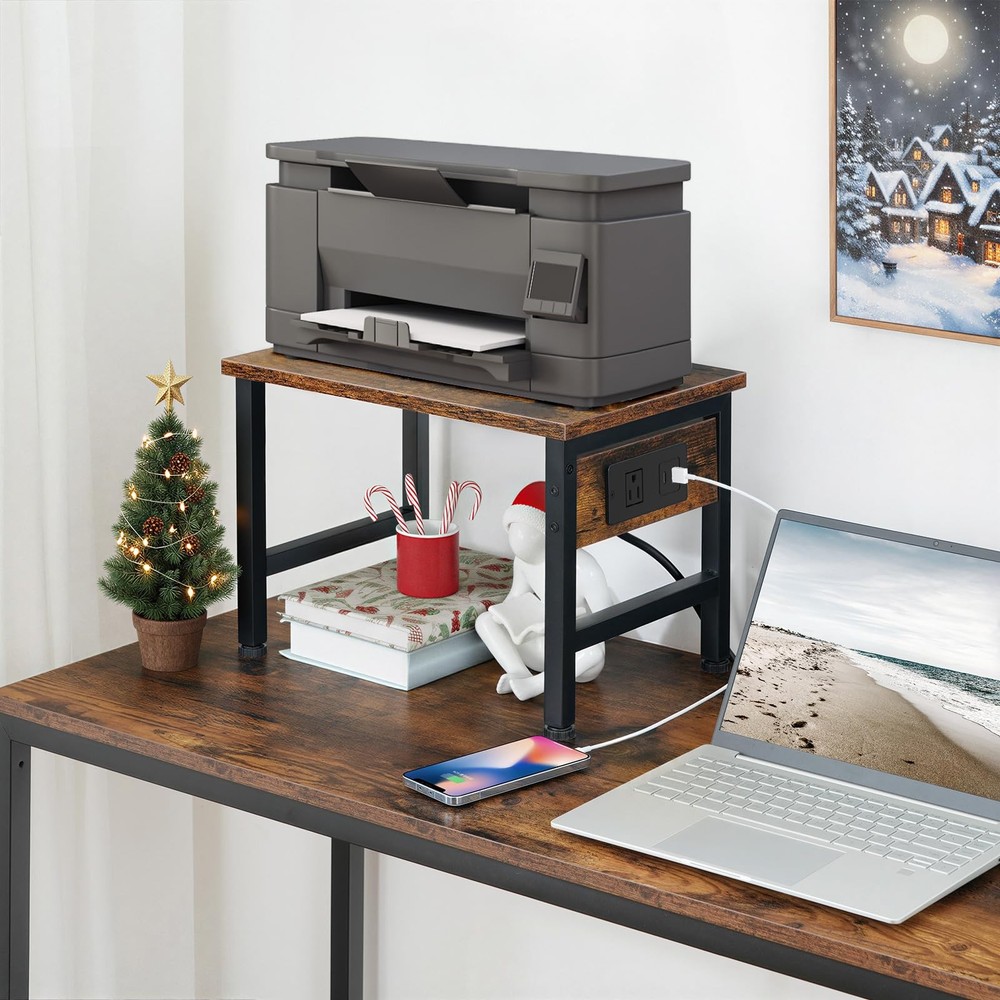 Printer Stand for Desk, Desktop Printer Stand with Charging Station, Small Printer Table with Storage Hook, Under Desk Printer Cart, File Rack for Home Office BF01UPS01 Charging as you wish: Desktop printer stand with charging station that including a standard outlet and two USB ports, you could charge multiple electronic devices A Good Desk Organizer Helper: The small printer stand for desk is designed for versatile applications,such as scaner,fax machine,printer stand, files, papers and other office supplies Sturdy and Durable Printer Table: This printer shelf made of metal frame and thick particleboard features structural stability and strong load ability of up to 44 lb, it can easily holds your printer Multi-purpose Desk Printer Shelf: The rustic industrial printer stand with storage measures 15.7"L x 11"W x 11.2"H, Putting under desk or in the corner for storage of cosmetics, kitchenware, toiletries, Decorate your office or home Easy Installation: The printer rack with simple structure, detailed instructions, clearly numbered parts and supplied tools you could setup in few minutes Nowhere to put a printer? Worried about the mess on your desk? This desktop printer stand provides a perfect solution to store your printer, file folder and office essentials, helping you to get rid of the clutter, so your small home office space is fully utilized and looks clean, tidy and organized! Shipping We offer FREE shipping on all orders! We ship within Three business days of payment, usually sooner. We use a selection of shipping services such as UPS, FedEx, USPS etc. We only ship to the lower 48 states, no APO/FPO addresses or PO Boxes allowed. Local pickups and combined shipping options are not provided at this time. Return You can return a product for up to 30 days from the date you purchased it. Any product you return must be in the same condition you received it and in the original packaging. Please keep the receipt. Payment We accept payment by any of the following methods: PayPal Please pay as soon as possible after winning an auction, as that will allow us to post your item to you sooner! Feedback Customer satisfaction is very important to us. If you have any problem with your order, please contact us and we will do our best to make you satisfied. Contact Us If you have any queries, please contact us via ebay. We usually respond within 24 hours on weekdays. Please visit our eBay store to check out other items for sale! Thank you for shopping at our store.