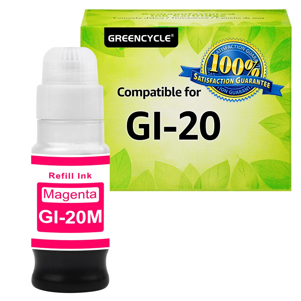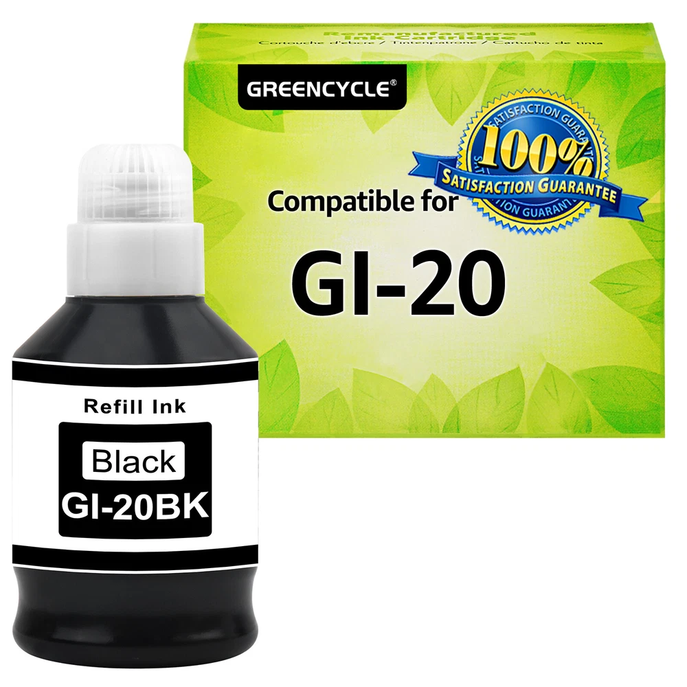 ✅Compatible for Canon G6020 Printer, G7020 Printer, G5020 MegaTank All-in-one Printers; Replacement for Canon G6020 ink; Replacement for Canon G7020 ink; Replacement for Canon G5020 ink. ✅Page Yield: 8,300 pages per compatible GI 20 ink bottle black, 7,700 pages per compatible GI 20 color ink bottle. (at 5% coverage on A4 paper) ✅Feature: Easy to take and refill, work the same way as OEM product. Vivid colors, fade resistant, quick dry, no plug, consistent printing. Suitable for many kinds of paper, such as high glossy inkjet photo sticker paper. Double protection: the transparent top cover make the ink no leak, the bottle mouth is sealed with aluminum film to ensure that the ink will not leak during transportation.