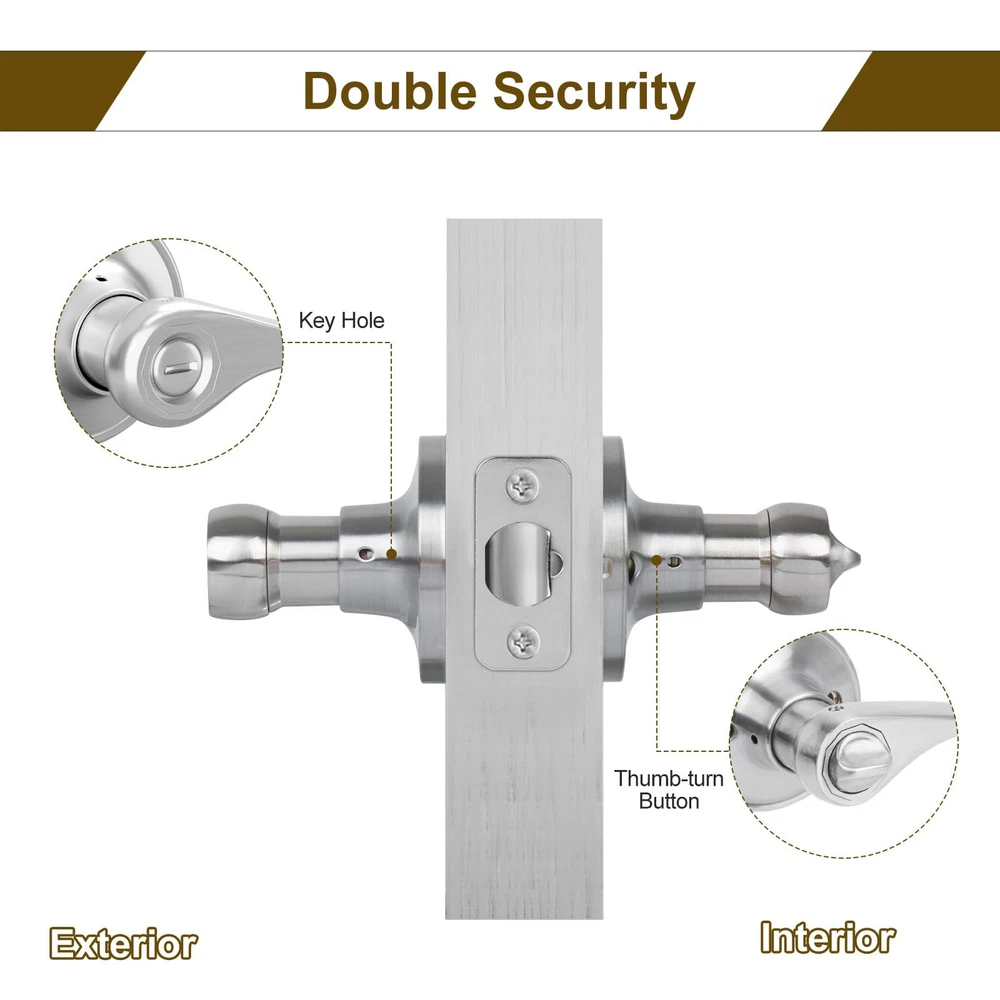 【Privacy Protection】 The door handle with lock can be used in the bedroom, bathroom, office, or any other private place by locking the inside without a key to secure your privacy. 【Door Compability】 Perfect for left or right doors with adjustable latches fitting 2-3/8" (60mm) or 1-3/4" (40mm) backsets, catering to your varied needs. 【Premium Material】 Constructed from heavy-duty zinc alloy and with the certification of ANSI Grade 3, the bedroom door handle ensures durability and rust resistance that will last years. 【Modern Design】 The satin nickel door handle knob features a trendy slim square look with wave-style handles and a stain nickel finish, providing a simple yet stylish touch to your private space 【Easy to Install】 Assembly is a breeze with only a screwdriver needed. Simple privacy door handle for easy installation.