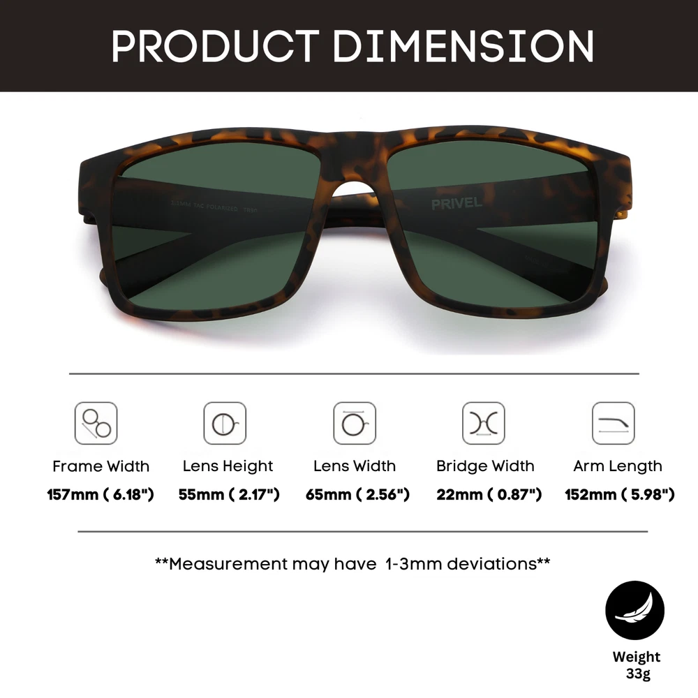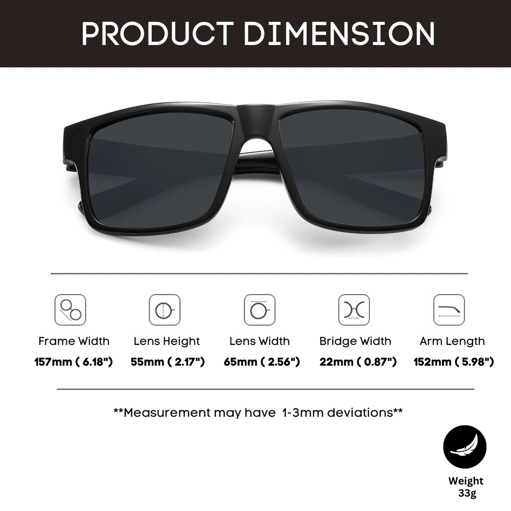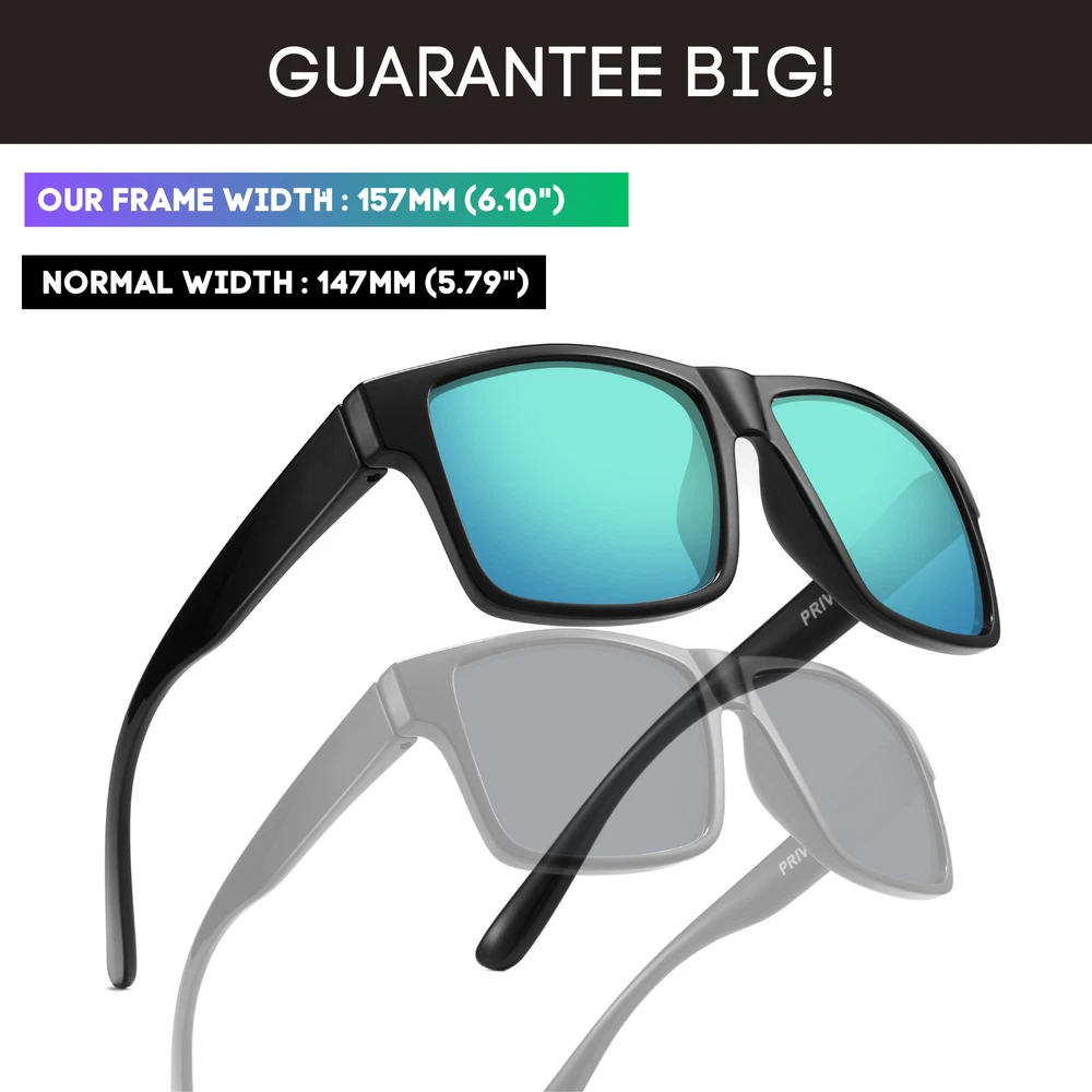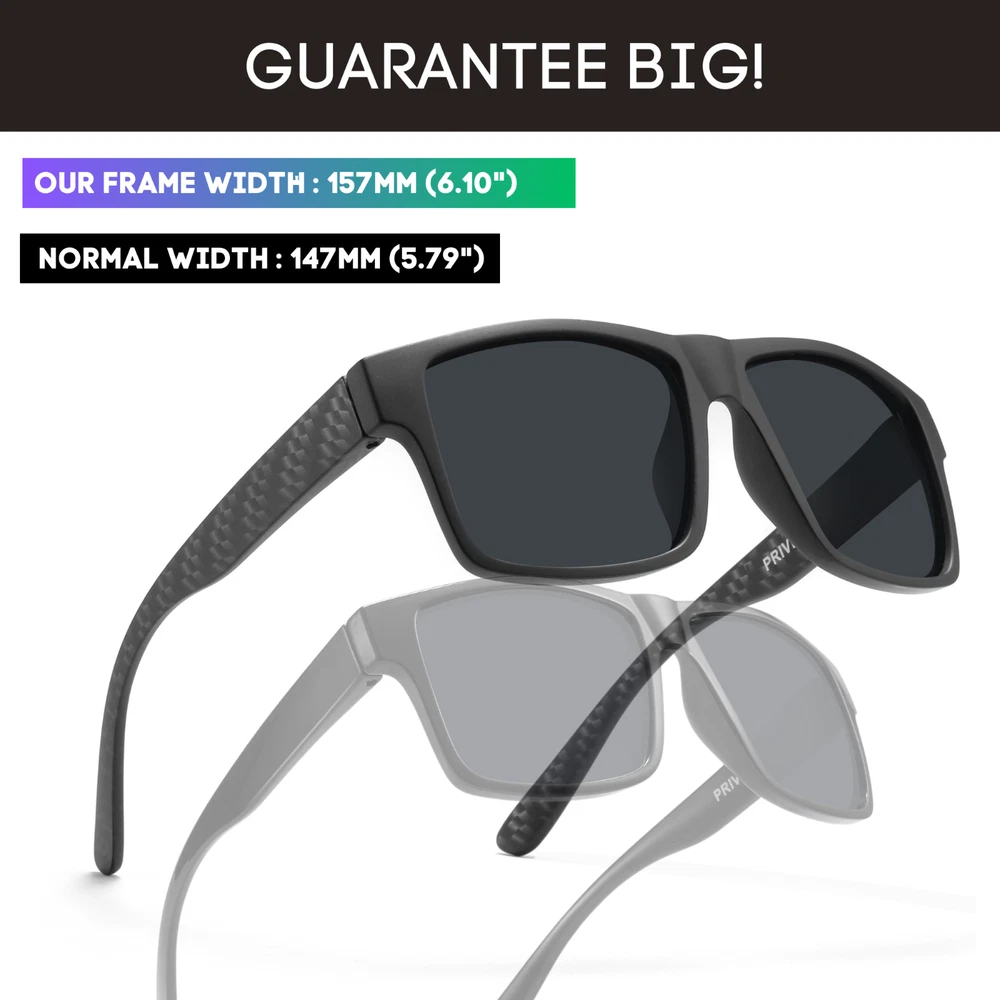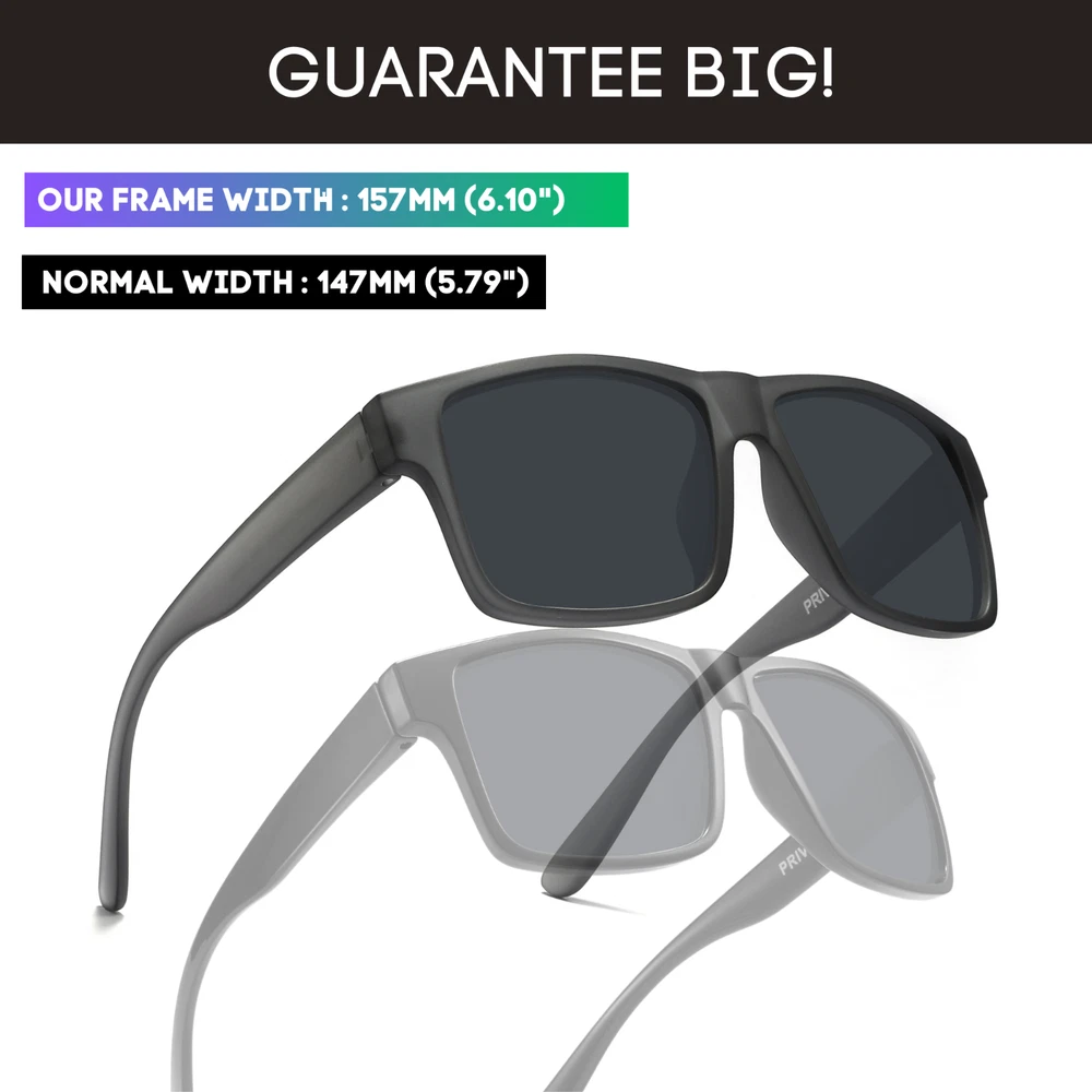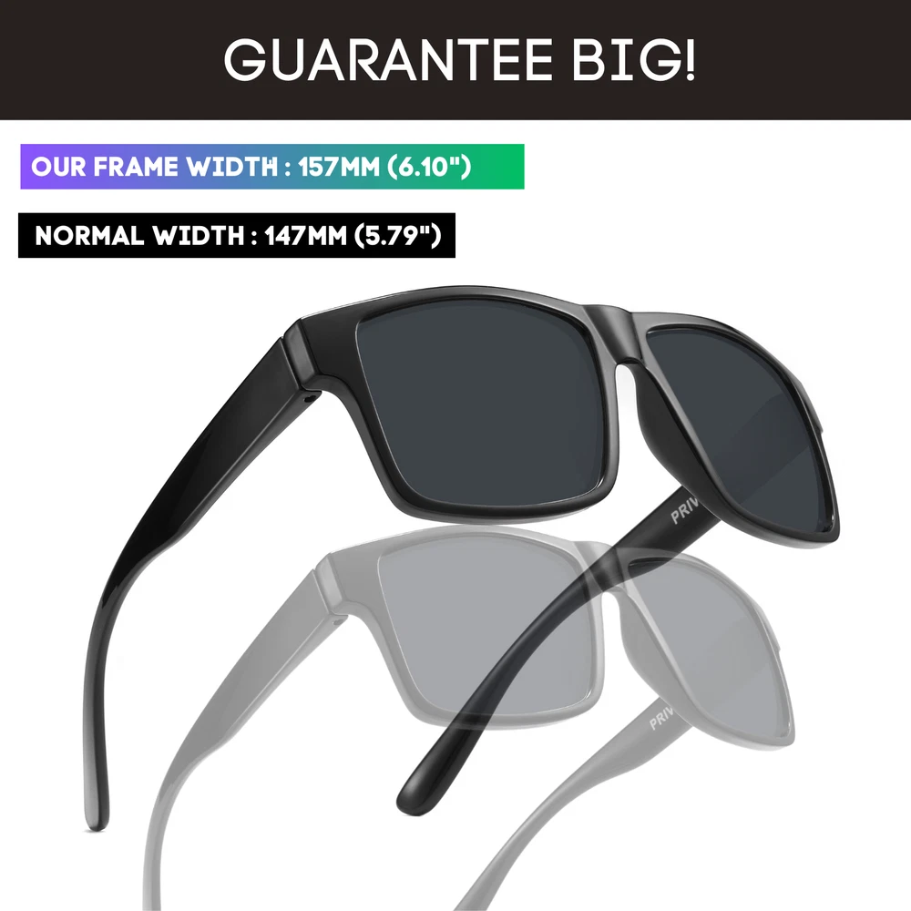 Product Features [Guarantee Big] - You've tried everything on the market but all of the sunglasses are still a little small. If there is one thing that makes our sunglasses stand out from the rest, it's the fact that they fit you perfectly. No more dealing with head pinches, no more feeling uncomfortable and ridiculous in small shades, no more wishing for sunglasses that fit you! [Polarized Lenses] - Our TAC polarized lenses offer clear vision on bright days, reduce glare and reflection, filter out 99.99% of UVA & UVB rays, and provide increased contrast with minimal color distortion. They are perfect for outdoor activities such as fishing, hiking, driving, or spending time at the beach, while keeping your eyes healthy and clear. [TR90 Frame] - The TR90 frame is made of thermoplastic materials that are both durable and flexible, yet lightweight compared to typical plastic frames. This flexibility makes it highly resilient to damage and less likely to break or bend from impact. Additionally, the frame is ultra-lightweight, allowing for comfortable and long-lasting wear. [Product Dimension] - Frame Width : 157mm (6.18") | Lens Height : 55mm (2.17") | Lens Width : 65mm (2.56") | Bridge Width : 22mm (0.87") | Temple Length: 152mm (5.98") [30 Day Money Back] - We're dedicated to providing amazing products that resonate with you at honest prices. Our customers are covered by a 30-day money-back guarantee. If, for any reason, the purchase is unsatisfactory, customers can return the unit and receive a refund. Trying our products comes with no risk, and we're committed to providing you with the best possible service.