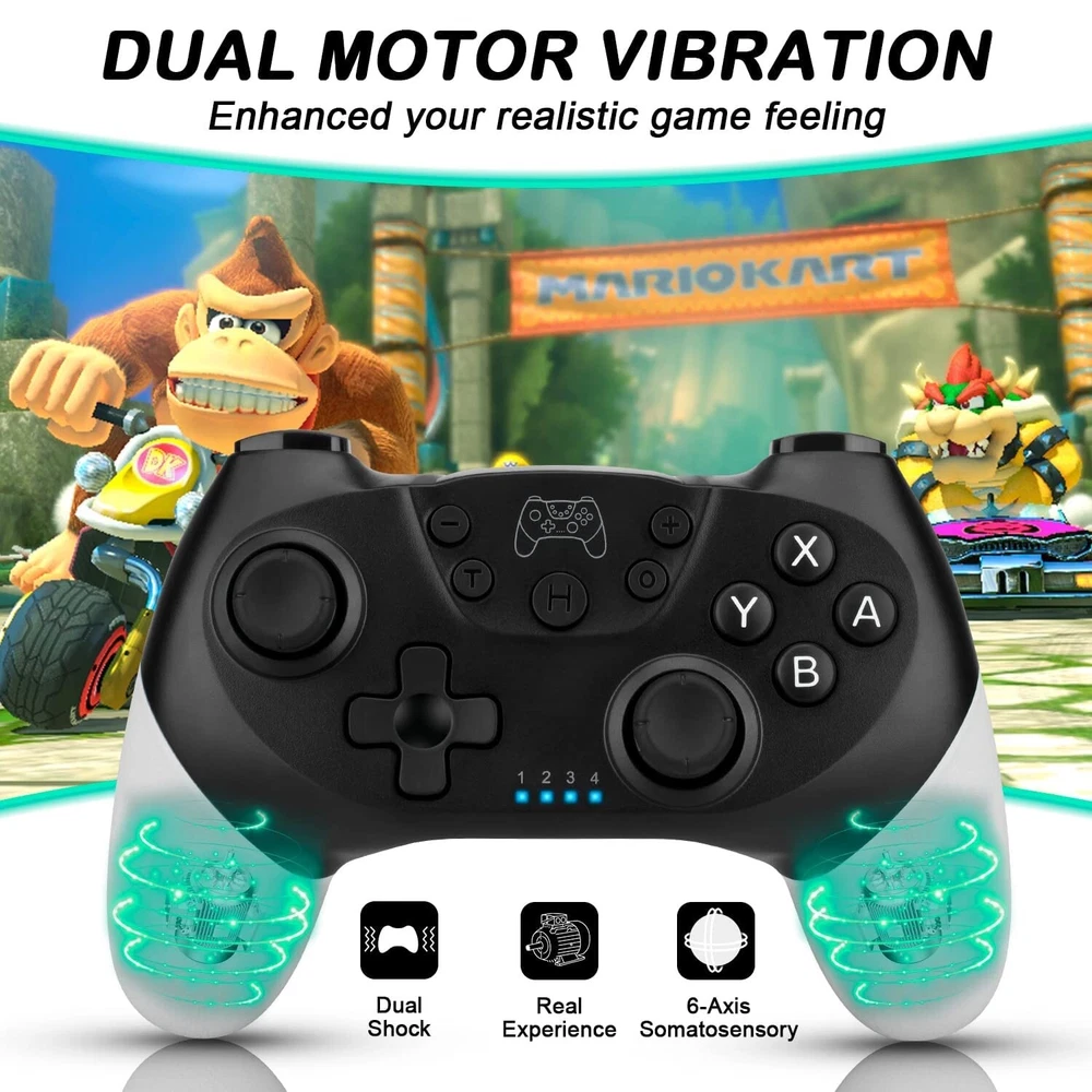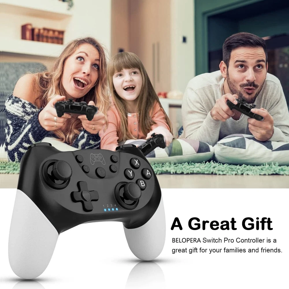 BELOPERA Switch Pro Controller Compatible with Switch OLED/LITE Controller, Wireless Pro Controller for Switch, Rechargeable Remote Controller NO NFC, Wake Up Function- Black About this item Wireless Pro Controller with Wake Up Function: This pro controller for Switch compatible with Lite/OLED. It comes with a wake-up feature. When the game console is in sleep mode, you just need to press 'HOME' button to wake up the console. Turbo Function: Free your Fingers and quickly destroy the enemy with one -click, which can improve your game experience. Dual Motor Control & 3-Level Vibration: Built in dual motors enhance gameplay with 3 Levels vibration, controller puts you in the game with physical feedback. Built in 6-gyro, controller for switch is capable of extremely precise speed, position, and accurate control, rapid start/stop motion. Ergonomic Design- The shape of switch pro controller fits your hands naturally. The handgrips are made of textured rubber that increases friction and prevents hand sweat., comfortable for the extended gaming session. Up to 10Hrs Gaming Time & Fast Rechargeable: Built-in big Capacity battery, actual runtime 8-10 Hrs provided by battery is longer than most other third party controllers, with specifically designed for 2-3h convenient fast charging. 【 MONEY BACK GUARANTEE 】 We are confidence in our products,100% satisfactions guaranteed. Hassle-Free return and 1 year warranty. Any questions, please contact us. Our customer service will give the solution within 1 business day. Product Description OUBANG Switch Pro Controller is perfect for your Switch/Switch Lite/Switch OLED Great OUBANG Nintendo Switch Controller is capable of extremely precise speed, position, and accurate control, rapid start/stop motion. Screenshot One-click screenshot to share wonderful moment on social media. Turbo Function Free your fingers and quickly destroy the enemy with one click. Dual Vibration Dual vibration motors bring you realistic feedback through hit, crash, and explosion. Ergonomic & Unique Surface Coating of the switch pro controller Lightweight and Ergonomic hand - fit design wireless switch controller is perfectly matched to the hand shape and comfortable even for long periods of use. The surface of the controller has a special coating, which gives players a different feel.