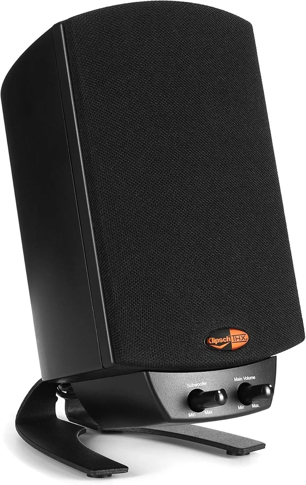 signal-to-noise ratio: 106 dB mounting type: Tabletop Mount special feature: Exclusive Klipsch MicroTractrix® Horn Technology, Clean Bass item model number: FBA_90524082714 speaker size: 6.5 power source: Corded Electric global trade identification number: 00743878014013, 00743878024524, 00743878011586 compatible devices: MP3 Player, Gaming Console, Television, Personal Computer number of batteries: 1 Lithium Ion batteries required. subwoofer diameter: 9.8 Inches manufacturer: Klipsch gtin13: Does not apply controller type: Corded Electric Material: MDF, Acrylonitrile Butadiene Styrene (ABS) Connectivity: Not Supplied maximum range: 20 Meters includes mp3 player?: No audio driver type: Dynamic Driver surround sound channel configuration: 3.1 dimensions: 9.8"D x 9.5"W x 10.2"H subwoofer connectivity technology: Wired warranty type: Full Warranty battery life: 20 years is waterproof: FALSE specific uses for product: Gaming batteries: 1 Lithium Ion batteries required. number of items: 1 Type: Not Supplied model name: Pro Media 2.1 recommended uses for product: For Computers speaker type: Subwoofer woofer diameter: 6.5 Inches control method: Remote is discontinued by manufacturer: No Model: Not Supplied included components: Two satellite speakers, one subwoofer, two 9.5-foot lengths of weight: 2.1 pounds Brand: No Brand UPC: Does not apply package type: Standard Packaging