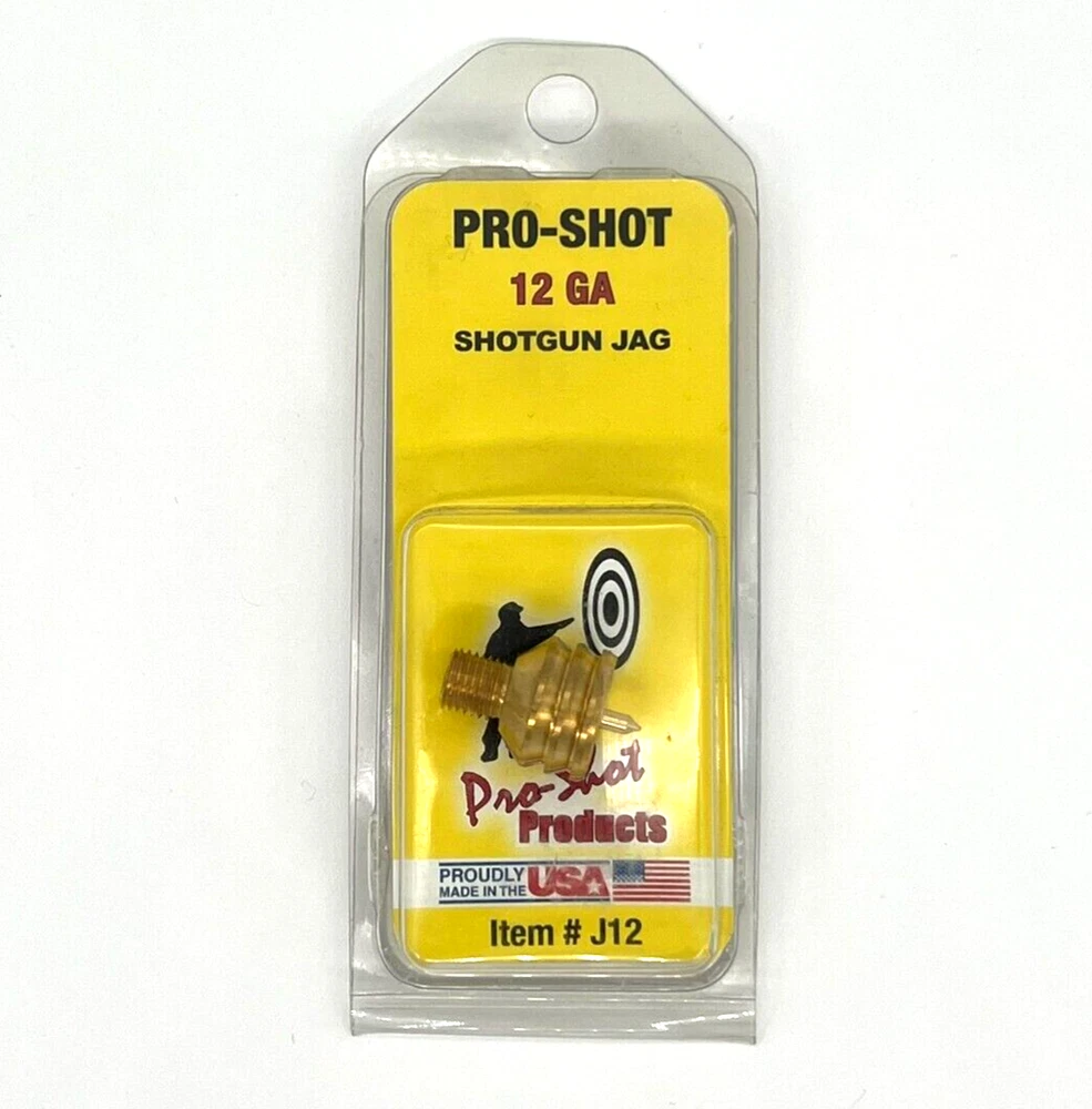 12 Gauge Shotgun Jag 12 Gauge Shotgun Jag - Pro-Shot brass spear tip shotgun jag draped with a patch completely covers the inside of the barrel for a superior way to clean your shotgun barrel. Each shotgun jag is stamped with the appropriate gauge for easy recognition during cleaning. Features: Precision Brass Pro-Shot Design American Std. Shotgun #5/16-27 threads Made in USA *Pro-Shot shotgun jags have a #5/16-27 thread, and can be used on a rifle rod with our #AD1 shotgun adapter.