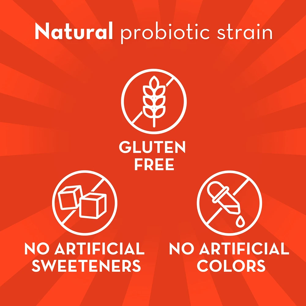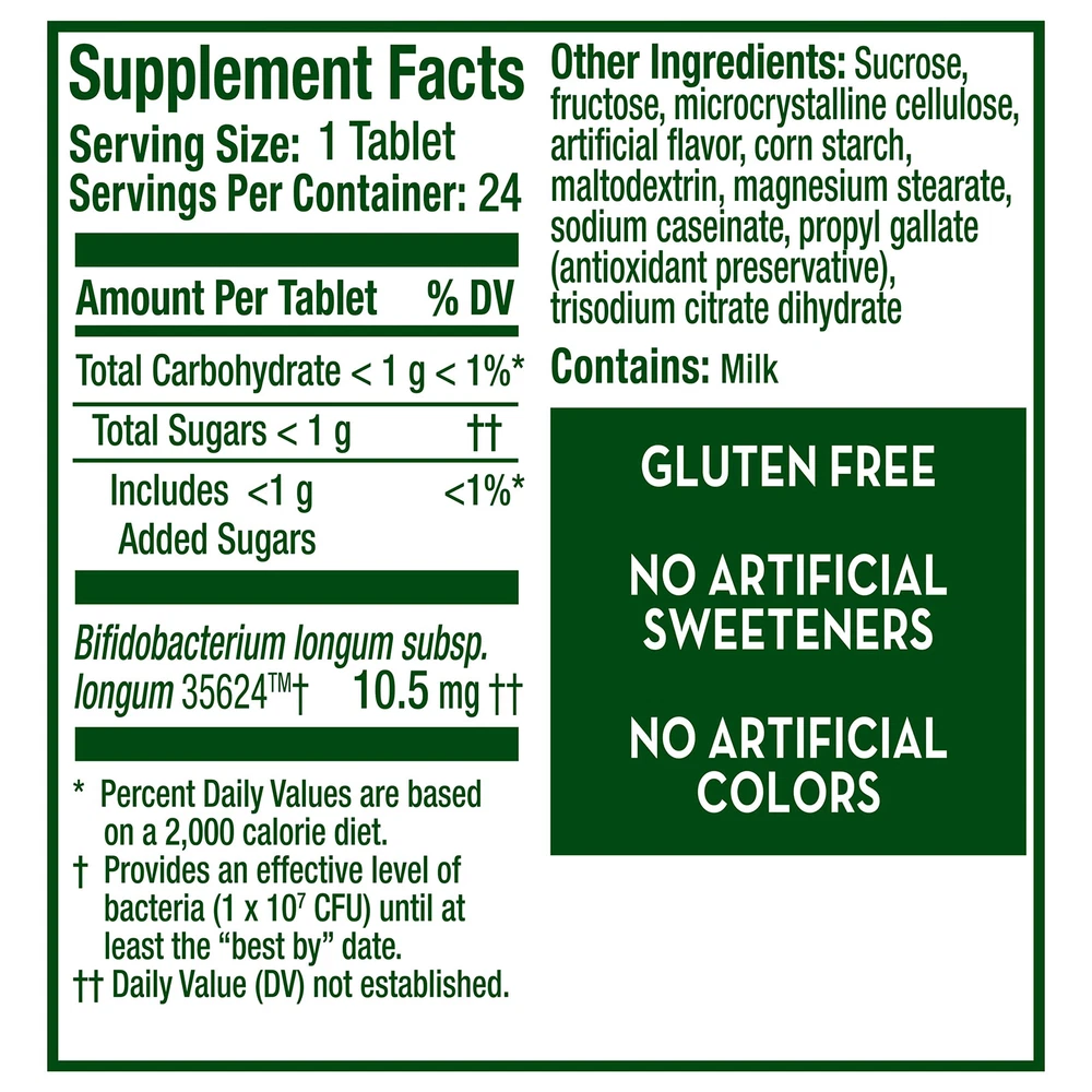 THE PROBIOTIC PHYSICIANS RECOMMEND MOST*: Probiotic is the #1 probiotic recommended by Gastroenterologists for over 14 years running due to its unique strain. Probiotic is nearly 2x more recommended than any other probiotic brand WELL-STUDIED STRAIN: Discovered by Gastroenterologists and backed by 20+ years of research. contains the unique strain Bifidobacterium 35624 and naturally helps soothe occasional abdominal discomfort, gas, and bloating NATURALLY HELPS BUILD AND SUPPORT A HEALTHY DIGESTIVE SYSTEM: 4 out of 5 people felt more confident with their digestive after using Probiotic for 2 weeks . chewable a day helps to maintain your digestive system’s natural balance CHEWABLE in Banana Strawberry Flavor with unique and pure Bifidobacterium 35624; and no artificial colors or sweeteners YOUR DIGESTIVE SYSTEM WITH HEALTHY BACTERIA*: Probiotics contain guaranteed potency. Each lot is DNA tested to ensure effective levels of Bifidobacterium 35624. Chewable Probiotic are gluten-free & don't require refrigeration