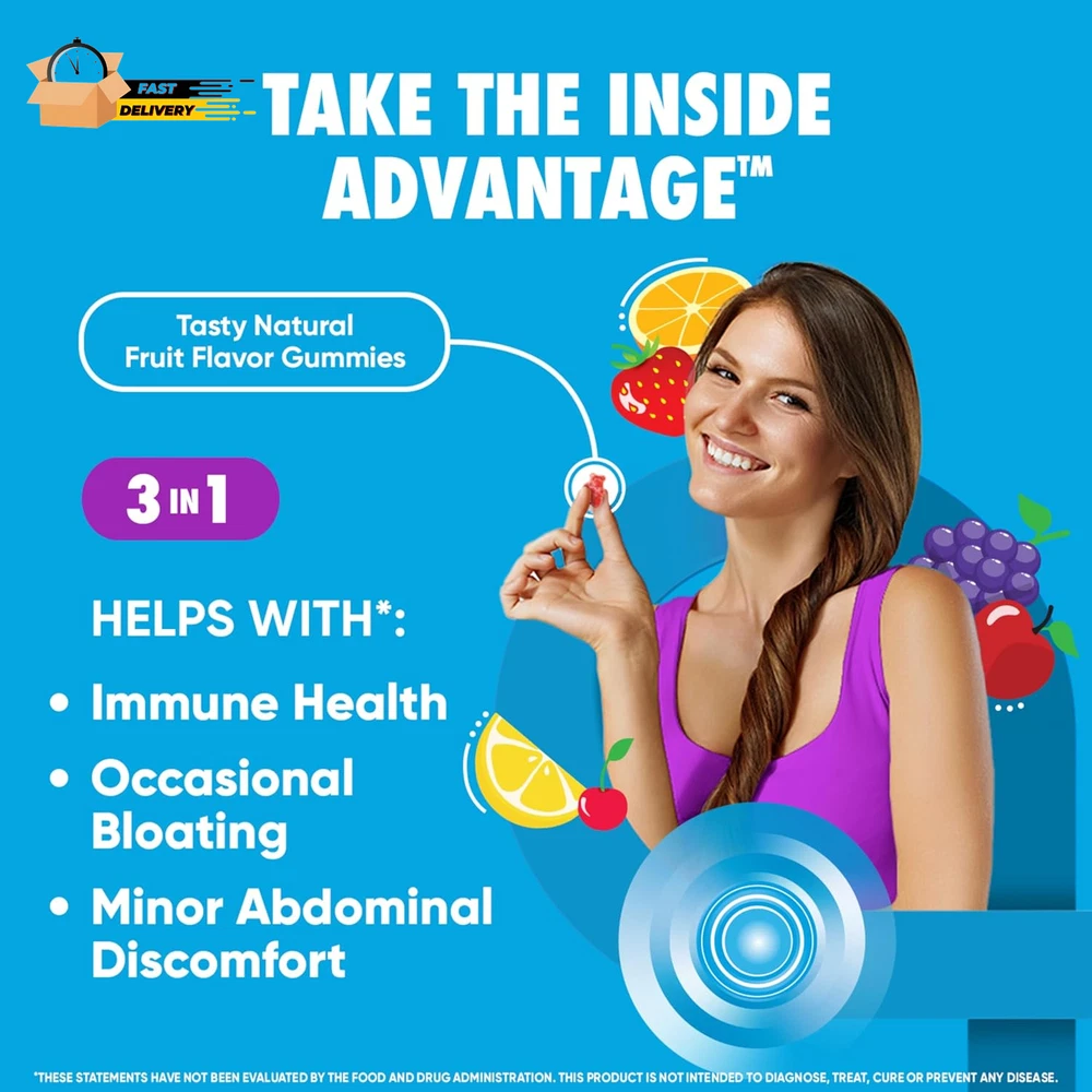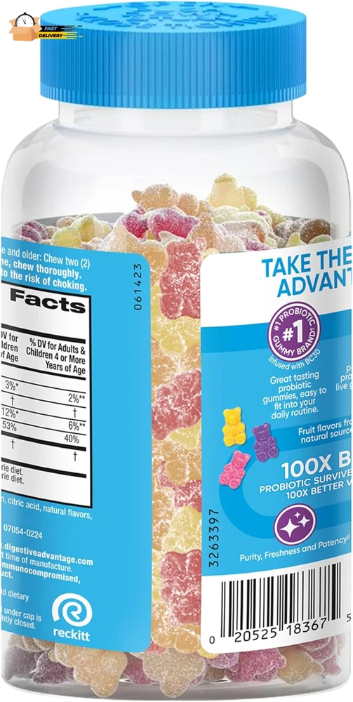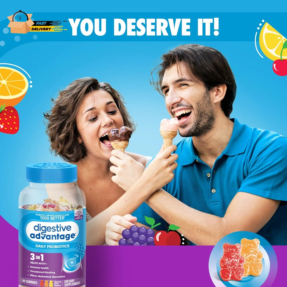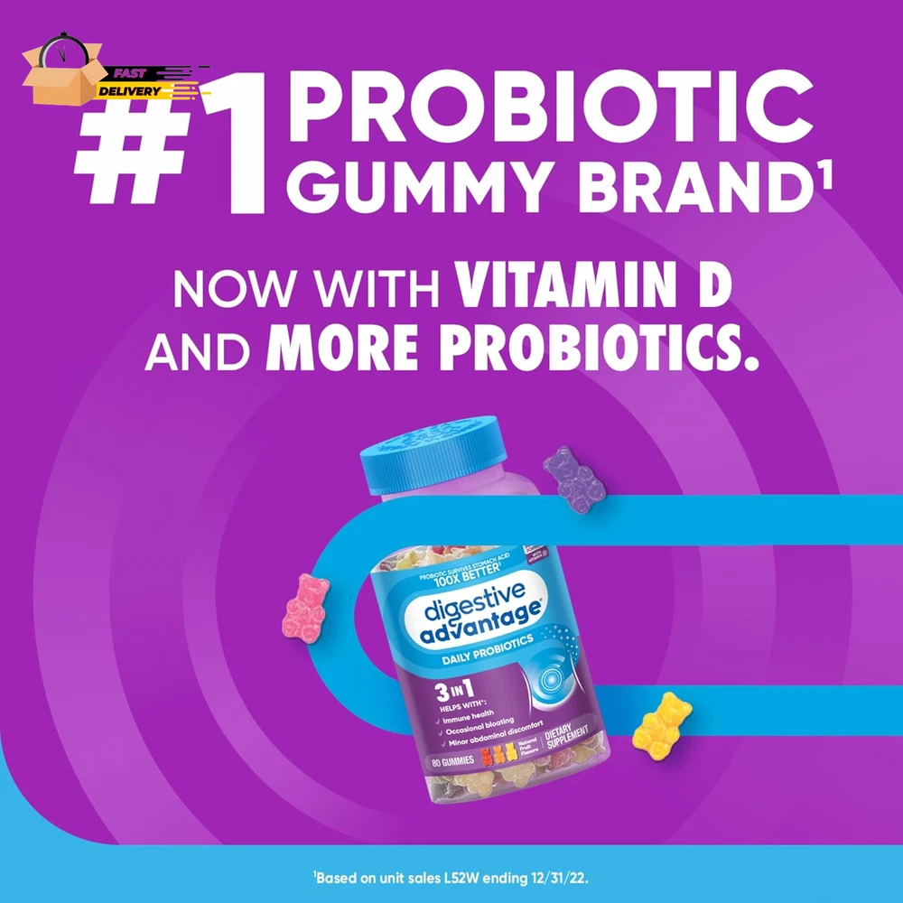 Store New Arrivals Add to Favorite View Feedback Contact Probiotics for Digestive Health, Probiotic Gummies & Vit D, Description Item model number ASA-117 Unit Count 80 Count Primary Supplement Type protein Is Discontinued By Manufacturer No Product Dimensions 3.06 x 3.06 x 5.51 inches; 11.68 ounces Country of Origin USA Item dimensions L x W x H 3.06 x 3.06 x 5.51 inches Product Benefits Immune Support,Digestive Health Item Weight 11.68 ounces Batteries 2 CR2 batteries required. Diet Type Gluten Free Special Ingredients Probiotic Flavor Natural Fruit Item Form Gummy DAILY PROBIOTIC GUMMIES FOR WOMEN & MEN: Digestive Advantage Daily Probiotics with Vit D are crafted to help support your digestive health and immune health.* DIGESTIVE HEALTH: These delicious probiotics for gut health help immune health, occasional bloating, and minor abdominal discomfort.* IMMUNE SUPPORT: 70% of your immune system is in your digestive tract. The good bacteria in Digestive Advantage Probiotic and Vitamin D helps support the immune cells in your gut. NUMBER 1 PROBIOTIC GUMMY BRAND1: Digestive Advantage is the #1 Probiotic Gummy brand 1. Don’t take our word for it, check out our 12k+ ratings and read our customer reviews. Based on unit sales 52W ending 12/31/22. HUNDRED TIMES BETTER: 1 Billion CFUs of patented BC-30 probiotics survives stomach acid 100X BETTER vs. yogurt. Based on median survivability of Digestive Advantage Probiotic BC30 vs. yogurts in a simulated gastric environment. BETTER THAN 50 BILLION: Our BC-30 Probiotic strain has a protective shell that makes it survive stomach acid better than products offering 50 Billion live cultures. PATENTED MEN & WOMEN PROBIOTIC: Our probiotic strain is protected with a natural protein shell to deliver more beneficial bacteria to your gut alive, to support gut health for women and men.* Digestive Advantage Daily Probiotic Gummies comes with Natural Fruit Flavors and are Gluten Free, Non-Dairy, and are guaranteed for Purity, Freshness, Potency. SCHIFF DIGESTIVE ADVANTAGE PROBIOTIC: Digestive Advantage prebiotic and probiotic fiber gummies, probiotic pills, probiotic gummies, and kids gummies are designed to target the source and support gut health for men and women.* *These statements have not been evaluated by the Food and Drug Administration. This product is not intended to diagnose, treat, cure or prevent any disease. "PROBIOTIC: Digestive Advantage Daily Probiotics for women & men are crafted to help support your digestive health and immune health.* PROBIOTIC GUMMIES 4in1: Our probiotics for digestive health help immune health, occasional bloating, and minor abdominal discomfort.* NUMBER 1 PROBIOTIC: Digestive Advantage is the number 1 probiotic gummy brand, based on unit sales 52W ending 12/31/22. BETTER THAN 50 BILLION: Our BC-30 Probiotics survive better than products offering 50 Billion live cultures. IMMUNE SUPPORT: 70% of your immune system is in your digestive tract. The good bacteria in Digestive Advantage Probiotic helps support the immune cells in your gut. PATENTED MEN & WOMEN PROBIOTIC: Our probiotic strain is protected with a natural protein shell to deliver more benefitial bacteria to your gut alive, to support gut health for women and men.* Digestive Advantage Daily Probiotic Gummies comes with Natural Fruit Flavors and are Gluten Free, Non-Dairy, and are guaranteed for Purity, Freshness, Potency. Digestive probiotics for women digestive health and probiotics for men gut support are made to support your overall health.* SCHIFF DIGESTIVE ADVANTAGE PROBIOTIC: Digestive Advantage prebiotic and probiotic fiber gummies, probiotic pills, probiotic gummies, and kids gummies are designed to target the source and support gut health for men and women.* *These statements have not been evaluated by the Food and Drug Administration. This product is not intended to diagnose, treat, cure or prevent any disease. " ABOUT US We offer the best prices around on high quality products. Our E-store includes media such as books, movies, music and games while offering electronics, toys, sporting apparel, clothing, tools, general home, garden items and more. SHIPPING We are always working hard to ensure your package arrives as soon as possible. Please understand that some factors like weather, high postal traffic, and the performance of shipping companies are outside of our control. We offer free shipping to the lower 48 states and ship within 2 business days of payment, usually sooner. We do not accept P.O. Boxes. Please provide a physical address. For shipping outside of the continental USA, we only use eBay's Global Shipping Program.The item is shipped to KY and then sent to the rest of the world. International customers are responsible for all duties and taxes. Continue to check out in order to calculate costs for shipping the item to your country. Messages regarding eBay's Global Shipping Program MUST be directed at eBay EXCLUSIVELY. RETURNS We offer a 30-Day Return Policy on items which you are not completely satisfied with. You have the option for a full-refund or an exchange of the item. No returns are available on items shipped outside of the USA. PAYMENT We accept PayPal. CONTACT US This page content is yet to come Please ad us to your favorite seller and visit again later Thank You CUSTOMER SATISFACTION We try our very best to make sure every customer is completely satisfied. If there's a problem, message us! We're happy to help. WE ACCEPT Copyright © 2021 AutoDS. | All Rights Reserved