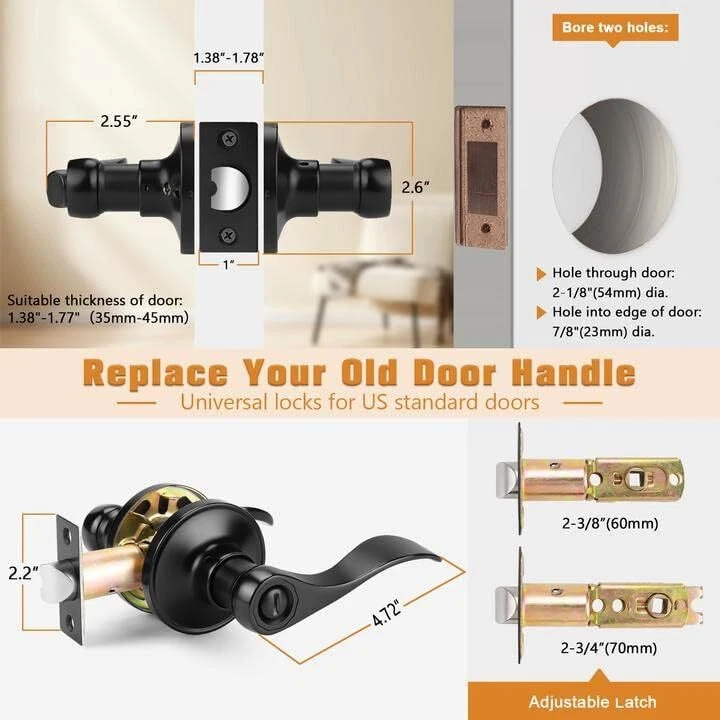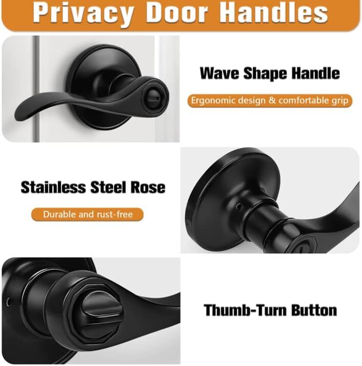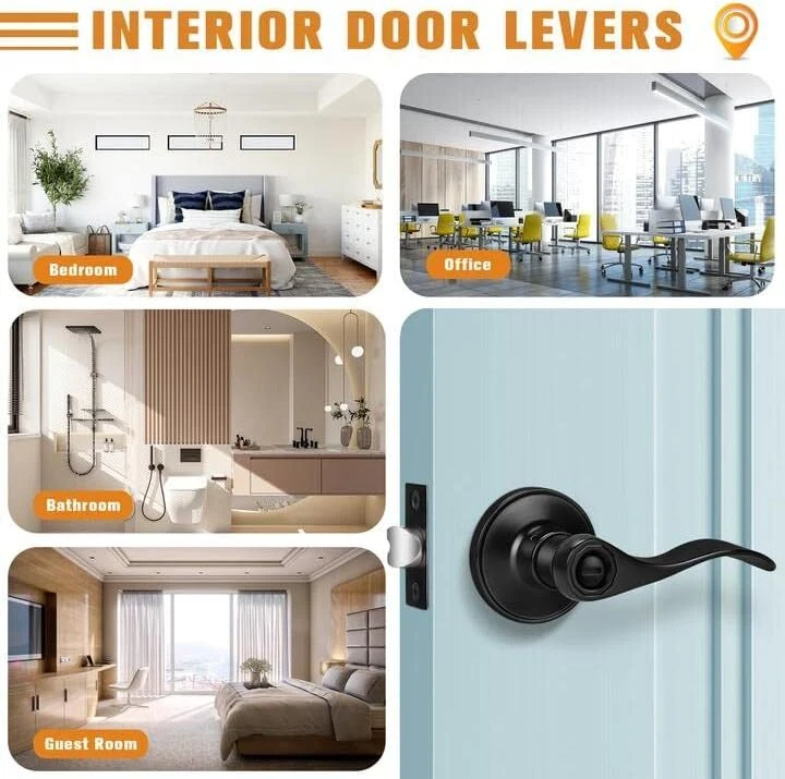 Probrico Wave Style Matte Black Privacy Door Knobs, Reversible Bed/Bath Door Levers, Interior Keyless Door Handles for Right/Left Handed Doors, 8 Pack Probrico Black Door Lever Take Probrico, take quality life. Previous page Next page Bedroom Bathroom Meeting Room Modern | Exquisite | Durable