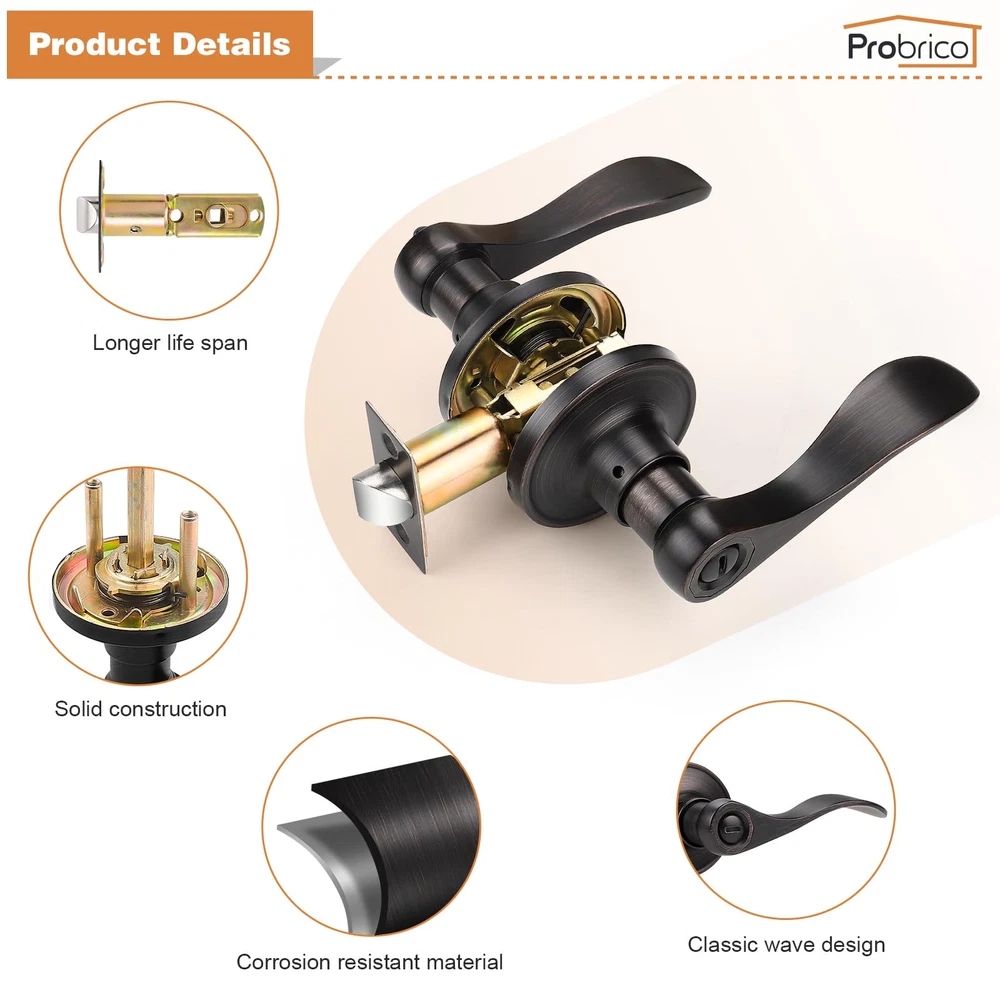 3 Pack per package(for 3 doors) : privacy door kevers with classic bronze finish for bathroom or bedroom door. Confirm with ANSI Grade 3, Exceeds 200,000 cycles. Privacy Function(without keys) : The latch bolt can be locked by thumb turn button on the inside knob. An emergency release tool can unlock the door from the outside Steel Adjustable Latch : It has adjustable universal latch - 2-3/8" or 2-3/4", Fits doors 1-1/4 inch to 1-3/4 inch Easy Intallation : Easy to install with all accessories included. The easy installation makes for a one-person project. It fits both right and left handled doors. Dimensions : Lever Length: 4.7"(120mm) , Rosette Diameter: 2.56"(65mm). Note : The square plate of the latch is unremovable