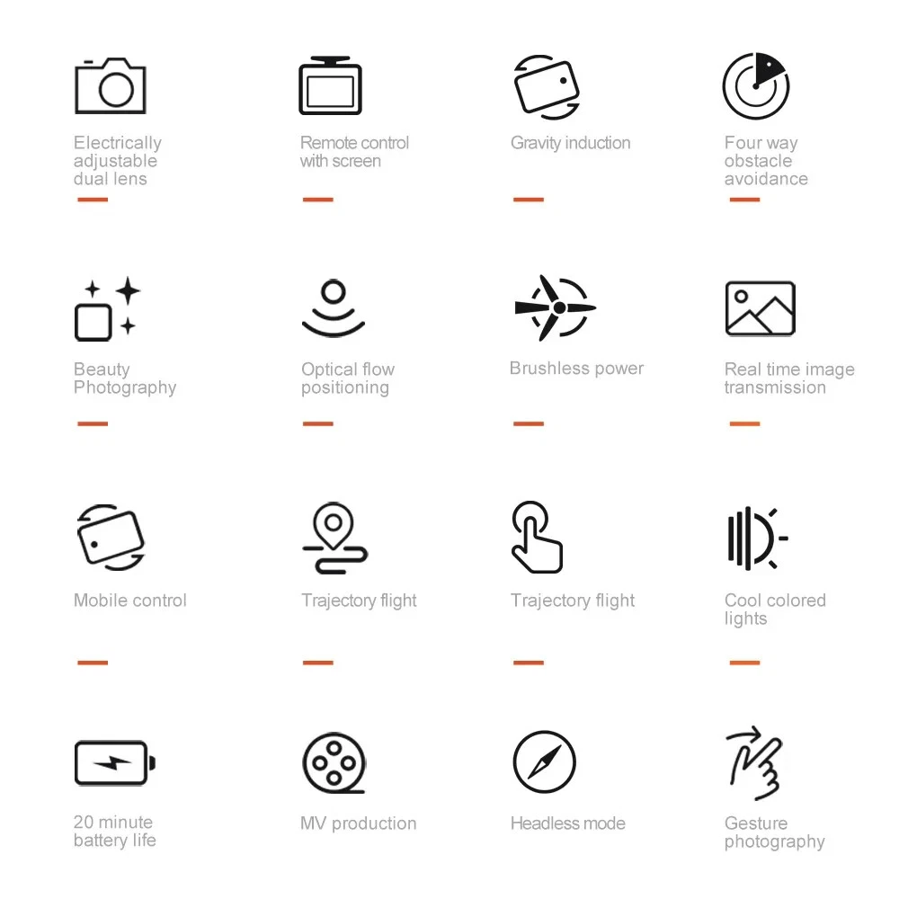 Warning/Disclaimer ⚠️For recreation use only. Illegal modification of drones/planes is prohibited. Please also pay attention to the relevant laws and regulations on the use of drones/planes in your country/area to ensure legal use. Description: Product No.: M6 Frequency: 2.4G brushless screen-controlled aerial photography drone Motor: 1503 brushless motor Quadrotor battery: 3.7V 2000 mAh lithium battery Remote control: built-in lithium battery (USB charging) Flight time: about 18 minutes Charging time: about 60 minutes Remote control distance: up to 3000 meters Color: black as shown in the picture Camera options: 5G WiFi 4K HD/5G WiFi 6K/5G WiFi 8K Field of view: 120° wide angle Specifications: -1: Front, back, left and right with four-sided intelligent obstacle avoidance. After turning on the obstacle avoidance function, it will automatically avoid obstacles when encountering them. 2: With optical flow positioning hovering and altitude holding mode functions, the flight is stable. 3: Dual cameras, freely switchable, horizontal/vertical/overhead shooting 4: In headless mode, there is no need to adjust the position of the aircraft before flying. 5: Built-in high-definition remote control camera that can be adjusted up and down, surprisingly, it can capture amazing pictures and videos from the sky. 6: With WiFi function, it can connect to applications and APK systems, and take photos, videos, and transmit in real time through mobile phone camera images. 7: Draw a flight path on the screen, and the drone will fly autonomously along the specified path. 8: 2.4GHz anti-interference technology. 9: 4 channels, can rise, fall, forward, backward, fly left, and fly right. 10: Brushless motor, six-axis gyroscope, smoother flight and more convenient control. 11: Upgraded remote control with screen control, support real-time image transmission of aerial photography, equipped with memory card and card reader. 12: The fuselage has a real-time power display screen. Functions: up/down, forward/backward, left/right turn, lateral flight, headless mode, optical flow positioning hovering, electric dual camera, four-sided obstacle avoidance, 360-degree roll, altitude hold mode, WiFi FPV, with screen control remote control, fuselage power display Package includes: 1 * M6 quadcopter 1 * remote control 1 * fuselage battery 1 * screwdriver 1 * card reader 1 * memory card 2 * USB charging cable 2 * WIFI manual 4 * spare maple leaves