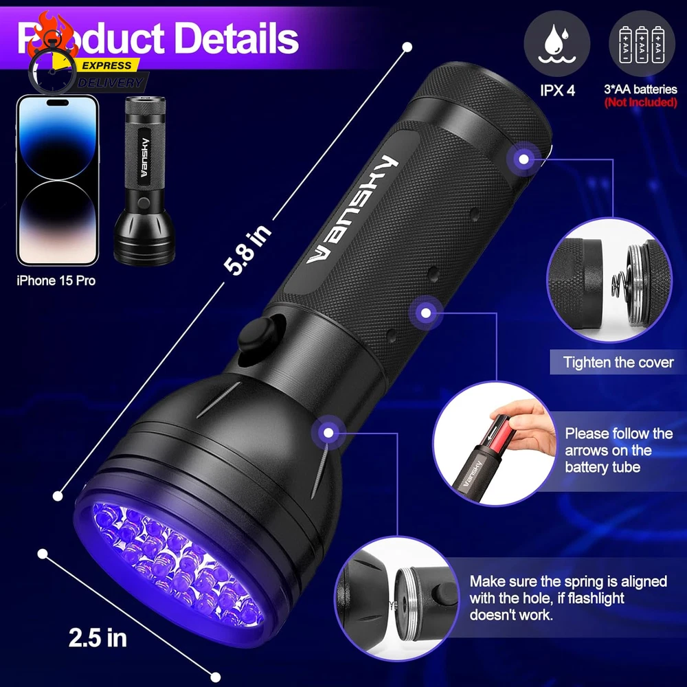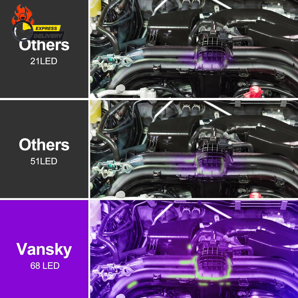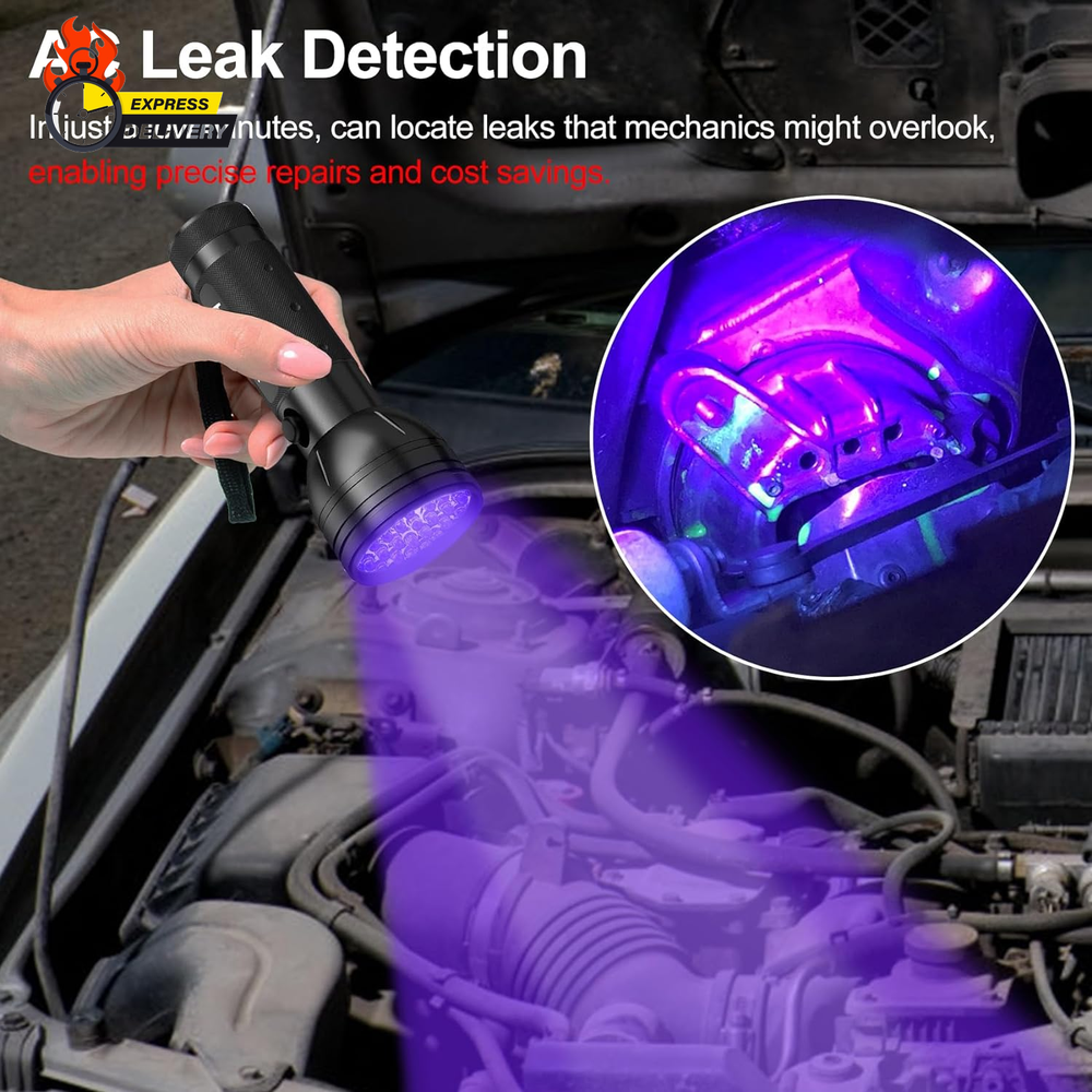 Store New Arrivals Add to Favorite View Feedback Contact Air Conditioner Leak Detector: Professional Car Tool Automotive AC UV Dye Leak Detection Kit with Protective Glasses Description Item model number UV dye leak detector kit Country of Origin China Manufacturer Part Number AC leak detector Item Weight 8.1 ounces Model AC leak detection tool Package Dimensions 7.09 x 3.74 x 2.68 inches Professional AC Leak Detection: Designed specifically for detecting automotive air conditioner leak, Vansky AC leak detector flashlight incorporates cutting-edge R&D technologies. Equipped with 68 high-quality LED beads, it can accurately pinpoint leaks, even in garage or indoor space. Compared to other flashlights, Vansky optimized ultraviolet light operates at a level 40% brighter, setting it apart in brightness. Premium UV Filter Glasses: Using the car AC leak detector tool in conjunction with glasses equipped with high-quality yellow-filter optical lenses can filter out foreign light from the environment, providing clearer and purer visibility of UV dyes undergoing fluorescence reactions. Simultaneously, it protects your eyes from UV exposure. One Item - Multiple Uses: Compatible with all types of UV dye leak detection. For example, Car Oil Leak Detection, and more. (Note: UV Dye Not Included.) In just a few minutes, this leak detection tool can locate leaks that mechanics might overlook, enabling precise repairs and cost savings. Ultra-compact Design: Crafted from ultra-durable high-precision aluminum, it's resistant to wear and features a textured, non-slip grip handle. 7.1*3.7*2.8 Inches/9.9 Ounces; The compact-size, is advantageous for carrying with the vehicle. Its' portable design makes it ideal. What You Get: Provide Friendly, Easy-to-reach Support; If you have any questions or concerns about our products, please don't hesitate to contact us. Vansky AC Leak Detector Tool*1 (NOTE: AA Battery Not Included), UV Protective Glasses*1, User Manual*1. Product Description In just a few minutes, this leak detection tool can locate leaks that mechanics might overlook, enabling precise repairs and cost savings. Vansky 395nm Professional Car A/C Leak Detector Tool Flashlight with UV Protective Glasses! 40% brighter than other leak detection tools! Suitable for all types of UV leak detection dyes! For instance, Car Oil Leak Detection, Coolant Leak Detection, Freon Leak Detection, Refrigeration Leak Detection, and more. (Note: UV Dye Not Included.) ! Things To NOTE: I f the tool is not used for a long time, please take out the battery, otherwise the battery holder will be corroded by the battery! Do not shine directly into your eyes! Please keep it away from moisture! How Does It Work? Leak detector flashlight needs to be used with UV dye. First pour the UV dye into the container that needs to be tested. After the UV dye has fully flowed to every place, put on UV glasses and use leak detection tool to illuminate. Where there is a fluorescent reaction, there is a leak. What's in the box? 1 x Leak Detector Tool 1 x UV Protective Glasses 1 x User Manual Batteries Installation Guide Please use new 3*AA alkaline batteries; (Not included due to the shipping policy.) Confirm whether the batteries with polarity are installed correctly; ( NOTE: Sometimes if the flashlight doesn't work, it may be caused by the reverse installation of the positive and negative poles of the battery. ) And confirm whether the battery holder is placed in the correct position. ( Pleases follow the arrows on the battery tube. ) ABOUT US We offer the best prices around on high quality products. Our E-store includes media such as books, movies, music and games while offering electronics, toys, sporting apparel, clothing, tools, general home, garden items and more. SHIPPING We are always working hard to ensure your package arrives as soon as possible. Please understand that some factors like weather, high postal traffic, and the performance of shipping companies are outside of our control. We offer free shipping to the lower 48 states and ship within 2 business days of payment, usually sooner. We do not accept P.O. Boxes. Please provide a physical address. For shipping outside of the continental USA, we only use eBay's Global Shipping Program.The item is shipped to KY and then sent to the rest of the world. International customers are responsible for all duties and taxes. Continue to check out in order to calculate costs for shipping the item to your country. Messages regarding eBay's Global Shipping Program MUST be directed at eBay EXCLUSIVELY. RETURNS We offer a 30-Day Return Policy on items which you are not completely satisfied with. You have the option for a full-refund or an exchange of the item. No returns are available on items shipped outside of the USA. PAYMENT We accept PayPal. CONTACT US This page content is yet to come Please ad us to your favorite seller and visit again later Thank You CUSTOMER SATISFACTION We try our very best to make sure every customer is completely satisfied. If there's a problem, message us! We're happy to help. WE ACCEPT Copyright © 2021 AutoDS. | All Rights Reserved