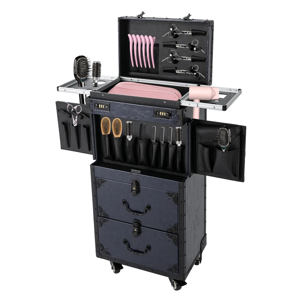 Professional Makeup Case Rolling Cosmetology Case Metal Beauty Travel Luggage Description This makeup case trolley is made of high-quality materials, which make it sturdy, durable, and comfortable to touch. With its fashionable design, reasonable interior layout, and effortless movement design, it is pleasing to the eye, can hold various hairdressing tools, and is convenient to take with you for traveling and business trips, so that your indoor or outdoor hairdressing work will be more convenient and comfortable. Key Features Stylish Appearance: The product boasts a classic rectangular shape and retro style. The PU texture looks upscale and elegant, and the blue color gives it a dark formal look, emphasizing your professionalism and calmness during work. Easy to Move: The pull bar, top handle, and four universal wheels allow you to move it easily whether you are moving indoors or traveling for business or pleasure. Two of the wheels are equipped with brakes, making it your mobile vanity. Security Guarantee: It comes with combination locks and key locks(with keys) to securely protect your tools from falling out of the case over bumps and to prevent others from opening the case. Large Capacity: It comes with a multi-layer large capacity and each layer is built for storing different tools. You can use it to store your cosmetics, hair dryer, barber tools and so on, keeping your tools more organized. High-Quality Material: It is made of high-quality PU, wood board, and metal with the electroplating process, which is sturdy and durable. Easy to Assemble : The simple structure and minimalist design allow you to install it in a breeze, you just need to install the universal wheels and start to use it. Protective Package: The pearl cotton and bubble bag can better protect your product during transportation so that it can be delivered to you completely to the greatest extent. Ideal Gift: The practical functions and cool appearance make it a nice gift for your hairdresser friends, families, and colleagues. Details Drawer Handles: These ergonomic and comfortable handles allow you to easily pull the drawer and take your tools. Cladded Corners: They can dampen shock and protect the case in the event of an accidental crash to extend the product's lifespan. Application It is suitable for families and individuals as well as commercial places like barber stores, beauty stores, and nail salons. It is suitable for professional make-up artists, nail technicians, hair stylists, cosmetologists, nail students, and people who have mountains of cosmetics. Specifications Color: Blue Style: Modern Shape: Rectangular Process: Electroplating Assembly Required: Yes Mount Type: Floor Standing Material: PU, Woodboard, Metal Product Overall Size: 38*25.5*82cm/14.96*10.04*32.28inch Packaging Size: 44*33*87cm/17.32*12.99*34.25inch Gross Weight: 12.4kg/27.34lbs Net Weight: 9.5kg/20.94lbs Package Included 1*Makeup Case Trolley 4*Universal Casters 4*Keys Notes Please check the size carefully before ordering. Please note that cosmetics are not included. Please clear the wheels in time to maintain smooth movement. The service wear of the case is a normal phenomenon. In the process of daily use, please try to avoid excessive impact and drop to extend the lifespan of the product. Please allow the slight color difference caused by the shooting light and 1-3cm error due to manual measurement, and make sure you do not mind before you order. Payment Delivery details Terms of sales About us Contact us Payment We accept ebay payment 。 Fees such as import duties, taxes are not included in the item price or shipping costs. These charges are the buyer's responsibility. Delivery details Shipping: 2-9 working days to: USA Terms of sales We maintain high standards of excellence and strive for hundred percent customer satisfaction. Feedback is very important to us. We hope that you contact us immediately before you give neutral or negative feedback, so that we can address your concerns. It is impossible to address issues if we do not know about them! About us Your satis faction is our ultimate goal. We work hard to earn your trust and future business. Our certified technicians have tested each item before shipping. The unit comes with 1 year limited warranty on all manufacturing defects. a) If you receive a defective item, you may return it or ask for a discount. Please contact us within 14 days after you receive the package. b) What you returned must be intact and in its original packaging as re? u. Customer is responsible for shipping costs of the returned item. c) We will cover the cost of shipping back t with the shipping rate indicated in the registration page. We will send you a new unit or refund the full payment you paid. Thank you. Contact us Business Hour Business Hour: Monday To Friday: 8:30 AM to 5:00 PM (Beijing China time) Due to time zones, our reply to your questions may not be immediately. But within above working time, we will reply your email within 24 hours. If it's non-workdays, please kindly be patient and wait till Monday. Please contact us with ebay message. Please feel free to contact us if you have any questions. Monday To Friday: 8:30 AM to 5:00 PM (Beijing China time) Due to time zones, our reply to your questions may not be immediately. But within above working time, we will reply your email within 24 hours. If it's non-workdays, please kindly be patient and wait till Monday. Please contact us with ebay message. Please feel free to contact us if you have any questions. Style Modern Shape Rectangular Process Electroplating Assembly Required Yes Mount Type Floor Standing Brand Unbranded Type Makeup Bag Color Blue Material PU, Woodboard, Metal Features four universal wheels MPN N/A
