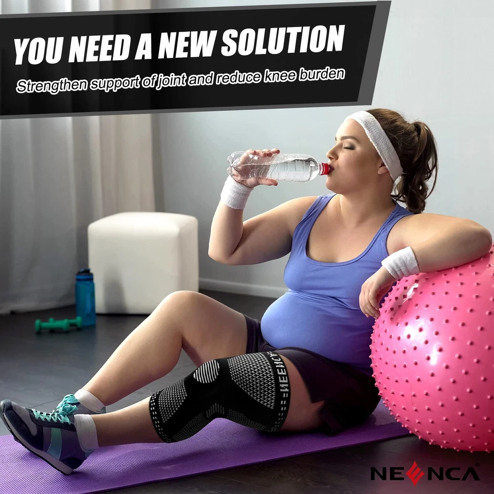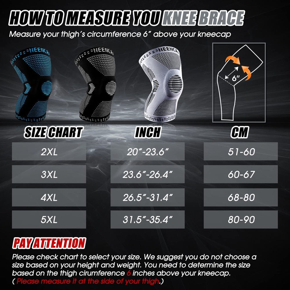 đ Best Gifts Idea For Your Friends And Family! đ â Specially Designed Plus Size Knee Brace for Women and Men, Fitting Overweight to Obese Thighs and Legs. Compression Knee Sleeves for Pain Relief and Sports Protection - Anti Slip, Day & Night Wear. Class 1 Medical Device with FDA Approved â Doctor Recommended! Plus Size (2XL/3XL/4XL/5XL). ACE-59 EXCLUSIVE PATENTâ Spring knee support technology: An anatomically contoured patella gel pads surrounds the kneecap, double-sided metal spring stabilizers fit tightly with your knee joint. These special functional element strengthen side support and maintains joint stability. It effectively disperses pressure, keeping your knee warm, lubricating your joints. Specially Designed for Obese Thighs and Legs, BEST CHOICE for Sports Protection and Pain Recovery. UPGRADED DESIGNâ Overcome the defects of similar products: Medical-grade knee braces with no allergies and itchiness. Metal spring stabilizers on both sides and patella gel pads won't slip or roll easily during using. Non-slip silicone strips and high-elastic fabric to avoid sliding and rolling during exercise. This knee support will stay position all day, keeping your knee warm and reduce stiffness so you can wear them all day long!!! TARGETED RELIEF & SUPPORTâ got a well balance between compression and comfort. Adopt Anti-Inflammatory Therapy and improves circulation around knee area, which will effective reduce the pressure of knee joint and help the meniscus to recover. Wrap around Patella to enhance the stability of kneecap and relax tendons, prevent muscle strain. Relieve ACL, MCL, PCL pain, prevent ligament injury, meniscus tear, swelling, inflammation and so on. It is Perfect for Injuries Recovery or Workout. COMFORTABLE EXPENIENCEâ The air knit fabric can instantly absorb and evaporate large amounts of water, circular breathing. breathable, fast-dry and absorbing sweat, lightweight. Thicker than other knee protectors to provide extra reinforcement without sacrificing comfort, Ideal for Large Legs and Bigger People with Wide Thighs! You can wear it under the leggings or pants, you don't even feel it, so you can wear them in any place or any time!!! RELIBLE BRAND & MULTIFUNCTIONâ is a professional outdoor supplies manufacturer, which occupy the first position of medical equipment for so long. Professional knee sleeves for meniscus tear, arthritis, ACL, joint pain relief, sports injury recovery. Widely used in many sports such as weightlifting, basketball, running, jogging, volleyball, CrossFit, gym, tennis, hiking and more!
