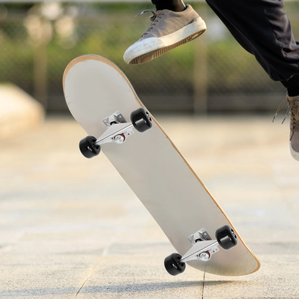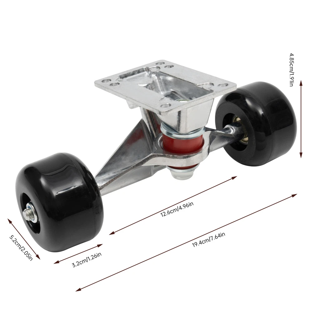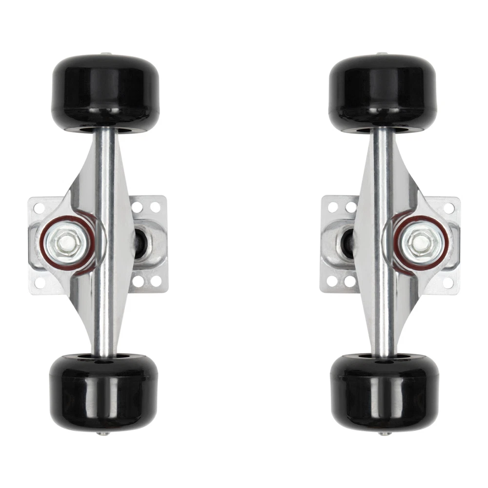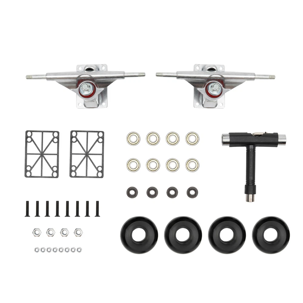 Professional Skateboard Trucks Combo Set Diy Cruisers Skateboard Trucks 4xwheels Description This skateboard truck kit is made of premium aluminum alloy, PU, and metal, making it sturdy and durable. 85A hardness makes wheels roll smoothly on most surfaces, which makes it a great choice for skateboarding and showing off your skills on the street. It's also very easy to install, both beginners and long-time skaters can use it to DIY a new skateboard or upgrade your favorite skateboard. Key Features Sturdy&Durable: High-quality aluminum alloy trucks are corrosion-resistant , sturdy and durable, making sliding less vibration and more stable. Complete Set: Trucks and wheels are all included in the kit, so all you need is to add one of the appropriate boards to make a complete skateboard. Excellent Workmanship: PU infusion featuring superior shock-absorbing, flexible steering, and high stability. Stable&Fast: 85A hardness wheels and metal high-precision bearings can provide your skateboard good grip and stability when the skateboard is traveling at high speeds. Strong Wheels: PU wear-resistant wheels feature high elasticity, and are durable and strong enough for your tricks and daily traveling. Effortless Installation: It comes with the appropriate mounting tools, so even a beginner will be able to install it easily. Ideal Gift: It is an ideal Halloween, Christmas, New Year, Thanksgiving, Easter gift for your children, friends, and loved ones. Customer Service: We aim to provide quality products and services . If you have any problems, please feel free to contact us. We will reply and solve the problem for you as soon as possible. Details Riser Pads: Riser Pads can lift your deck and avoid wheel bite, ensuring safety during skating. T Tool: It can be used to adjust kingpins, wheels, base plate bolts, and trucks. Application It is suitable for highways, concrete roads, plastic runways, and other smooth surface roads. You can use it as a walking tool, or use it for some tricks. It fits well in standard double-kick concave decks. Specifications Color: Silver, Black Material: Aluminum Alloy, PU, Metal Assembly Required: Yes Suitable Board Type: Maple Board Durometer Hardness: 85A Product Overall Size(Not Including Wheels): 194*48.5mm/7.63*1.9inch Truck Length: 126mm/5inch Wheel Size(D*H): 52*32mm/2.04*1.25inch Packaging Size: 21*17*10cm/8.26*6.69*3.93inch Gross Weight: 1.23kg/2.71lbs Package Included 2* Skateboard Trucks 2* Riser Pads 1* T-Tool 4* Wheels All Assembly Required Accessories Notes Please check the size carefully before ordering. Please lubricate the wheels and bearings for the first time skating if you want to roll faster. Please note that bearings need to be used for a period of time to rotate more smoothly and get a better performance. Please note that it is not suitable for uneven or muddy roads. Please ensure enough clearance between the deck and the wheel to avoid wheel bite. Please allow the slight color difference caused by the shooting light and 1-3cm error due to manual measurement, and make sure you do not mind before you order. Payment Delivery details Terms of sales About us Contact us Payment We accept ebay payment 。 Fees such as import duties, taxes are not included in the item price or shipping costs. These charges are the buyer's responsibility. Delivery details Shipping: 2-9 working days to: USA Terms of sales We maintain high standards of excellence and strive for hundred percent customer satisfaction. Feedback is very important to us. We hope that you contact us immediately before you give neutral or negative feedback, so that we can address your concerns. It is impossible to address issues if we do not know about them! About us Your satis faction is our ultimate goal. We work hard to earn your trust and future business. Our certified technicians have tested each item before shipping. The unit comes with 1 year limited warranty on all manufacturing defects. a) If you receive a defective item, you may return it or ask for a discount. Please contact us within 14 days after you receive the package. b) What you returned must be intact and in its original packaging as re? u. Customer is responsible for shipping costs of the returned item. c) We will cover the cost of shipping back t with the shipping rate indicated in the registration page. We will send you a new unit or refund the full payment you paid. Thank you. Contact us Business Hour Business Hour: Monday To Friday: 8:30 AM to 5:00 PM (Beijing China time) Due to time zones, our reply to your questions may not be immediately. But within above working time, we will reply your email within 24 hours. If it's non-workdays, please kindly be patient and wait till Monday. Please contact us with ebay message. Please feel free to contact us if you have any questions. Monday To Friday: 8:30 AM to 5:00 PM (Beijing China time) Due to time zones, our reply to your questions may not be immediately. But within above working time, we will reply your email within 24 hours. If it's non-workdays, please kindly be patient and wait till Monday. Please contact us with ebay message. Please feel free to contact us if you have any questions. Color Silver, Black Material Aluminum Alloy, PU, Metal Assembly Required Yes Surface Treatment Baking Varnish Suitable Board Type Maple Board Durometer Hardness 85A Product Overall Size(Not Including Wheels) 194*48.5mm/7.63*1.9inch Truck Length 126mm/5inch Wheel Size(D*H) 52*32mm/2.04*1.25inch Packaging Size 21*17*10cm/8.26*6.69*3.93inch Gross Weight 1.23kg/2.71lbs Brand N/A MPN N/A UPC Does not apply On Dec 9, 2024 at 23:16:44 PST, seller added the following information: