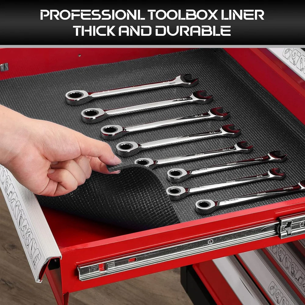 Professional Tool Box Liner 16” X 16 Ft Heavy Duty Tool Box Foam 3Mm Thick To Size and Thickness: It comes in a roll of 16-inch x 16 ft tool box liner, which can be tailored to cover the surface of your tool box and drawers. 3 mm thickness gives your tools a protective cushion. Both sides of the mat are non-slip which helps keep everything in place Size and Thickness: It comes in a roll of 16-inch x 16 ft tool box liner, which can be tailored to cover the surface of your tool box and drawers. 3 mm thickness gives your tools a protective cushion. Both sides of the mat are non-slip which helps keep everything in place Size and Thickness: It comes in a roll of 16-inch x 16 ft tool box liner, which can be tailored to cover the surface of your tool box and drawers. 3 mm thickness gives your tools a protective cushion. Both sides of the mat are non-slip which helps keep everything in place Easy to Care: Since this liner for tool box is washable, it is fairly easy to clean with water and set it out to dry. You can also wipe the liner with a cloth to remove any dust build-up Great Value: The thick and tough toolbox drawer liners make it easier for you to arrange all tools in the drawers, shelves, cabinet, tool box, and garage, preventing your fingered from being injured. you also won’t have to put up with that annoying scraping noise any longer Professional Tool Box Liner 16” x 16 ft, Tool Box Foam 3 mm Thickness to Protect Tools and Box, Grid-Line Non Slip Toolbox Drawer Liners Shelf Liner Mat for Workbench, Cabinet, Shelves, Garage (Black) Item model number MAO-TH-TBL-BK Number of Items 1 Color Black Pattern Grid line Material foam Item Weight 4.02 pounds Theme Casual Recommended Uses For Product tool box drawer liner Size 16"W x 192"L Special Feature 3MM Thickness, Grid-Line Non Slip Product Dimensions 192"L x 16"W Product Care Instructions Wash with water, let dry Complimentary Shipping and Easy Returns Need to return something? Enjoy our 30-day hassle-free return policy! Take advantage of free shipping across all 48 contiguous states! Your order will be dispatched within 1-2 business days once payment is confirmed. Your Opinion Matters! Your happiness is our main goal! We welcome your feedback! If you encounter any problems, reach out to us right away, and we’ll be here to help. Explore the Extraordinary! Our collection showcases fascinating products that are sure to capture your attention. What surprises await you? Delve in and discover unique items that enrich your daily life. Don't miss the amazing things we have in store for you!