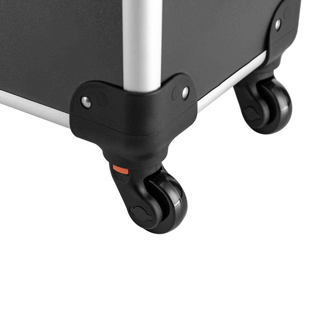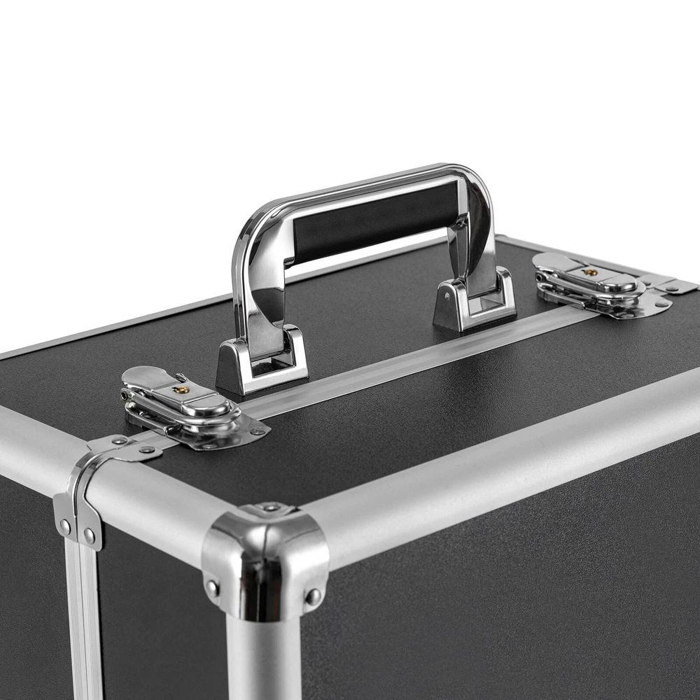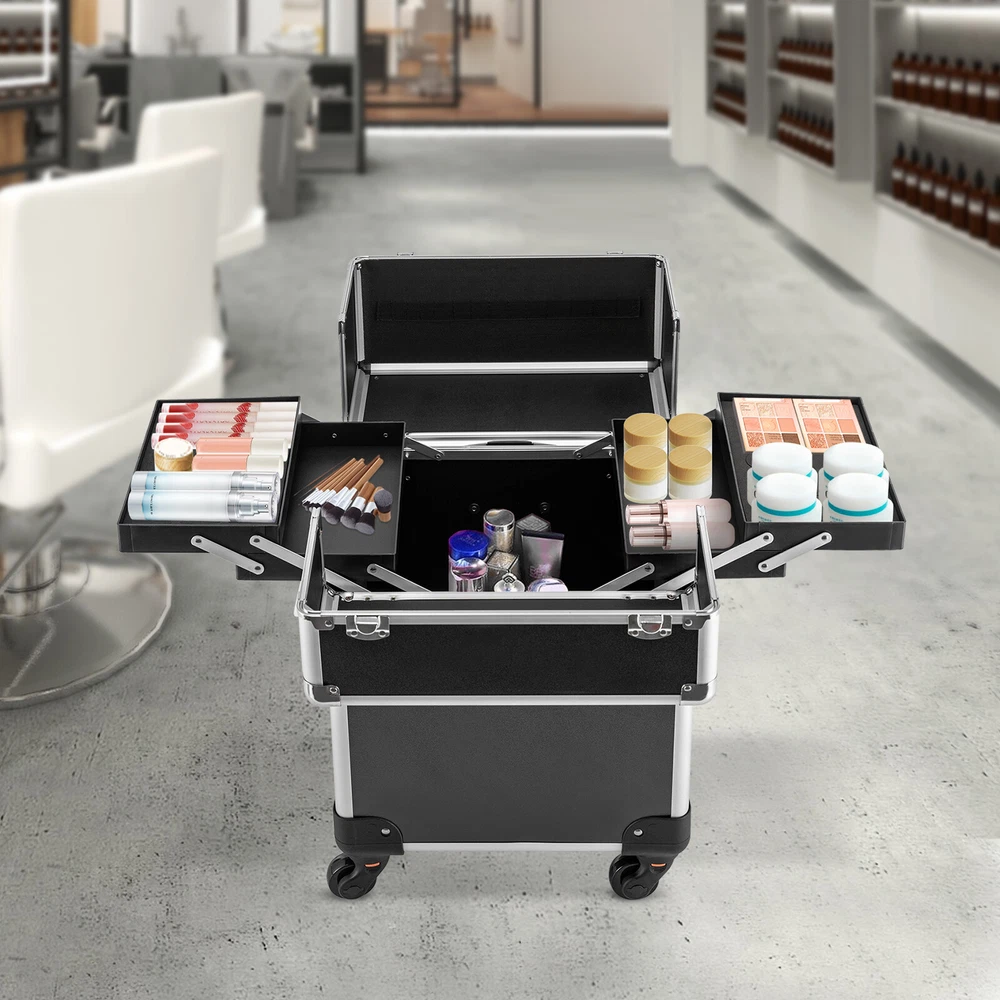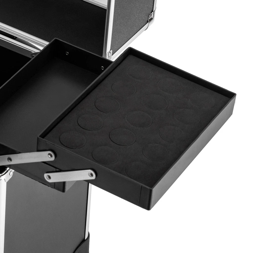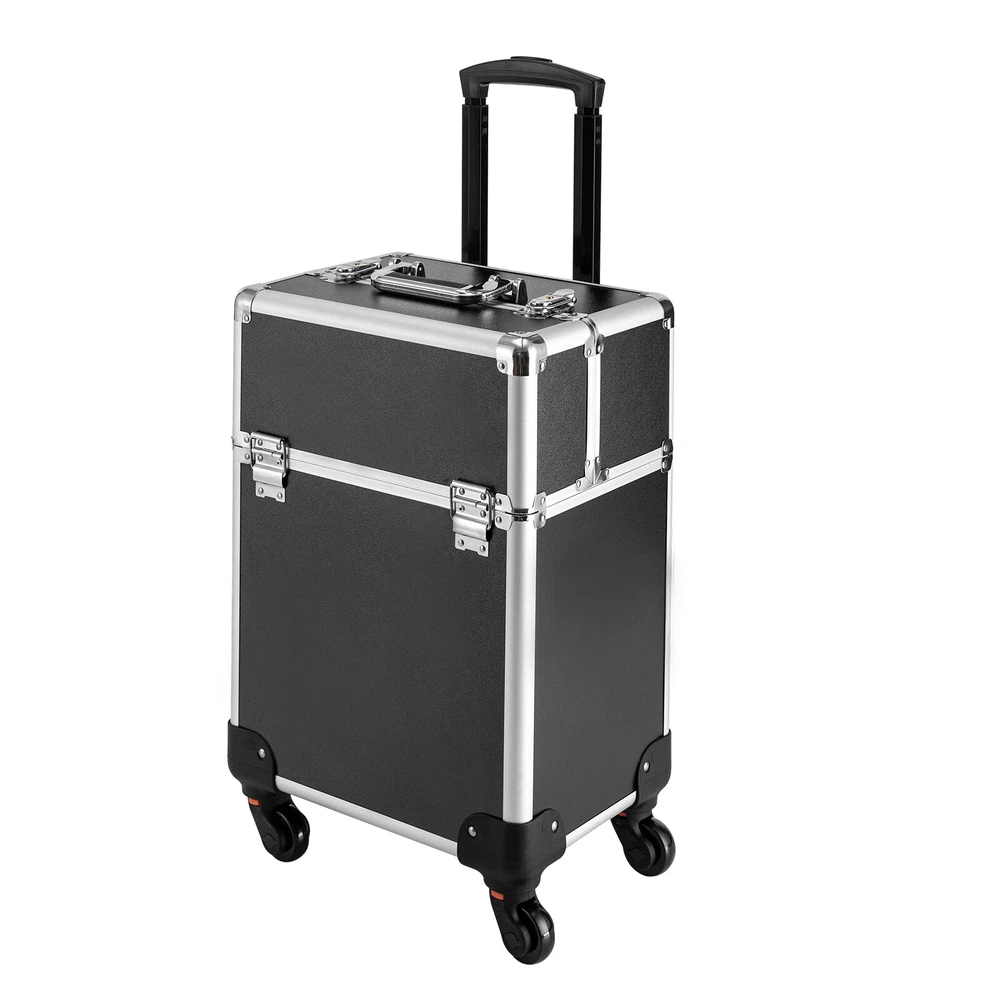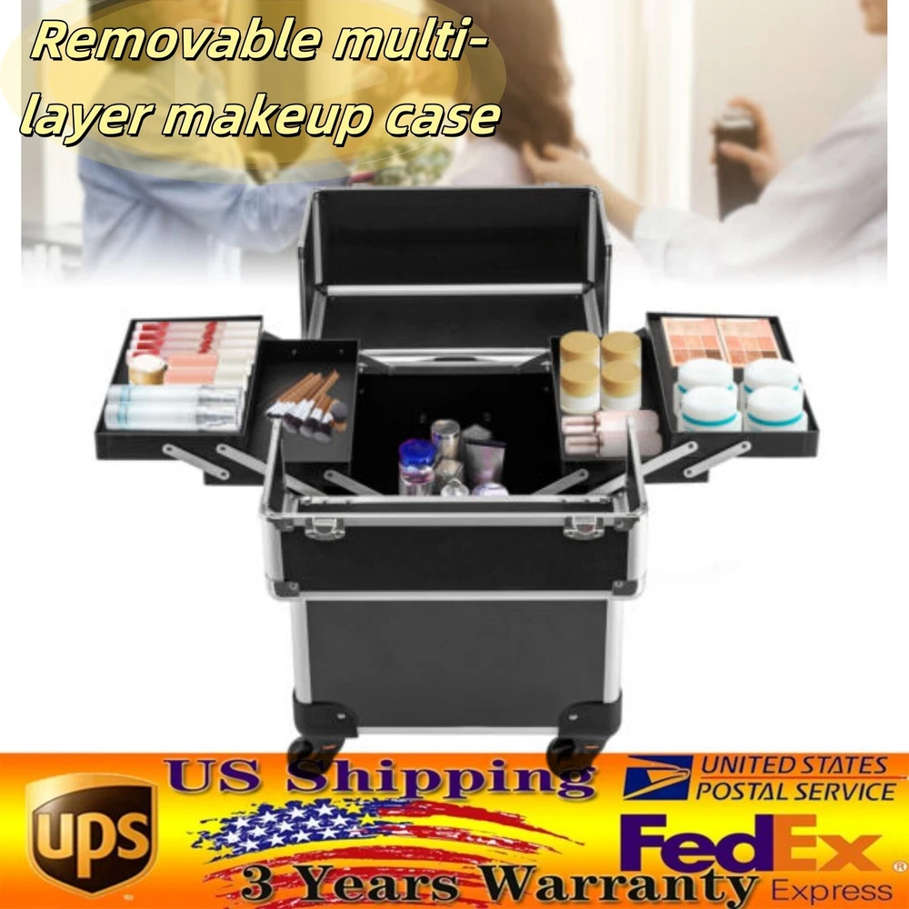 Specification Material: Aluminum Alloy, ABS Color: Black Shape: Rectangular Processing Method: Frosted Rolling Wheel Style: Universal Wheel Carrying Parts: Retractable Handle Model: HXS-05 Opening Method: Latch Number of Trays: 4 Maximum Load:100kg/220.46 lbs Shaking Degree: ±1cm/±0.39in Total Length of Trolley Bar: 80cm/31.5in Universal Wheel Height: 8cm/3.1in The Height of the Latch to the Bottom of the Case: 33 cm/13in Box Cover Height: 12cm/4.7in Base Layer Size: 32*22*31cm/12.6*8.66*12.2in Tray Size: 21.5*14.5*3.5cm/8.5*5.7*1.4in Gross Weight: 4.6kg/ 10.14 lbs Net Weight: 4.3kg/ 9.48 lbs Product Size: 34*24*45cm/ 13.4*9.4*17.7 in Package Size: 38*28.5*51cm/ 14.96*11.22*20.08in Package Included 1 * Rolling Makeup Train Case 2 * Keys Professional Travel Makeup Case Beauty Train Case Rolling Cosmetic Organizer New Description This is a removable multi-layer makeup case designed for professional beauticians to apply makeup anytime and anywhere. This rolling makeup train case is made of high-quality aluminum alloy and ABS for sturdiness and durability. It has an extra-large capacity base and 4 tiers of trays. The fashionable shape is safe and elegant, simple and fashionable. The humanized layout inside the case can reasonably manage the items for you and bring you a comfortable makeup experience. Key Features High-quality Material: This product is made of high-quality aluminum alloy and ABS fireproof board. It has the characteristics of corrosion resistance, wear resistance, and is not easy to fade. Classified Storage: This product has four sliding trays and a large bottom layer. Different functions and sizes of beauty products can be stored in the corresponding trays and compartments, making the storage of tools orderly and convenient for you to find the tools you want quickly. Safe and Stable: The case has a built-in alloy lock cylinder that securely protects the contents of the case and ensures privacy. The entire box is reinforced with aluminum alloy, which is more solid and durable. Large Capacity: This makeup case has four sliding trays measuring 8.46*5.71*1.38 inches that can hold 3.94in height nail polish bottles and a large bottom measuring 12.6*8.66*12.2 inches that can store cosmetics and beauty appliances, such as perms, manicure machines, and light therapy supplies. This versatile product will meet your storage needs. Excellent Weight Capacity: The rectangular structure and aluminum alloy frame give the case a superb weight capacity (up to 220.46 lbs.). You can safely put all your hair and beauty tools in it. Easy to Move and Carry: The universal wheels are easy to move and very convenient, especially for manicurists and cosmetologists who have more tools and need to go out often. And it comes with a telescoping trolley bar (maximum height of 31.5 inches) and a top handle, making it easy to carry when traveling and on business. Stylish Appearance: This rolling makeup train case gives a stylish and elegant look with its simple structure and pure colors. Such a vintage makeup case can nicely decorate your dressing room and make a good impression when you are out at work. Installation-free: This product has a one-piece structure, and you can use it directly without additional installation of it after receiving it. Details Three-position Trolley Bar: The thickened aluminum alloy trolley bar has a three positions design, which can be used by people of different heights. It has also undergone a 4,000 times fatigue test, which can control the shaking degree within ±0.39 inches. Removable Foam Compartment: The left tray uses a square 12-compartment foam compartment; the right tray uses a round 15-compartment foam compartment. It can put your cosmetics or nail polish in a more orderly way. And the foam can also protect the cosmetics well from wear and tear. Silent Universal Wheel: This product uses high-quality rubber removable silent universal wheels, which are strong and resistant to wear and tear. Detachable wheels can be easily removed or replaced if needed. Damping Handle: It is made of load force TEP and nylon, which is slow rebounded, durable, and not easy to break. And it also adopts the ergonomic width design, which can effectively relieve the pressure on your fingers. Application This rolling make-up case is suitable for professional make-up artists, hairdressers, nail technicians, and beauticians. Notes Please allow the slight color difference caused by the shooting light and the 1-3 cm error due to manual measurement, and make sure you do not mind before ordering. Payment Delivery details Terms of sales About us Contact us Payment We accept ebay payment 。 Fees such as import duties, taxes are not included in the item price or shipping costs. These charges are the buyer's responsibility. Delivery details Shipping: 2-9 working days to: USA Terms of sales We maintain high standards of excellence and strive for hundred percent customer satisfaction. Feedback is very important to us. We hope that you contact us immediately before you give neutral or negative feedback, so that we can address your concerns. It is impossible to address issues if we do not know about them! About us Your satis faction is our ultimate goal. We work hard to earn your trust and future business. Our certified technicians have tested each item before shipping. The unit comes with 1 year limited warranty on all manufacturing defects. a) If you receive a defective item, you may return it or ask for a discount. Please contact us within 14 days after you receive the package. b) What you returned must be intact and in its original packaging as re? u. Customer is responsible for shipping costs of the returned item. c) We will cover the cost of shipping back t with the shipping rate indicated in the registration page. We will send you a new unit or refund the full payment you paid. Thank you. Contact us Business Hour Business Hour: Monday To Friday: 8:30 AM to 5:00 PM (Beijing China time) Due to time zone