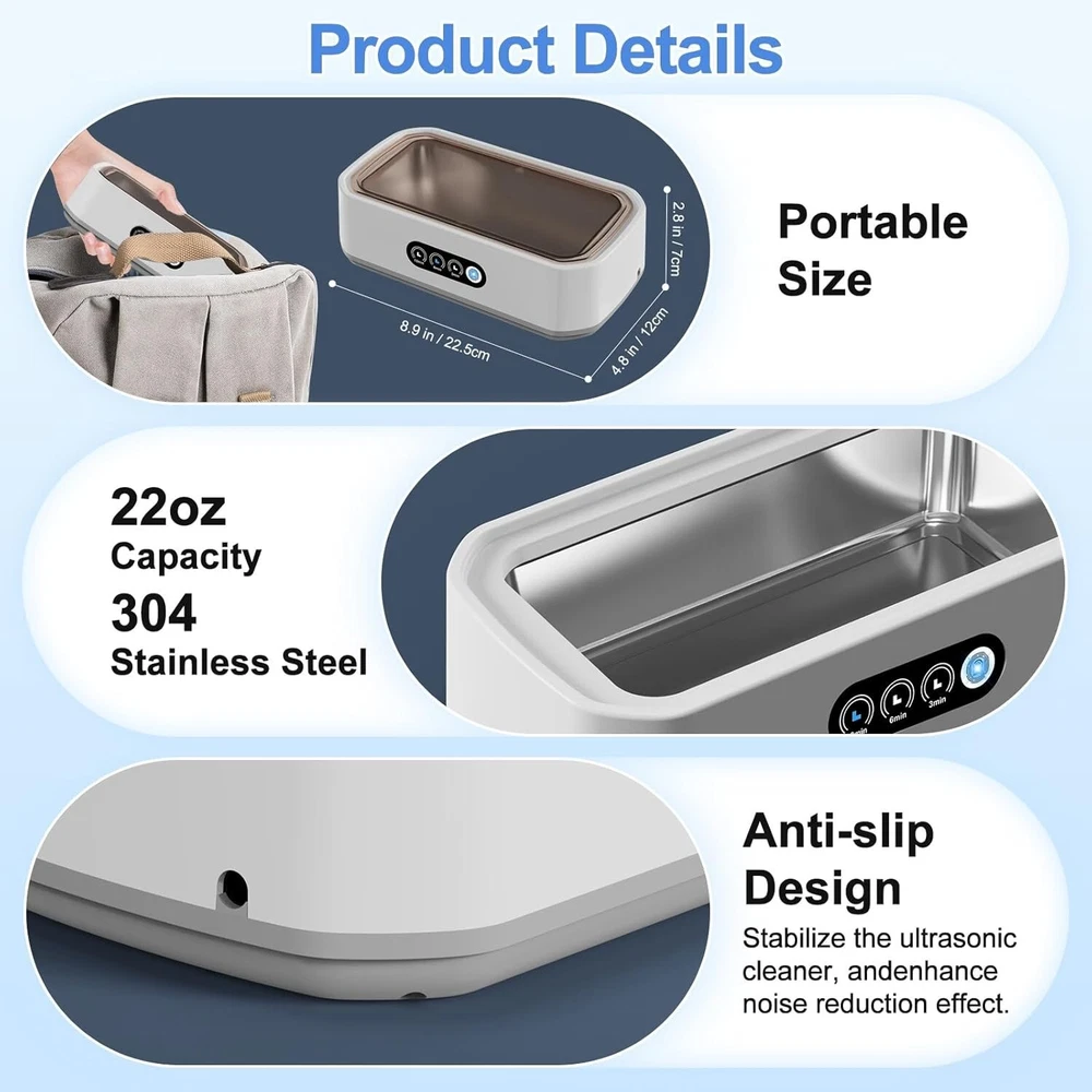 High-Performance Ultrasonic Jewelry Cleaner with Digital Timer and Touch Control ‹ › ‹ › ‹ › ‹ › ‹ › ‹ › ‹ › ‹ › ‹ › High-Performance Ultrasonic Jewelry Cleaner Professional Ultrasonic Jewelry Cleaner : A multi-purpose cleaning marvel, this ultrasonic jewelry cleaner is designed for an array of treasures including jewelry, rings, glasses, watch bands, diamonds, coins, keys, combs, parts, and instruments. It offers a convenient and effective solution for all your cleaning challenges. Features: Large Capacity: With a 650ml (22oz) capacity, this cleaner effortlessly accommodates a variety of objects, fully submerging them for an all-encompassing clean. Upgraded Ultrasonic Technology: Operating at 49 kHz, it creates high-frequency ultrasonic waves that produce microscopic bubbles, reaching even the most challenging crevices. Three Time Modes: Choose from three cleaning cycles of 3, 6, or 12 minutes, ensuring precision and optimal results tailored to your cleaning needs. Durable Construction: Made with corrosion-resistant 304-grade stainless steel and transducers, this ring cleaner is built to last, promising durability and stability. Environmentally Safe: Experience effective cleaning without harsh chemicals; a drop of ordinary dish soap enhances results without harming your valuables or the environment. Benefits: Enjoy professional-grade cleaning results in the comfort of your home. Effortlessly restore the brilliance of your most cherished items. Simple one-touch operation allows you to walk away while it does the work. Easy-to-operate auto shut-off feature for convenience. Why Choose Our Ultrasonic Jewelry Cleaner? Experience the dazzling transformation of your jewelry and household items with our High-Performance Ultrasonic Jewelry Cleaner. Whether it’s your rings, watches, or various treasures, this powerful machine delivers wow-worthy results without the need for abrasive scrubbing or harmful chemicals. Simply fill the tank, submerge your items, and choose your cycle for sparkling results in minutes. Indulge in the luxury of professional-grade cleaning at home. Embrace brilliance, restore your valuables, and elevate your cleaning routine with our state-of-the-art ultrasonic cleaner. Don’t wait—secure yours today and rediscover the luster of your most cherished items! Shipping Free & Fast Shipping - We offer free shipping to most of the USA with a normal delivery time of 3-7 days. However, due to the current situation, additional delivery time (up to 3 weeks) may be required for some items. Alternative Carriers - We may use alternative carriers (e.g. USPS, FedEx, UPS, etc.) to ensure your package arrives safely and on time. Due to the use of multiple carriers, we are unable to provide a tracking number automatically. Handling Time - Orders are processed and shipped within 1-2 business days of receiving cleared payment. Shipping Restrictions - Shipping to Alaska, Hawaii, Puerto Rico, Guam, and other US territories may incur shipping charges or delivery restrictions. Please contact us before ordering, or your order can be refunded/cancelled. State Restrictions - There may be restrictions based on your state of purchase. For example, certain items may not be shipped to California due to state regulations. Contact for Tracking Updates - If you require tracking updates or have any concerns about the delivery of your order, please feel free to contact us, and we will be happy to assist you. Return 30-Day Hassle-Free Returns - We want you to be completely satisfied with your purchase. If you are not, you can return the item within 30 days of receiving it for a full refund or exchange. Easy Return Process - To start a return, simply contact us and we will provide you with a prepaid return shipping label and detailed instructions. Restocking Fee - There are no restocking fees for returns. However, the buyer is responsible for return shipping costs if the return is not due to a seller's error. Refund Processing Time - Refunds will be processed within 5 business days of receiving the returned item in its condition. Payment We accept all major credit cards, PayPal, and Apple Pay for your convenience. Your payment information is secure and encrypted to ensure a safe and seamless transaction. Please complete your payment within 3 days of purchase to avoid any delays in shipping. Feedback Your feedback is extremely important to us. We strive to provide the best products and customer service possible. If you are satisfied with your purchase, please take a moment to leave us a positive review. If you have any concerns or issues with your order, please contact us before leaving negative feedback. We are committed to resolving any problems and ensuring your satisfaction. Contact Us If you have any questions or concerns, please feel free to out to our customer support team. You can contact us through the eBay messaging system. We are available Monday to Friday, 9:00 am to 5:00 pm EST, and we will do our best to respond to your inquiry within 24 hours. Buy it now and enjoy a pleasant shopping experience! Unit Quantity: 1 Set Includes: Cleaner,Instruction Manual,Charging Cable Suitable For: Jewelry,Rings,Glasses,Watch Bands,Diamonds,Coins,Keys,Combs,Parts,Instruments Features: Digital Timer,3 Modes,Touch Control Panel,Auto Shut Off,Environmentally Safe Cleaning Type: Ultrasonic Cleaner Form: Liquid Volume: 22 oz Unit Type: oz