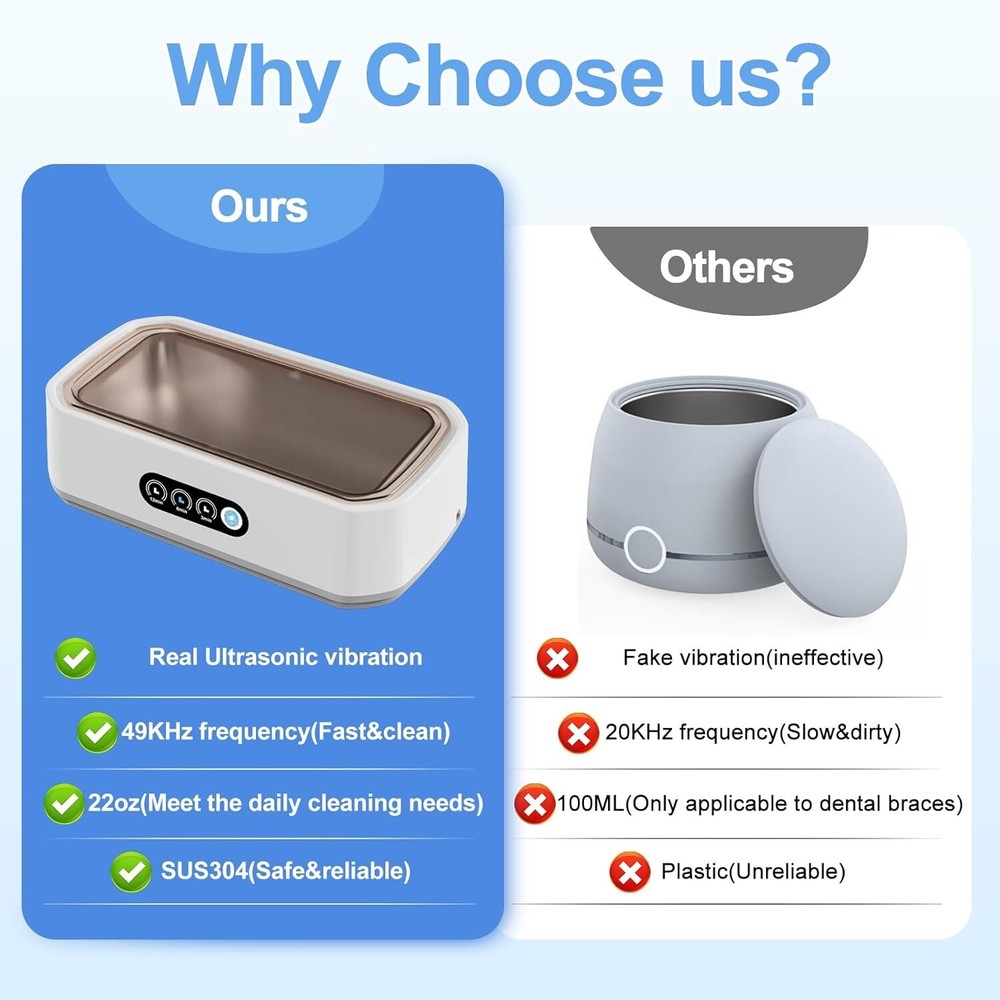 This ultrasonic jewelry cleaner is a game-changer! It effortlessly restores shine to rings, watches, glasses, and more with its powerful cleaning action. The digital timer and touch controls make it super easy to use, while the large tank fits multiple items at once. My jewelry looks brand new after just a few minutes—highly recommend for anyone who wants professional-level cleaning at home!