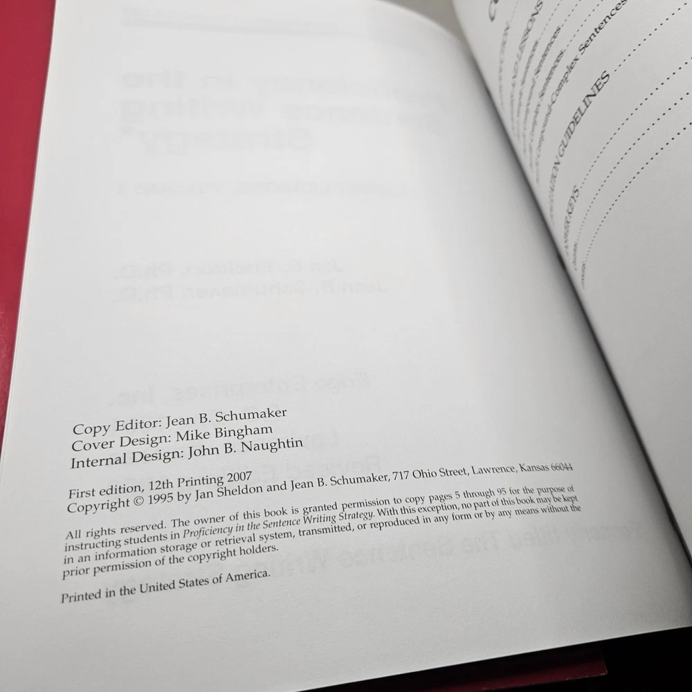 Level:ProficiencySubject:StrategyCountry of Origin:United StatesAuthor:jean b schumakerType:WorkbookPublication Name:proficiency in the sentence writing strategy