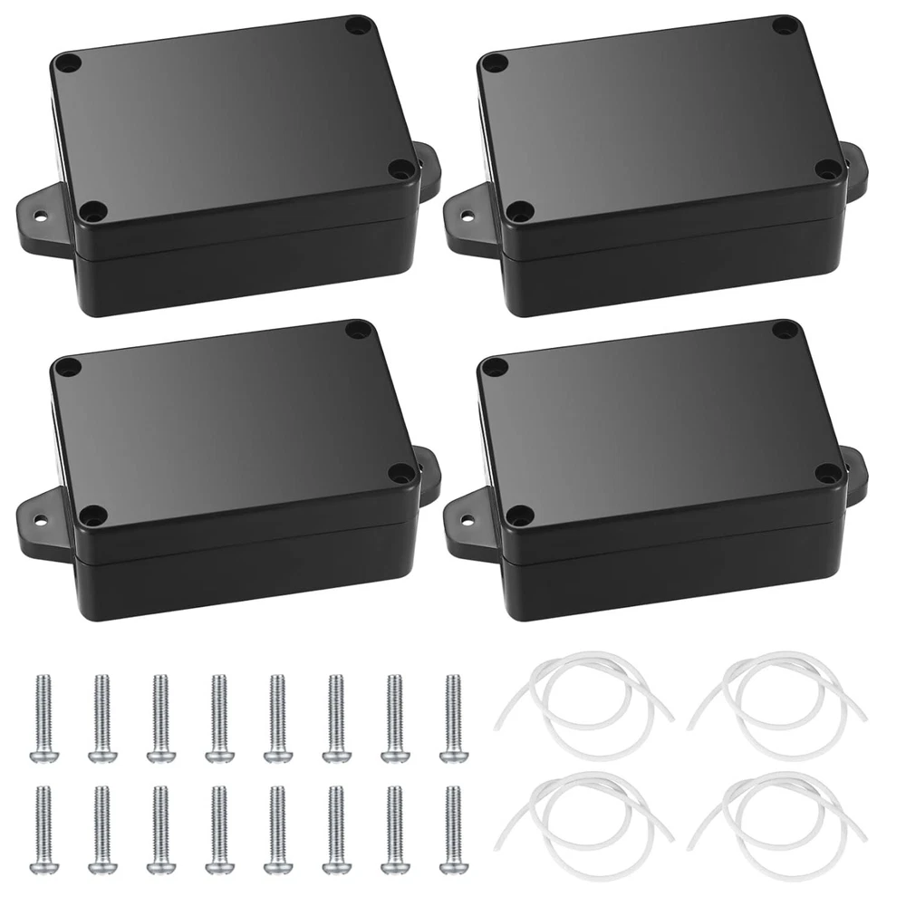 Project Box 4Pcs Junction Boxes, IP65 Waterproof Electrical Boxes, ABS Plastic The project box is made of high-quality ABS material, not easy to break, not easy to corrode, rust-proof, sturdy, waterproof and dustproof, durable and can maintain good performance in harsh environments The waterproof box has an IP65 waterproof rating and has excellent waterproof and dustproof performance. It is suitable for dry and humid environments, protecting your equipment from harsh environments and ensuring electricity safety The outer sizes are 84x59x35mm/3.3x2.3x1.37 inches (LxWxH), and the inner size are 74x49x27.4mm/2.9x1.9x1.07 inches (LxWxH). For detailed size, please refer to the pictures, which show the exact internal size of the product. (Allowable error: ±2mm) The waterproof electrical box outdoor is designed with fixed ear holes, which is convenient for placing equipment and installing. Provides a quick and easy way to repair and extend power cords. Suitable for indoor or outdoor use Suitable for electronic engineering, power supply units, temperature control boxes, junction boxes, instrument casings, electronic product casings, thermostats and other products, and also suitable for protection coils or power boards, transformers, sockets, etc
