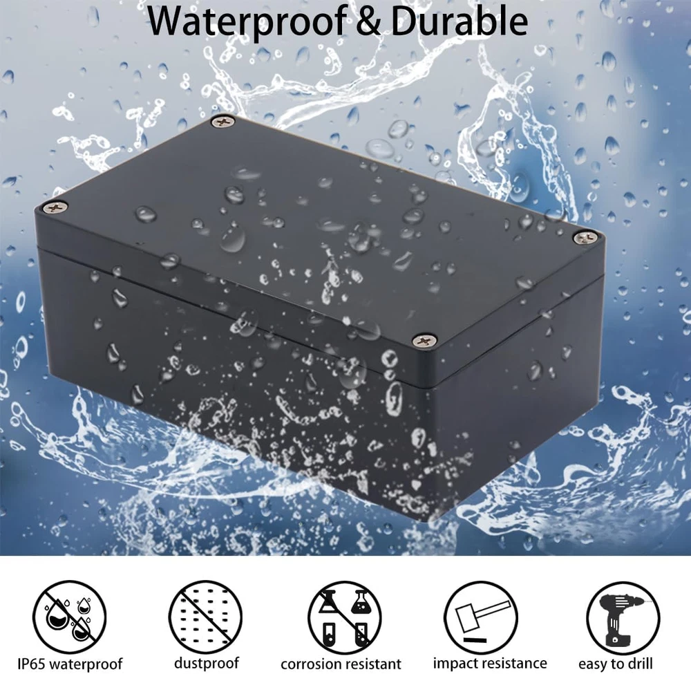 Store New Arrivals Add to Favorite View Feedback Contact Project Box IP65 Waterproof Junction Box ABS Plastic Black Electrical Boxes DIY Electronic Project Case Power Enclosure 11.42X8.27X3.94 Inch (290X210X100 Mm) Description Item model number Black Item Package Quantity 1 Style Safety Finish Polished Part Number Black Color Black Included Components 1xJunction box, 1xseal gasket, 4xscrews Product Dimensions 3.94"D x 0.33"W x 0.16"H Material Acrylonitrile Butadiene Styrene Country of Origin China Batteries Required? No Item Weight 1.61 pounds Installation Type Screw-In Batteries Included? No Usage Outdoor Indoor Special Features IP65Waterproof, Dustproof, Shockproof, Easy to dirll, Perfect for DIY Size 11.42”x8.27“x3.94" Finish Type Polished 【Size】- Outer size of the project box: 11.42"x8.27"x3.94" (290x210x100 mm); Inner size of the project box:11.06"x7.99"x3.66" (281x203x93 mm) 【Superior Electrical Safety】– IP65 Rated Indoor & Outdoor Waterproof Junction Box protect against dust, corrosion and splashing water, helps keep all your home electrical equipment Clean & Dry. 【Superior Durable】- Made of high-quality ABS material that offers outstanding impact resistant and electrical insulation, Moisture-proof, sunscreen, anti-corrosion, durable for years use. can keep your equipment well-protected in harsh environments. 【Easy for DIY】- This sturdy junction box can be drilled and shaped easily without cracking, so it’s also suitable for your various DIY projects. 【Wild Application】Widely used for electronic projects, instrument enclosure, power supply units, temperature controller box, etc.****Package Content : 1xWaterproof Junction Box**** Product Description Heavy Duty Box The junction box is made of High quality ABS plastic, Sturdy and impact resistance, Durable project box can offer well protection in harsh environment. This ABS project box brings a better customizable experience. Certain modifications can be done according to your requirements. Sealed waterproof features protect your instruments even under the adverse environment Perfect for Your DIY Project This durable IP65 dustproof and waterproof junction box is designed to hide, preserve and shield your various sockets, plug-ins, power cords and other vulnerable equipment from the effects of various environment. We are dedicated to offer project boxes to protect all the electronics inside them for customers' excellent ideas. Ideal for your customizable indoor and outdoor electrical electronic projects, junction box, meter box, speaker box, power supply box, temperature controller box, etc. ABS Junction Box Made of ABS Plastic and come with 4 stainless steel screws to close the box. Rubber Gasket The rubber gasket make the whole junction box waterproof, dustproof and corrosion resistant. Durable plastic housing for better seal, keep out moisture and dust Many mounting holes Inside with backplane wiring hole to be more convenient to install circuit board, DIN rail or panel. Internal mounting holes which fit for Metric self-tapping screws M4. Easy to Drill Hole This sturdy box can be drilled and shaped easily without cracking, so it’s also suitable for your various DIY projects. ABOUT US We offer the best prices around on high quality products. Our E-store includes media such as books, movies, music and games while offering electronics, toys, sporting apparel, clothing, tools, general home, garden items and more. SHIPPING We are always working hard to ensure your package arrives as soon as possible. Please understand that some factors like weather, high postal traffic, and the performance of shipping companies are outside of our control. We offer free shipping to the lower 48 states and ship within 2 business days of payment, usually sooner. We do not accept P.O. Boxes. Please provide a physical address. For shipping outside of the continental USA, we only use eBay's Global Shipping Program.The item is shipped to KY and then sent to the rest of the world. International customers are responsible for all duties and taxes. Continue to check out in order to calculate costs for shipping the item to your country. Messages regarding eBay's Global Shipping Program MUST be directed at eBay EXCLUSIVELY. RETURNS We offer a 30-Day Return Policy on items which you are not completely satisfied with. You have the option for a full-refund or an exchange of the item. No returns are available on items shipped outside of the USA. PAYMENT We accept PayPal. CONTACT US This page content is yet to come Please ad us to your favorite seller and visit again later Thank You CUSTOMER SATISFACTION We try our very best to make sure every customer is completely satisfied. If there's a problem, message us! We're happy to help. WE ACCEPT Copyright © 2021 AutoDS. | All Rights Reserved