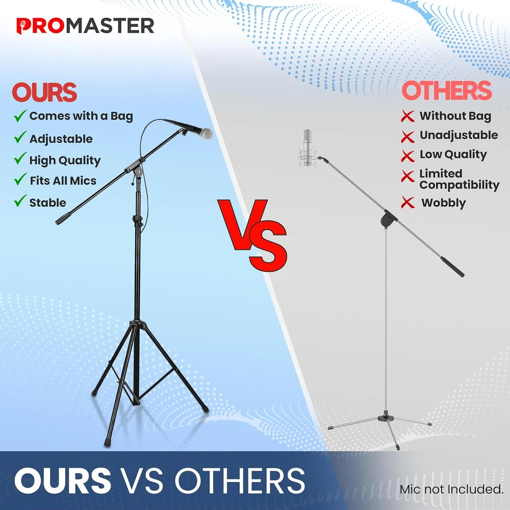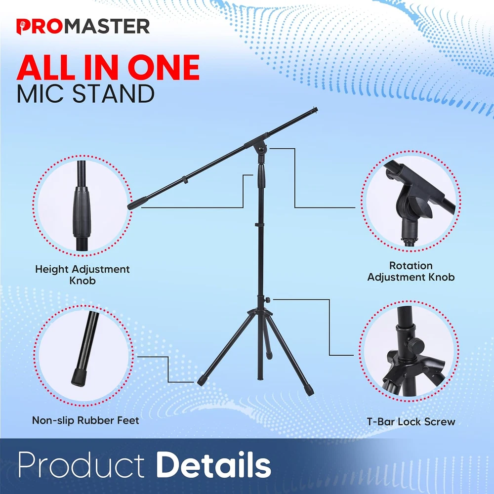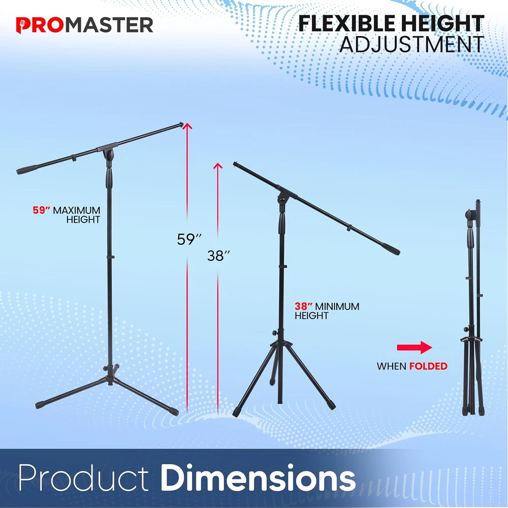 Store New Arrivals Add to Favorite View Feedback Contact Promaster Tripod Microphone Stand - Portable and Adjustable, Performance and Studio-Quality Gooseneck, Lightweight Boom Tripod Microphone Holder and Stand - Black Description Item model number PRMSMIHL Item dimensions L x W x H 45 x 5 x 4 inches Color Black Product Dimensions 45 x 5 x 4 inches Material Alloy Steel Country of Origin China Style Stand Item Weight 3.9 pounds OPTIMAL PERFORMANCE CUSTOMIZATION: Elevate your sound with a mic stand designed for you. Enjoy the flexibility of a fully adjustable shaft height ranging from 36.5" to 57", ensuring you find the perfect setup for any performance or recording session. EXTENDED REACH, CRYSTAL-CLEAR SOUND: Unleash your creativity with the 30.75" mic boom, providing an extended reach for unique audio capture. Whether you're in the studio or on stage, this feature ensures your sound is not just heard but truly experienced. CONVENIENCE ON THE GO: Streamline your setup with a lightweight and collapsible design. This boom stand becomes your go-to companion for musicians, performers, and content creators who value portability. Effortless storage and transport mean you're always ready for your next gig. ROBUST RELIABILITY: Invest in durability and sturdiness. Our mic stand is built to last, providing a stable platform for your microphone. No compromises on performance – just a reliable tool that enhances your audio experience every time. HANDS-FREE VERSATILITY: Embrace hands-free convenience with the integrated mic holder. This thoughtful addition ensures your microphone stays securely in place, allowing you to focus on your craft without distractions. Elevate your performance with a mic stand that caters to your every need. Introducing the ProMaster Adjustable Boom Microphone Stand – your key to professional audio versatility. Tailor your sound setup effortlessly with a fully adjustable shaft height ranging from 36.5" to 57", providing optimal microphone positioning for various performances or recording sessions. The included 30.75" mic boom adds a creative edge, ensuring extended reach and crystal-clear sound capture in studios or live environments. Designed for convenience on the go, the ProMaster boom stand is lightweight and collapsible, making storage and transport a breeze. Musicians, performers, and content creators will appreciate the practicality of having a reliable, portable solution at their fingertips. Built with robust construction, the ProMaster mic stand guarantees durability and sturdiness, offering a stable platform for your microphone without compromising on performance. The integrated mic holder adds hands-free versatility, securely holding your microphone in place, allowing you to focus on delivering an exceptional performance. Elevate your audio experience with the ProMaster boom stand – where functionality, reliability, and convenience meet seamlessly. ABOUT US We offer the best prices around on high quality products. Our E-store includes media such as books, movies, music and games while offering electronics, toys, sporting apparel, clothing, tools, general home, garden items and more. SHIPPING We are always working hard to ensure your package arrives as soon as possible. Please understand that some factors like weather, high postal traffic, and the performance of shipping companies are outside of our control. We offer free shipping to the lower 48 states and ship within 2 business days of payment, usually sooner. We do not accept P.O. Boxes. Please provide a physical address. For shipping outside of the continental USA, we only use eBay's Global Shipping Program.The item is shipped to KY and then sent to the rest of the world. International customers are responsible for all duties and taxes. Continue to check out in order to calculate costs for shipping the item to your country. Messages regarding eBay's Global Shipping Program MUST be directed at eBay EXCLUSIVELY. RETURNS We offer a 30-Day Return Policy on items which you are not completely satisfied with. You have the option for a full-refund or an exchange of the item. No returns are available on items shipped outside of the USA. PAYMENT We accept PayPal. CONTACT US This page content is yet to come Please ad us to your favorite seller and visit again later Thank You CUSTOMER SATISFACTION We try our very best to make sure every customer is completely satisfied. If there's a problem, message us! We're happy to help. WE ACCEPT Copyright © 2021 AutoDS. | All Rights Reserved