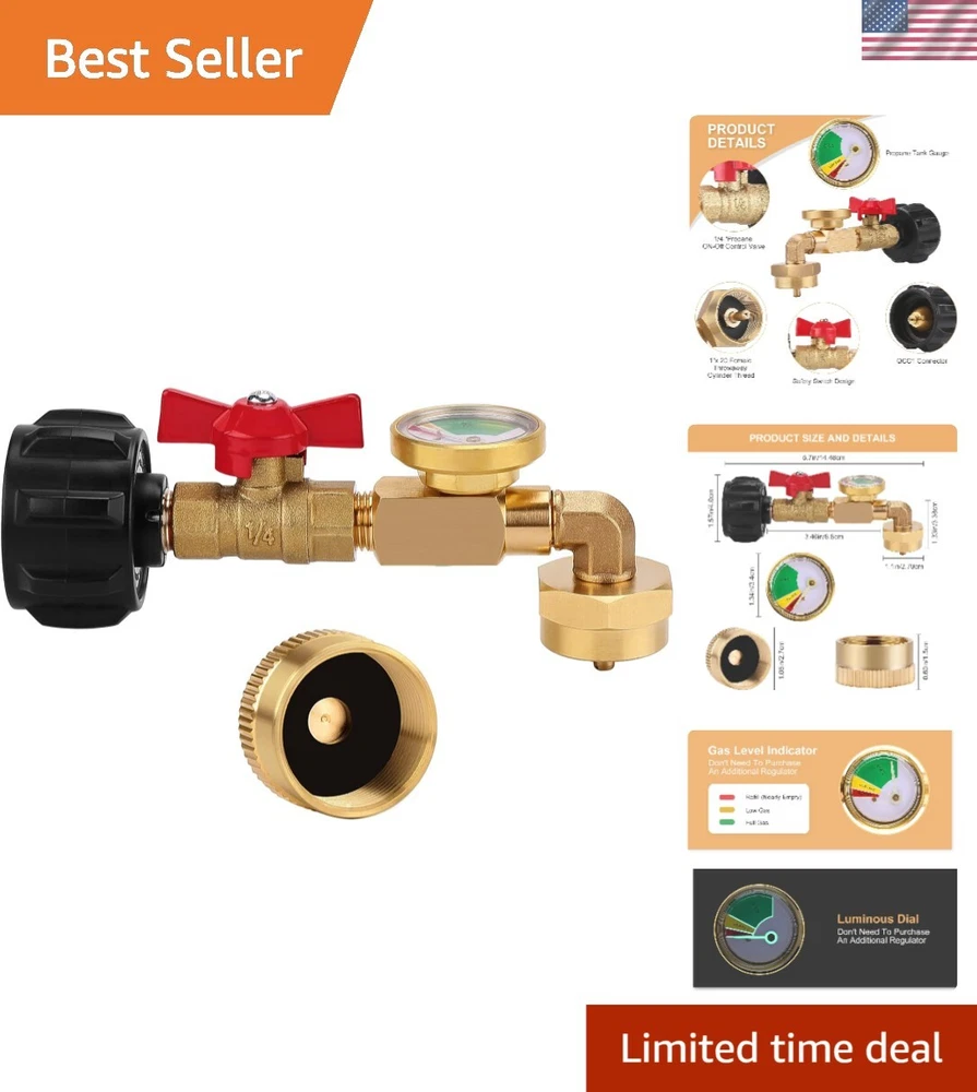Propane Adapter with ON/OFF Control & Gauge: Refill 1LB from 5-40LB Tanks ‹ › ‹ › ‹ › ‹ › ‹ › ‹ › ‹ › ‹ › ‹ › ‹ › Propane Adapter with ON/OFF Control & Gauge Effortlessly Refill 1LB from 5-40LB Tanks Features: 90 Degrees Design: The propane elbow refill adapter comes with an ON/OFF control valve for easy installation—no tools required! Hand-wheel grip for secure tightening, connecting your large cylinder to a 1LB propane tank seamlessly. Includes an additional 1LB propane bottle cap, eliminating the need for extra purchases. Designed specifically for camping stoves, home applications, barbecues, propane heaters, and other equipment using 1LB propane tanks. Upgraded Gauge: The side gauge allows for precise monitoring of the gas volume in your 1LB propane cylinder. The luminous pointer and gas level indicator make readings easy, even in low light conditions. Benefits: Convenience of refilling on-site—save money and time. Durable, easy-to-use design ensures safety and efficiency. Maintain accurate readings for a worry-free propane experience. Perfect for outdoor enthusiasts and home cooks alike. Safety First: Your safety is paramount. Always refill your 1LB cylinder tank outdoors, away from flames and sparks to prevent accidents. The gas is highly flammable—handle with care. Why Choose Our Propane Adapter? Are you seeking a reliable solution to refill your 1LB propane tanks? Look no further! Our Propane Adapter with ON/OFF control and gauge is designed for ease and safety, ensuring that you can effortlessly and accurately refill your tanks without any hassle. Plus, the added bonus of a bottle cap means you're equipped for your next outdoor adventure without any extra costs. Don’t wait! Elevate your propane experience with our Propane Adapter today and ensure your cooking and heating needs are met with style and convenience. Shipping Free & Fast Shipping - We offer free shipping to most of the USA with a normal delivery time of 3-7 days. However, due to the current situation, additional delivery time (up to 3 weeks) may be required for some items. Alternative Carriers - We may use alternative carriers (e.g. USPS, FedEx, UPS, etc.) to ensure your package arrives safely and on time. Due to the use of multiple carriers, we are unable to provide a tracking number automatically. Handling Time - Orders are processed and shipped within 1-2 business days of receiving cleared payment. Shipping Restrictions - Shipping to Alaska, Hawaii, Puerto Rico, Guam, and other US territories may incur shipping charges or delivery restrictions. Please contact us before ordering, or your order can be refunded/cancelled. State Restrictions - There may be restrictions based on your state of purchase. For example, certain items may not be shipped to California due to state regulations. Contact for Tracking Updates - If you require tracking updates or have any concerns about the delivery of your order, please feel free to contact us, and we will be happy to assist you. Return 30-Day Hassle-Free Returns - We want you to be completely satisfied with your purchase. If you are not, you can return the item within 30 days of receiving it for a full refund or exchange. Easy Return Process - To start a return, simply contact us and we will provide you with a prepaid return shipping label and detailed instructions. Restocking Fee - There are no restocking fees for returns. However, the buyer is responsible for return shipping costs if the return is not due to a seller's error. Refund Processing Time - Refunds will be processed within 5 business days of receiving the returned item in its original condition. Payment We accept all major credit cards, PayPal, and Apple Pay for your convenience. Your payment information is secure and encrypted to ensure a safe and seamless transaction. Please complete your payment within 3 days of purchase to avoid any delays in shipping. Feedback Your feedback is extremely important to us. We strive to provide the best products and customer service possible. If you are satisfied with your purchase, please take a moment to leave us a positive review. If you have any concerns or issues with your order, please contact us before leaving negative feedback. We are committed to resolving any problems and ensuring your satisfaction. Contact Us If you have any questions or concerns, please feel free to reach out to our customer support team. You can contact us through the eBay messaging system. We are available Monday to Friday, 9:00 am to 5:00 pm EST, and we will do our best to respond to your inquiry within 24 hours. Buy it now and enjoy a pleasant shopping experience! UPC: Not Set Unit Quantity: 1 Set Includes: Propane Adapter,Gauge,ON-Off Control Valve,1 LB Propane Bottle Cap Features: Easy Clean,Easy to install,No tools required,Hand-wheel grip for tightening,90 Degrees Design,Allows refilling from 5~40 LB propane tank,Liquid flow design for refills Type: Propane Adapter Brand: Unbranded Number in Pack: 1 Color: Black Handle Material: Plastic Item Weight: 10.9 oz Size: Small Head Material: Aluminum Finish: Polished Country/Region of Manufacture: Not Set Item Height: Not Set Item Width: Not Set Model: Not Set Year Manufactured: Not Set Number of Items in Set: One-Piece Style: Functional MPN: Not Set Manufacturer Warranty: Not Set Unit Type: oz Personalize: Not Set