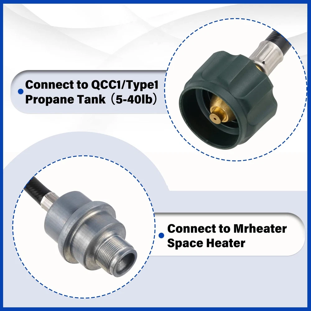 More Convenient: The Universal Fuel Filter with Hose is for the Portable, Big, and Tough Buddy Heaters in use with a bulk propane cylinder. No need for additional propane adapter hose. Convenient and save your money. For Use With: Fuel Filter F273699 Filtering Propane Servicing a Source, For Mr heater Buddy and Big Buddy 6351206, 6351207, 6351200, F273701, F273702, F232000, F274800, F23203 6FT Propane Adapter Hose:The hose with a QCC1/Type1 adapter, can connect directly to 20-45 lb propane tanks and ensure air tightness. and ensure air tightness. Allows you to use portable heaters more conveniently, quickly and safely. Professional Quality: Our products use high-quality raw materials. the filter is made of high quality steel. The tube adopts a three-layer structure, the outer layer is rubber, the galvanized steel support, and the inner layer is PVC. The joint is made of Solid brass. The product has passed the CSA professional certification, which is safe and durable. 1 Year Warranty: We provide 100% Satisfaction Guarantee. If you have any problem after receiving this item, please don't hesitate to contact us, we resolve all issues in 24 hours.