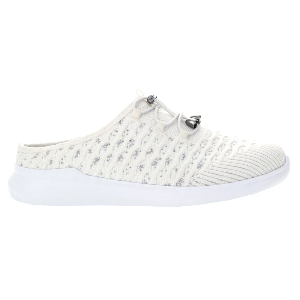 TravelBound Slip On Walking Shoes Product Details Knit mesh upper Elastic bungee lace with toggle Removable insole Arch supporting foam Thermally controlled rubber outsole Our top selling Travelbound Walking Shoe is now ready to slide into and take you anywhere you need to go in lightweight comfort. Breathable, mesh with an open heel is a great, convenient travel shoe. Additional Details Color: White Occasion: Casual Gender: Womens Age: Adult Brand: Propet