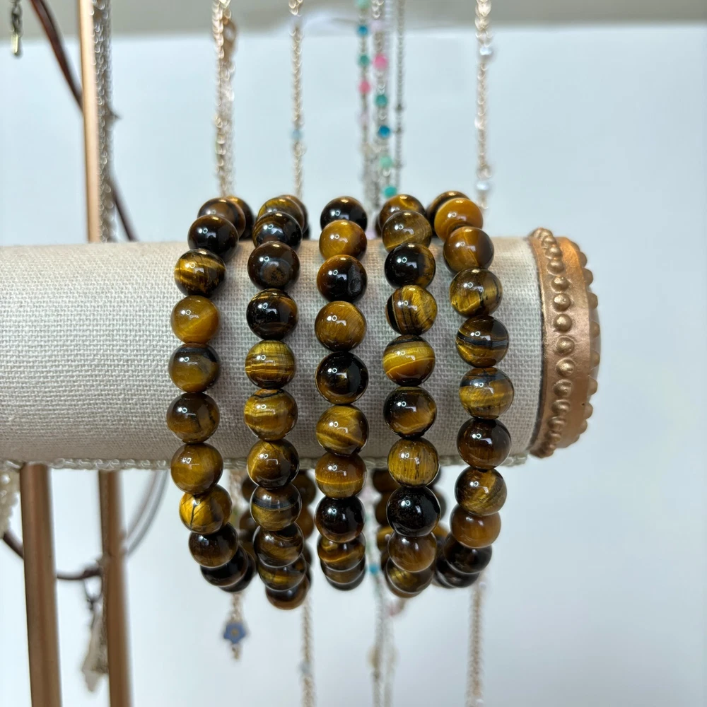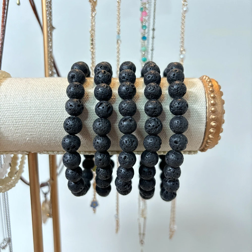 Protective Bracelet Set of 4 - Black Obsidian, White Howlite, Lava Rock, Tiger Eye Bracelets This listing is for 4 (FOUR) Protective Bracelets featuring natural obsidian, white howlite, lava rock, and tiger eye. FAST & FREE DOMESTIC SHIPPING Embrace strength, calm, and balance with this set of 8mm beaded protective bracelets, each designed to bring unique benefits for mind and spirit. Set Includes Black Obsidian Bracelet: Known as a stone of protection, Black Obsidian is believed to shield against negativity and provide emotional stability. White Howlite Bracelet: Thise calming stone is vlaued for reducing anxiety and encouraging a peaceful mind. Lava Rock Bracelet: Known for promoting courage and focus, Tiger Eye is also thought to protect against negative energy. Key Features: Bead Size: 8mm natural gemstone beads Bracelet Type: Stretch elastic bracelet for a comfortable fit Size: Approx, 7.5" around, stretches for a perfect fit Uses: Meditation, crystal healing, energy work, or daily wear Benefits: Stability, clarity, and grounding energy Perfect for anyone interested interest in a thoughtful gift for a loved ones or a meaningful addition to your personal collection. Please note: Each bracelet is made from natural stones, slight variations in color or texture add to the uniqueness of each piece. Disclaimer: Information regarding crystal properties is based on traditional sources and is not intended as a substitue for professional medical advice. For health concerns, please consult a licensed healthcare provider.