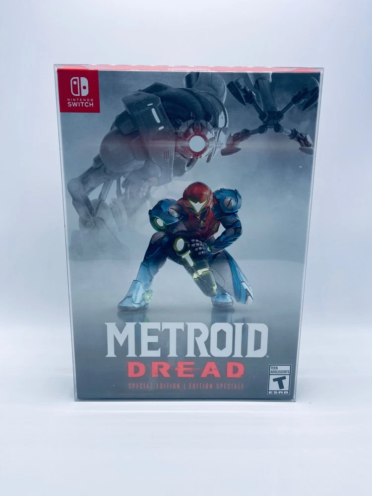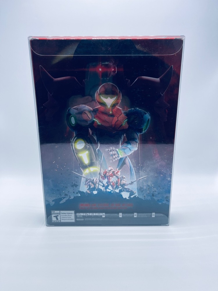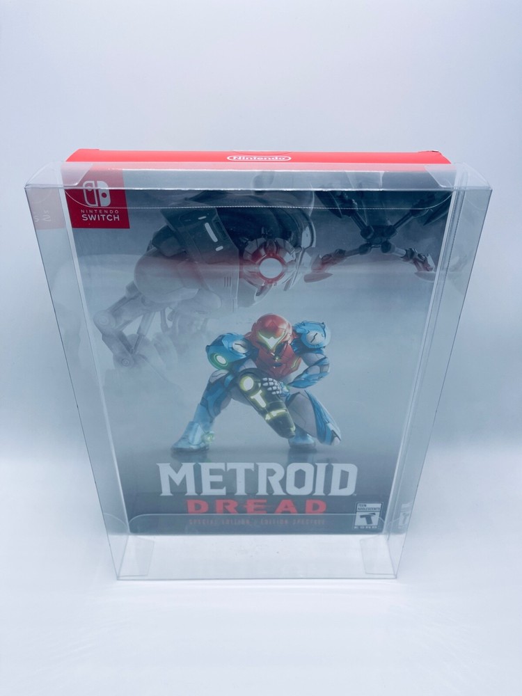 GAME NOT INCLUDED! ONLY A PLASTIC PROTECTOR! High quality Nintendo Switch Metroid Dread Special Edition Box Protectors. These are all made specifically for us so we can inspect the each unit and make sure to offer the highest quality available on the market. All protectors come with the following: Super thick 0.50mm PET Acid-Free plastic Dimensions: 8.8w x 12.3d x 4.3d inches Easy crease edges so protector is super rigid when constructed "Lay Flat Lid" technology so there's little to no bowing of the lits. Protective plastic film help protect the plastic during shipment. Remove the plastic film as you construct each POP protector. Two closing flaps and NO locking tabs All protectors are send flat with retail packaging 100% Refund/Replacement Customer Satisfaction Guarantee DOES NOT FIT any other game boxes boxes. Thank you for visiting and please do not hesitate to send us any questions you might have!