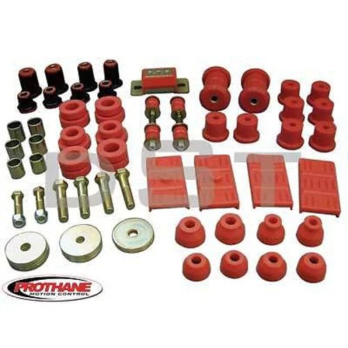 Prothane Polyurethane Complete Suspension Bushing/Mount Kit 1967-1969 Camaro & Firebird, 1968-1974 Chevy Nova (with Mono Leaf-Spring) These Total Kits from Prothane contain the most popular components for your vehicle. Now you can take advantage of completely matched components that will not only totally improve your ride, but will also work together to maximize that improvement. Get the most out of your ride by upgrading with Prothane Total Kits. TOTAL Kit Includes: Tie Rod Dust Boots Front Strut Rod Bushings Shifter Stabilizer Bushings Front Ball Joint Dust Boots Front Control Arm Bushings Rear Lower Control Arm Bushings Rear Upper Control Arm Bushings Rear Compensator Arm Bushings Front Sway Bar End Links Steering Rack Bushings Front Shock Mount Bushing Kit Rear Shock Mount Bushings PROTHANE Motion Control has become synonymous with innovative, hi-performance polyurethane or urethane for short, based bushings and driveline components. From bushing, bump stops and body mounts to stressed driveline components like motor and transmission mounts and lift kits, PROTHANE engineers are constantly developing innovative new hi-performance polyurethane based parts. As enthusiasts and racers, we take great pride in being the first to bring you better polyurethane bushings, transmission and motor mounts to enhance the performance of your vehicle.