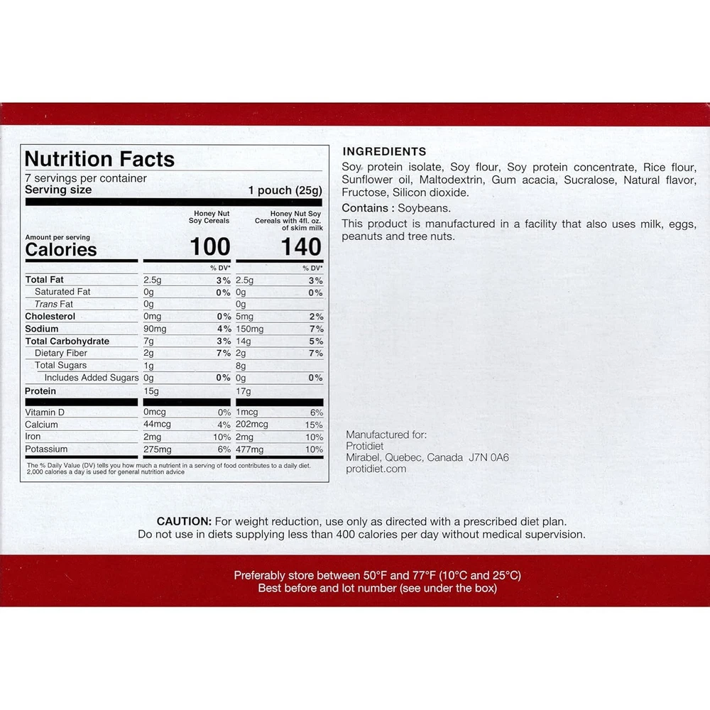 ProtiDiet High Protein Honey Nut Soy Cereal, 15g Protein, Low Calorie, Low Sugar, Low Fat, No Gluten Ingredients, KETO Diet Friendly, Ideal Protein Compatible, 7 Servings/Box