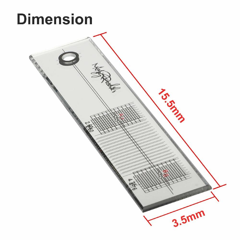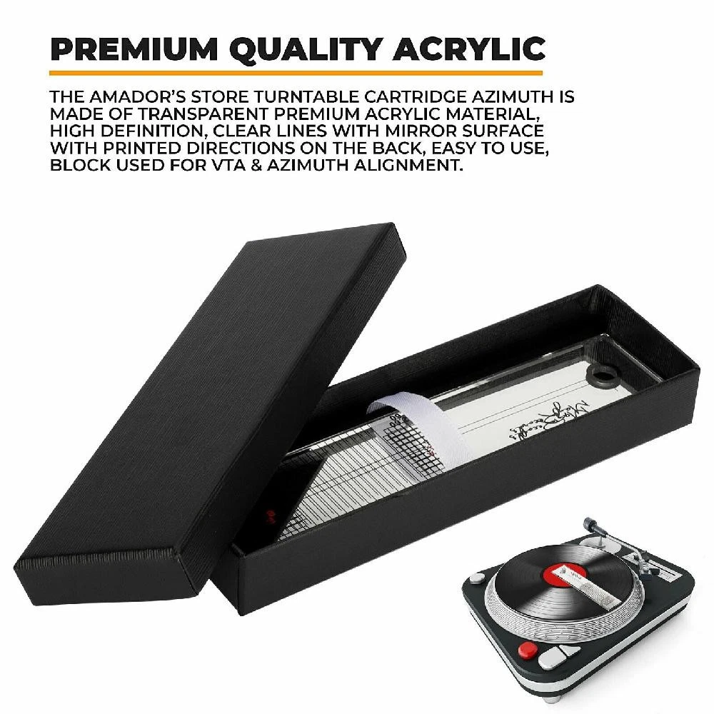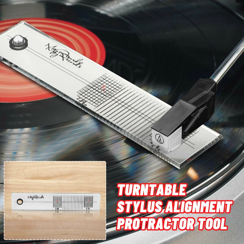 SAFE & SECURE SHOPPING 100% SATISFACTION GUARANTEED FAST SHIPPING Protractor Alignment Tool Turntable Phonograph Record Cartridge Stylus Product Description If you have any questions, please contact customer service first, do not open disputes easily, thank you! Features: Helps eliminate tracking errors, especially on the inner grooves of the record. Clear and accurate calibration allows you easy to read data. Features mirror surface with printed directions on back. Ensures proper cartridge alignment for optimal sound. " How to Use: 1. Place the calibration ruler on the turntable shaft of the record player. 2. Move the gauge and the arm to drop the stylus at point A. 3. Adjust the angle of the head so that the leading edge and the horizontal line on the scale are kept horizontal, which is more conducive to the mirror reflection. 4. Move the gauge and the arm to drop the stylus at point B. 5. Check that the leading edge of the cartridge is square with the grid lines on the scale." Specifications: Material: Acrylic Pacakge include: 1* Calibration Ruler 1* Cleaning Cloth About Us About Us We accept all payments authorized by eBay. Copyright © 2022 Tongtool