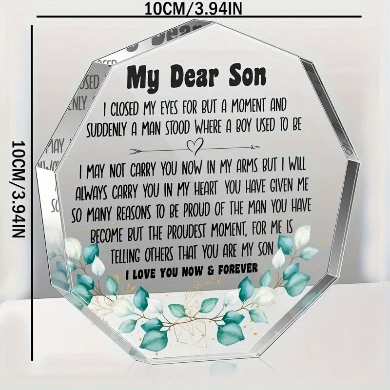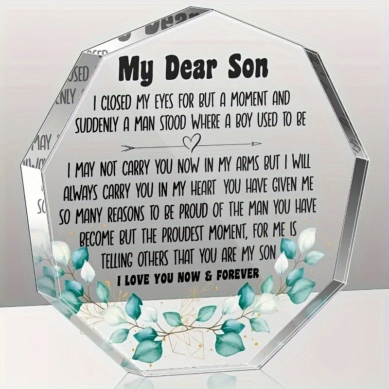Proud of You Clear Acrylic Plaque for Son Home Office Tabletop Sign Holiday Gift