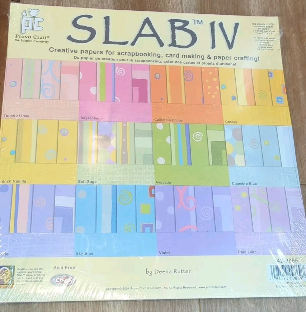 Provo Craft Scrapbooking 12 X 12 Designer Paper SLAB IV 180 Sheets Acid Free NEW. Please see pictures for details. See our other listings for more unique finds including more craft supplies.