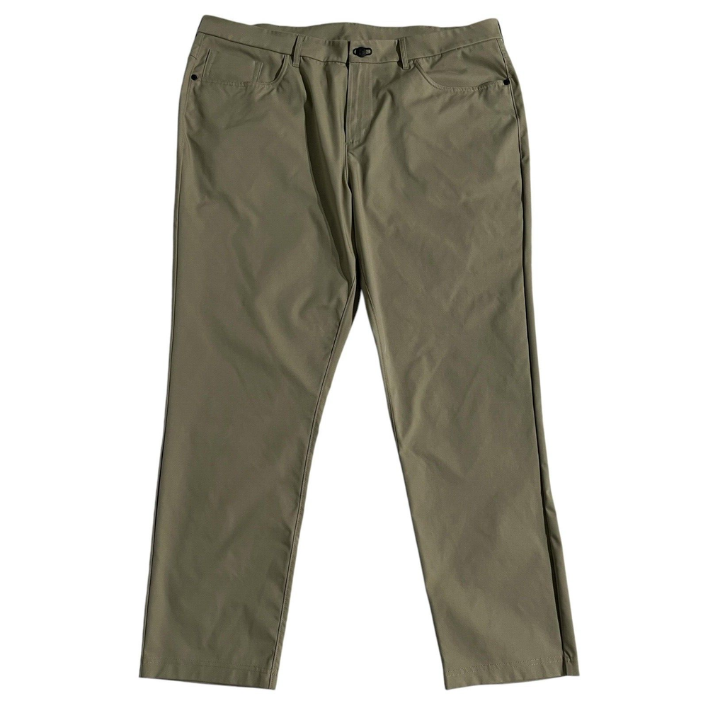 Public Rec All Day Every Day Pants 5 Pockets Stretch Chino 40x30 measured Khaki. Excellent pre-owned condition. No holes, rips or stains; see pictures for measurements. We pre-wrap and inventory right after pictures, therefore no more measurements can be given. SH2
