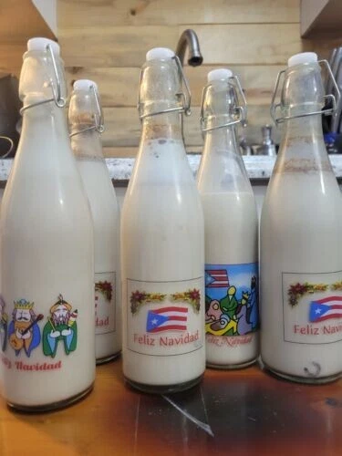 Puerto Rico Holiday Feliz Navidad Boricua Flag Xmas 3 King Coquito Glass Bottle New! Bottle Size: 10"x3" aprox. This listing is for 1 random glass bottle like the ones on pictured or similar Puerto Rican Xmas holiday theme coquito bottle. Buy more bottles if you need!