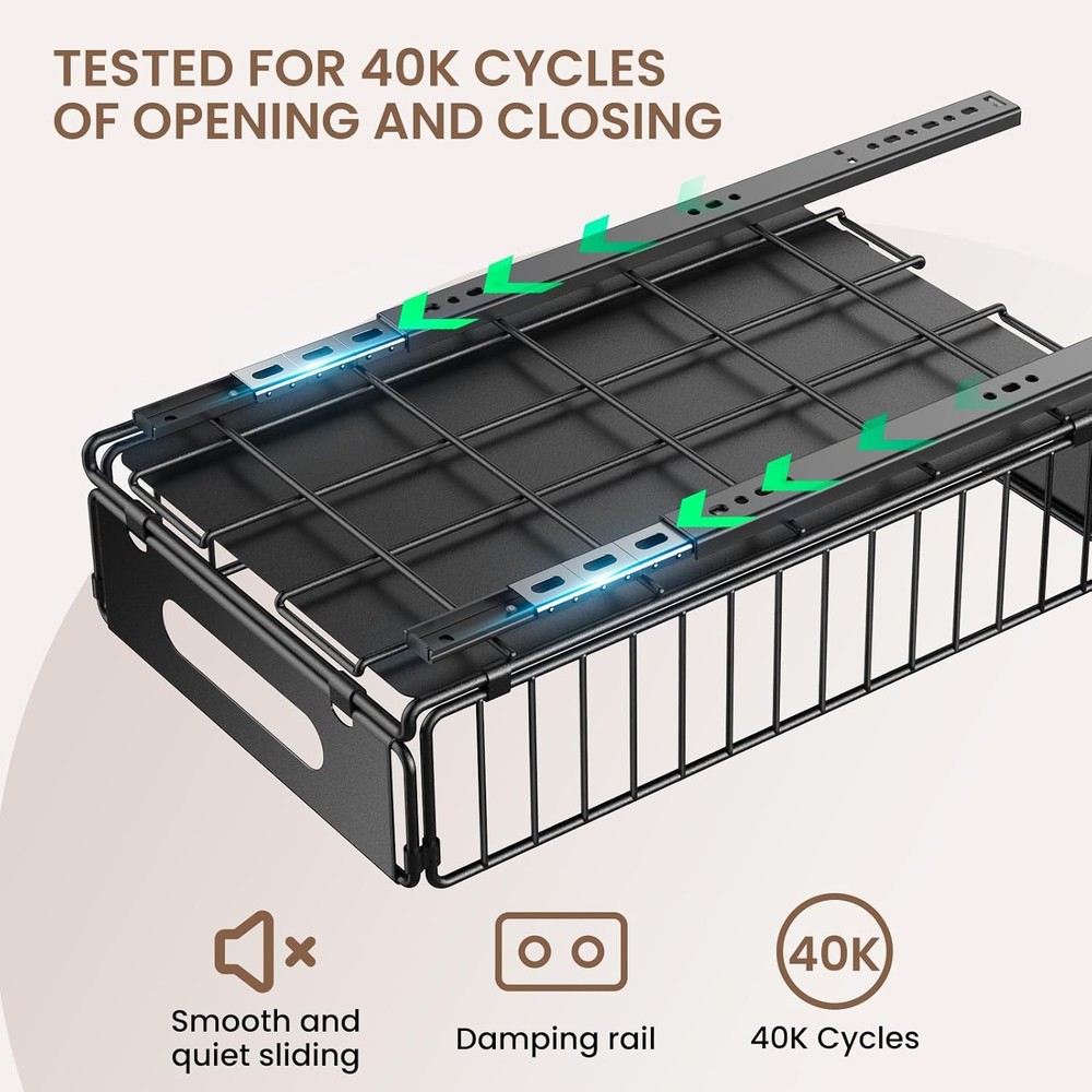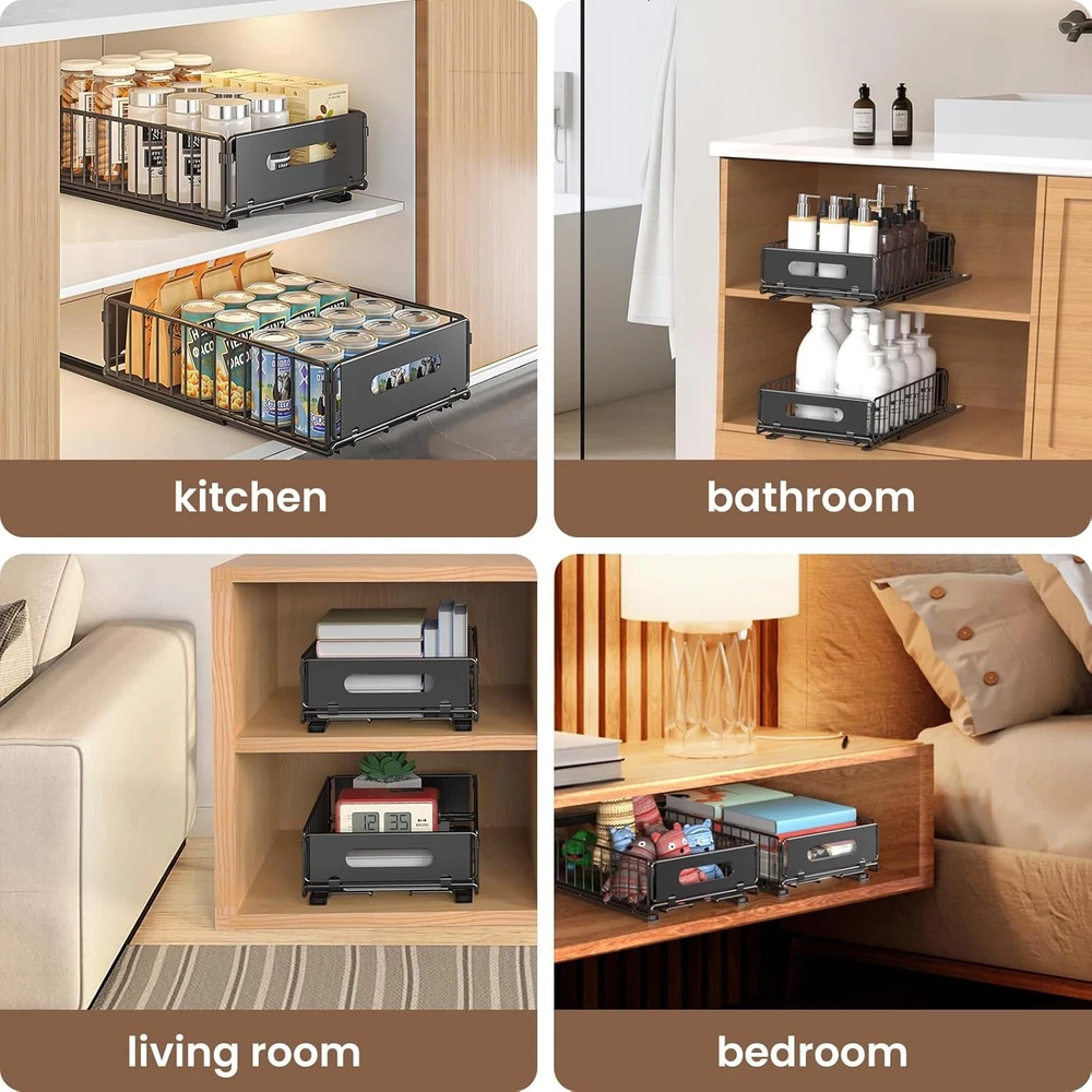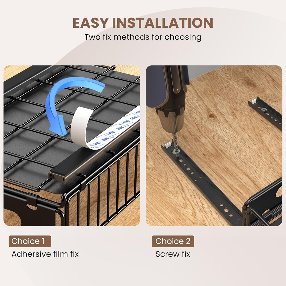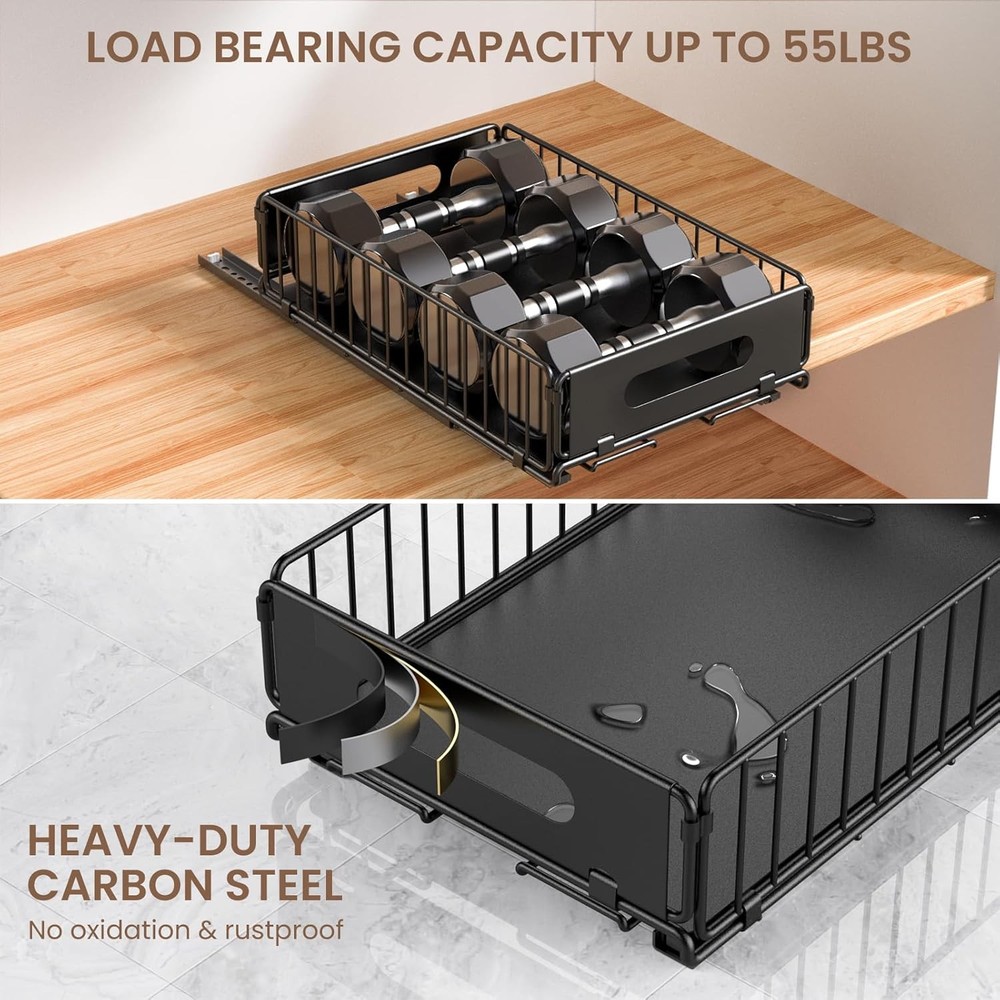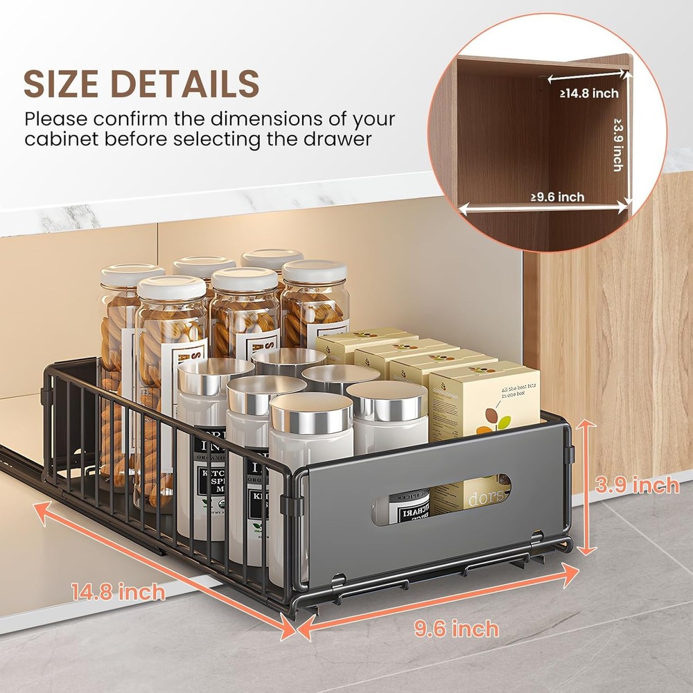 Free eBay listing template designed by dewiso.com Pull Out Cabinet Organizer, 2 Pack Heavy Duty Slide Out Drawers Pantry Shelves Fixed With Strong Adhesive Glue and Handle for Kitchen, Living Room, Bathroom, Home (14.8" D X 9.6" W X 3.9" H) FREE AND FAST SHIPPING! About this item 【Pull-Out Cabinet Organizer】The dimensions of the pull-out cabinet organizer are 14.8"D x 9.6"W x 3.9"H, enabling optimal use of kitchen cabinet space with its convenient slide-out function. It is important to confirm the drawer's compatibility with your cabinet before making a selection 【Silent and Smooth Sliding】Equipped with dampening rails, our pull-out drawer ensures noiseless operation with 4K tested opening and closing cycles. Enjoy full extension for easy access with our pull-out cabinet shelf 【High Load-Bearing Capacity】Crafted from heavy-duty carbon steel, the slide out drawers for kitchen cabinets provide sturdy construction and high load-bearing capacity. It is resistant to water, rust, and corrosion for long-lasting use 【Simple Installation】Choose between two mounting options: 1) a robust adhesive 3M strip, and 2) the traditional drilling method. The user-friendly design and clear installation instructions ensure a quick and successful setup process 【Versatile and Organized】No more kneeling or rearranging items to reach the back. Our pull-out cabinet drawer simplifies access to lower shelves, making it ideal for various spaces like kitchens, pantries, bathrooms, living rooms, and offices Product We offer a 30-Day Return Policy on items which you are not completely satisfied with. You have the option for a full-refund or an exchange of the item. No returns are available on items shipped outside of the US . Shipping We offer Free Shipping to the US and ship within 2 business days of payment, usually sooner. We use UPS express shipping. That's why your products are usually delivered within 3 days . Contact We try our very best to make sure every customer is completely satisfied. If there's a problem , message us! We're happy to help. 24/7 live chat available.