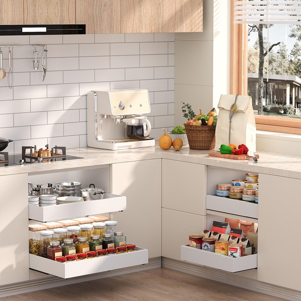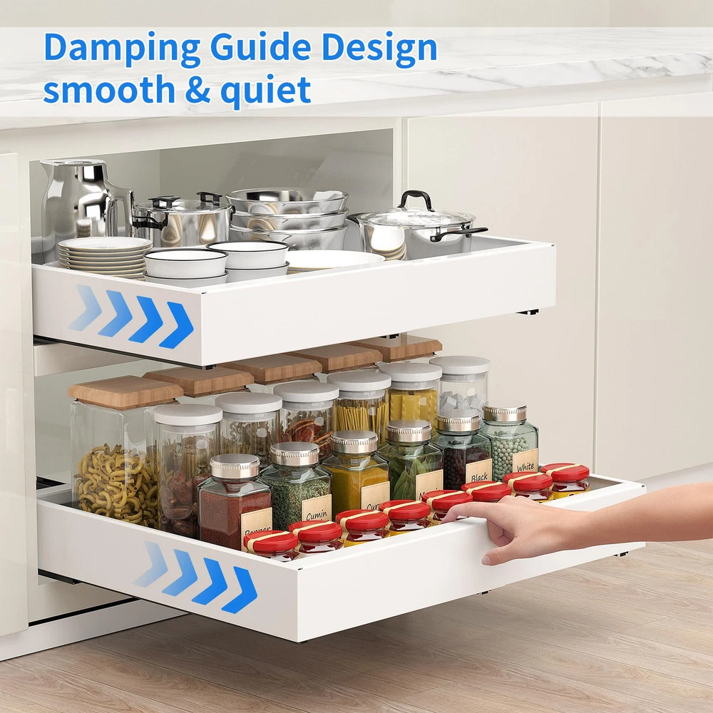 Note: Please measure the size of your cabinets before purchasing, the cabinet roll out drawer is suitable for cabinets over 13" W and 18" D.It is not suitable for cabinets with a frame around the outside. EXPANDABLE WIDTH: The pull out cabinet organizer features an expandable design with adjustable width to fit different cabinet sizes. It measures 16.5" D and 2.4" H, adjustable width range is 12.2"-20.5". FIXED WITH ADHESIVE NANO FILMS: The pull out drawer for cabinets includes installation instruction and 3 Adhesive Nano Films, Simply apply the adhesive strips to the slide out drawer guides and secure the drawer to the cabinet. Easy to install in minutes, no screws or drilling required. SMOOTH AND QUIET SLIDING: Our pull out shelves for kitchen cabinet are equipped with precision dampening guide rails that slow down the impact of the drawer when it closes and closes slowly even when pushed hard.Tested for over 50,000 cycles, they open and close seamlessly and glide smoothly without unpleasant noise. HEAVY DUTY MATERIAL: The slide out drawer for kitchen cabinets is made of heavy duty carbon steel, thickened structure, very strong and durable.Upgraded 3 guide rails which with much heavier load capacity and load bearing strength up to 55 pounds. The surface of the cabinet pull out shelve is made with anti-rust treatment, easy to clean. Perfect for your kitchen, bathroom, under sink and pantry organizers and storage. EASY ACCESS TO ITEMS: Keep your kitchen efficient with a cabinet slide out shelve. You can make the most of your cabinet space and have easy access to items buried deep within. If you have any questions while using the under cabinet organizer, Please let me know and we will provide you with excellent after-sales assistance!