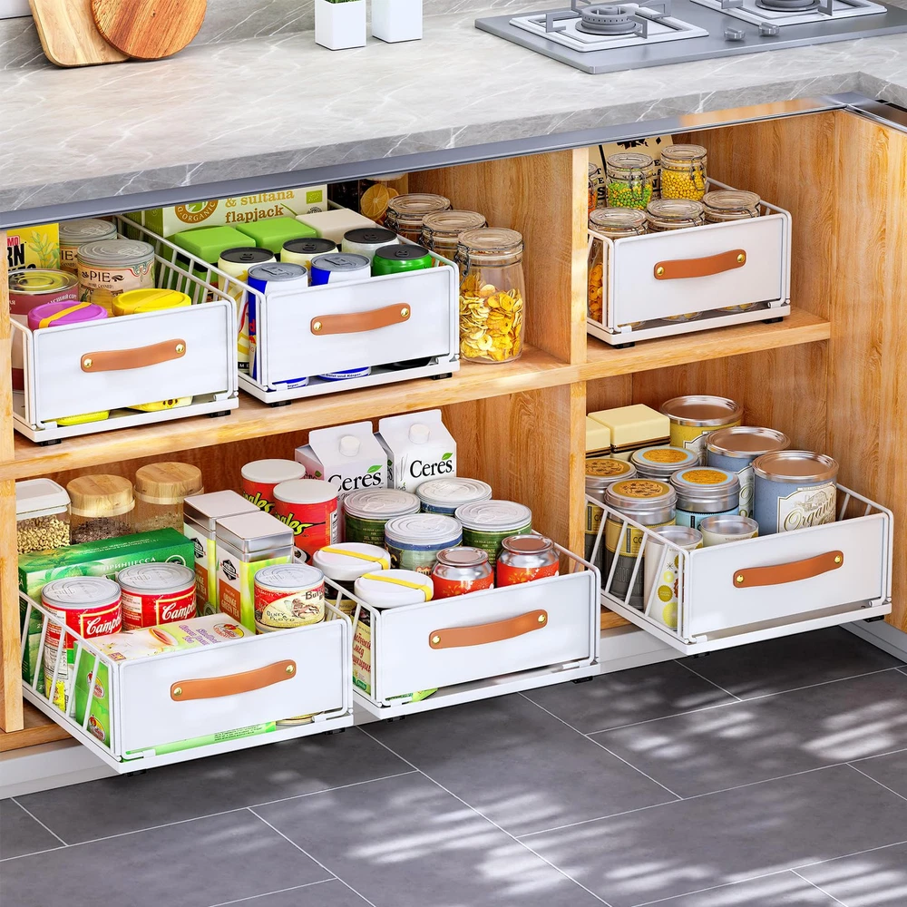 【No Need Drill & Nail】The pull out cabinet organizer for kitchen cabinet is simple and easy to install. No need to require measuring, screws, drilling, or nails to install. What you need to do is tear off the nano glue and install it where you like. Slide out design is an ideal choice for deep cabinets in the kitchen or bathroom 【Smooth and Quiet Sliding】The pull out cabinet drawer for kitchen cabinet is designed with a damping guide rail, which has been tested by 4W times of opening and closing, it can slide smoothly without unpleasant noise 【Versatile Use】The under-sink organizer is perfect for containing and organizing loose items and keeping them neat. It is a great slide out cabinet organizer for cabinets, kitchen, pantry, bathroom, living room, office, and more 【Easy Access to Items 】With our pull-out cabinet drawer, you no longer needed to be on your knees to access anything on the lower shelves, no need to unload stuff stored in front to get to anything in the back 【Strong Bearing Capacity】Our sliding cabinet organizer pull out shelves are made of premium carbon steel with a black powder finish. The sturdy construction of this sliding cabinet organizer will provide a strong load-bearing to contain and organize loose items easily