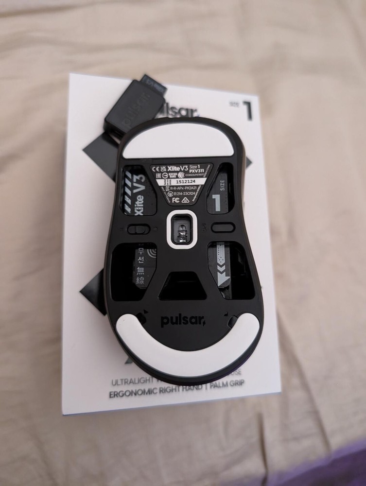 Pulsar Xlite V3 Mini Size 1 Wireless gaming mouse with 1,000hz polling. Can upgrade to 4,000hz polling with separate dongle (not included). 52g weight Raesha Optical Switches Ergonomic mouse suited for palm grip