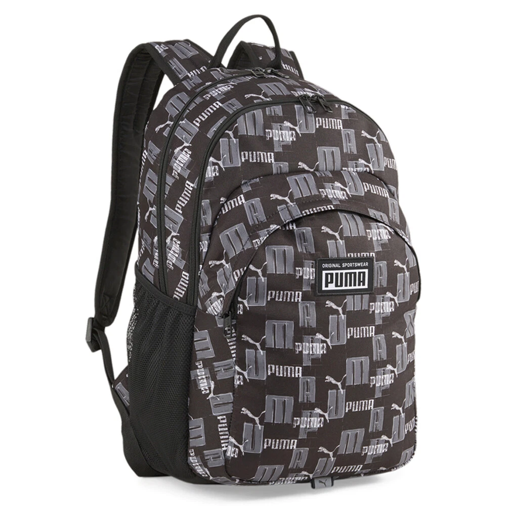 Puma Academy Backpack Product Details Two-way zip opening into main compartment Two-way zip opening into front compartment Zip opening into front pocket Two mesh side pockets Adjustable padded shoulder straps with stitching detail Set yourself up for the day ahead with the Academy Backpack. Stylish and functional, it contains two spacious compartments and multiple pockets for storing your valuables, large or small. The padded shoulder straps can be adjusted for ease, while the padded back panel makes it comfy to carry from the gym to the library and beyond. Woven PUMA branding on the front adds a classic finish to this trendy yet practical piece. Additional Details Color: Black Occasion: Gender: Mens Age: Adult Brand:
